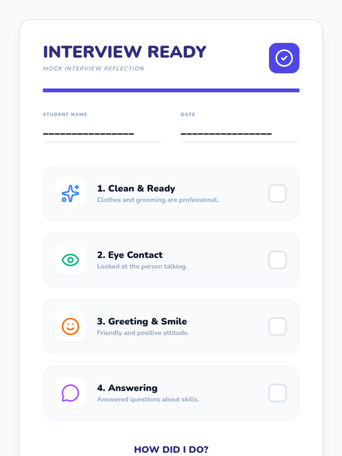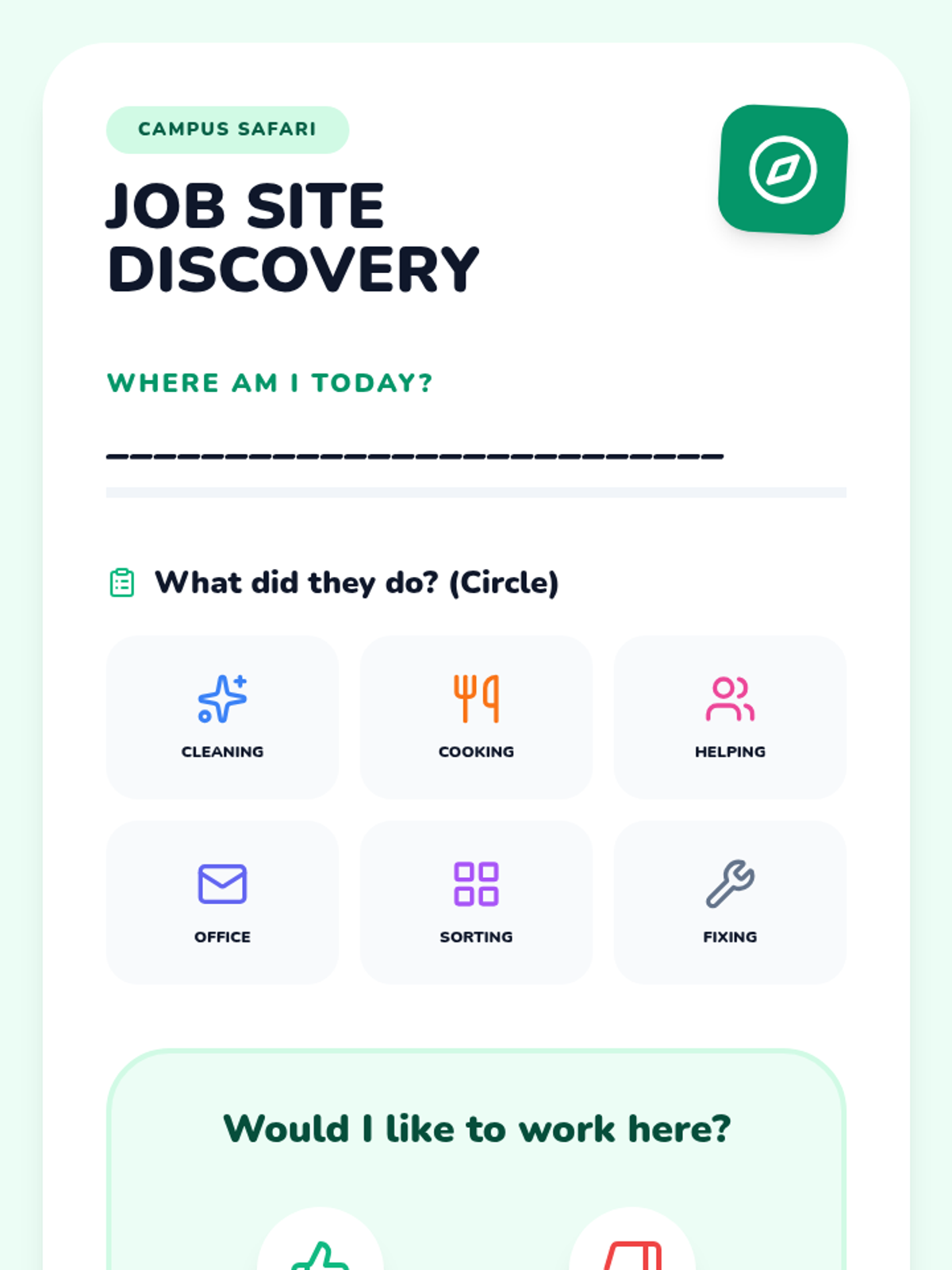 A 6-week life skills unit designed for high school students with low cognitive abilities, focusing on vocational readiness through visual resumes, on-campus job site visits, and simplified interview practice.