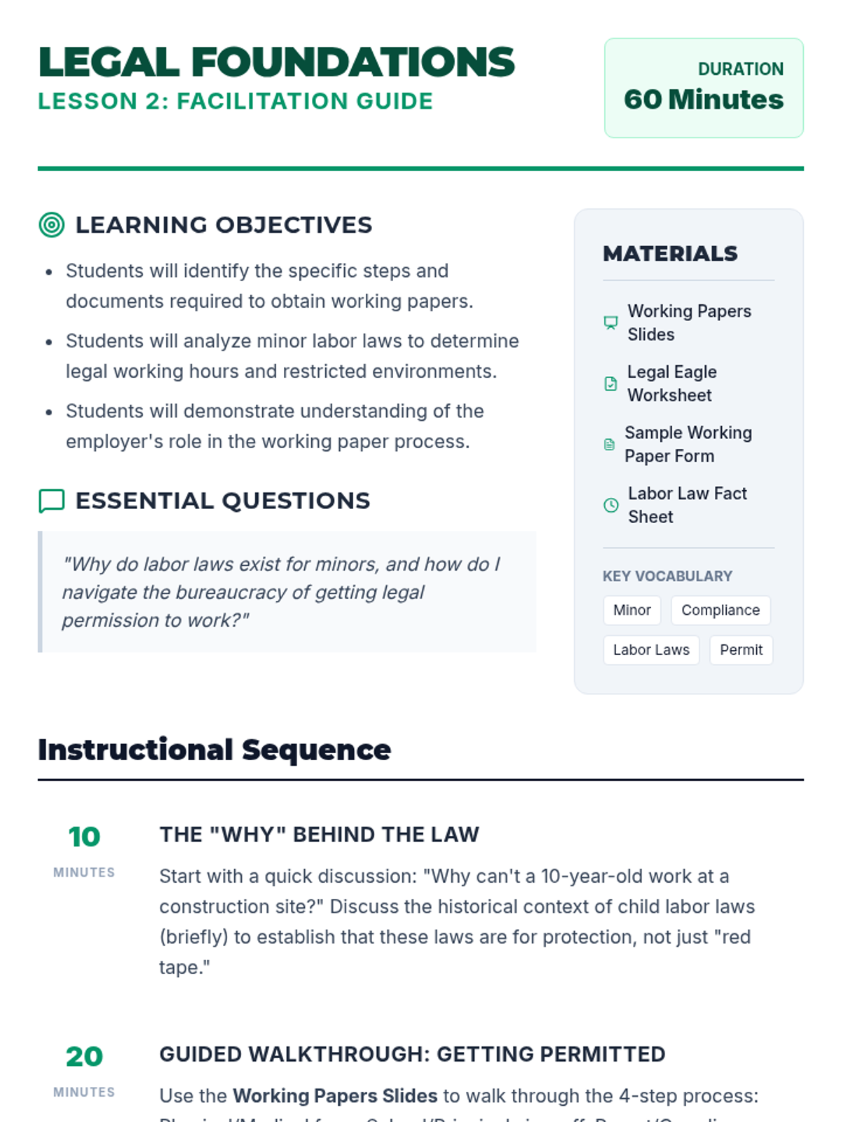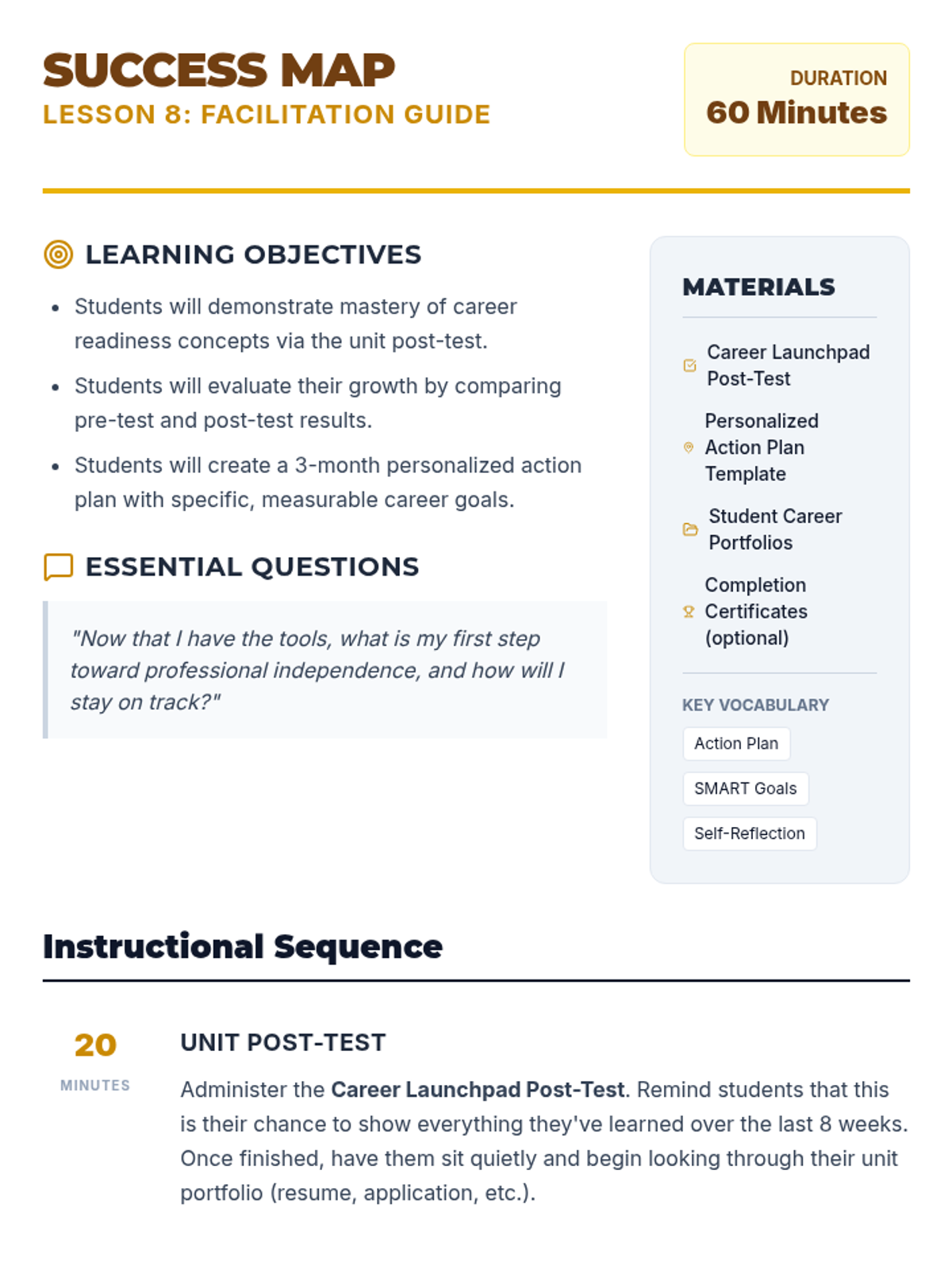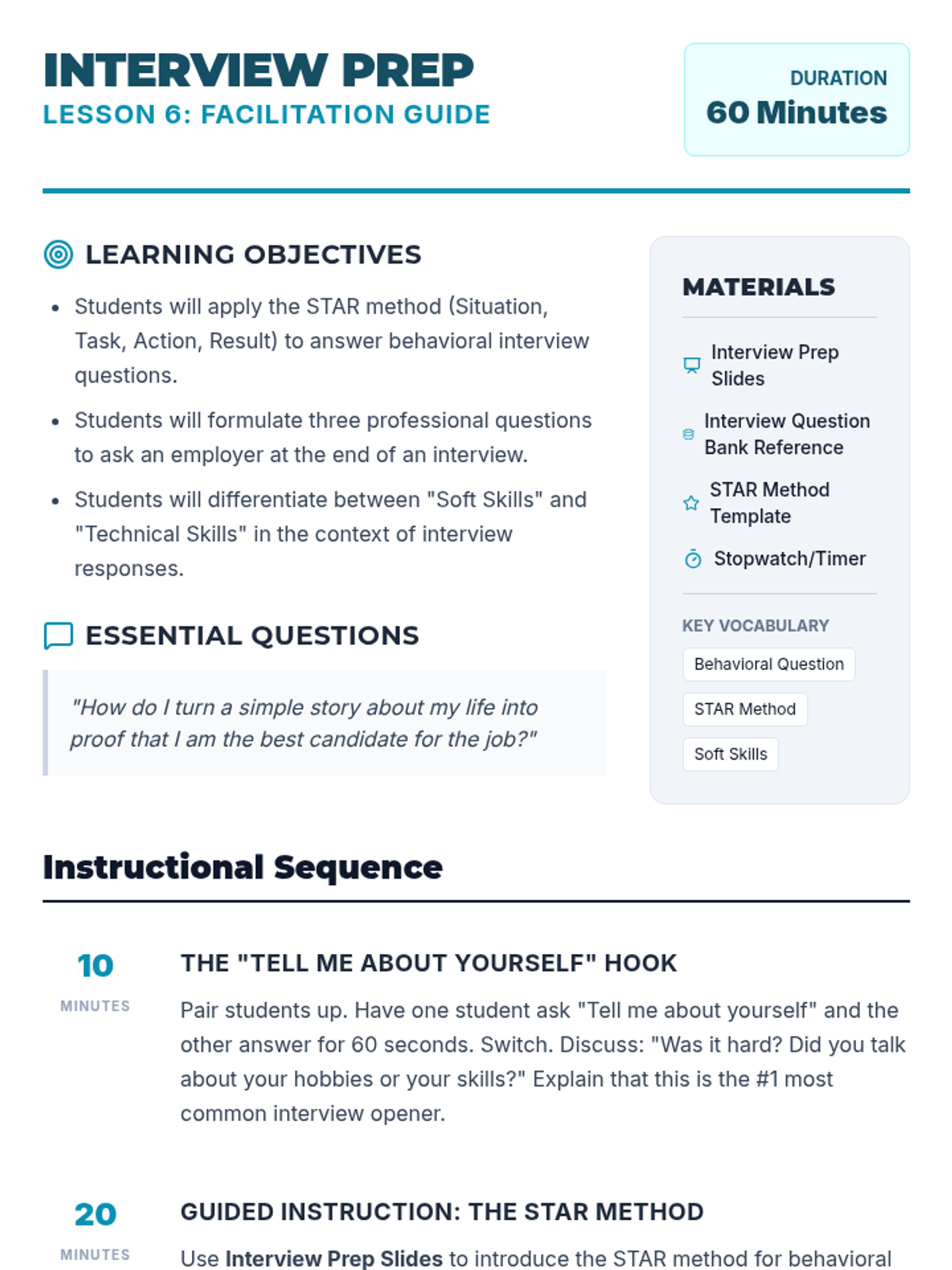An 8-week comprehensive unit designed to prepare high school students for entering the workforce, covering everything from legal working papers and job applications to interview techniques and long-term career planning.