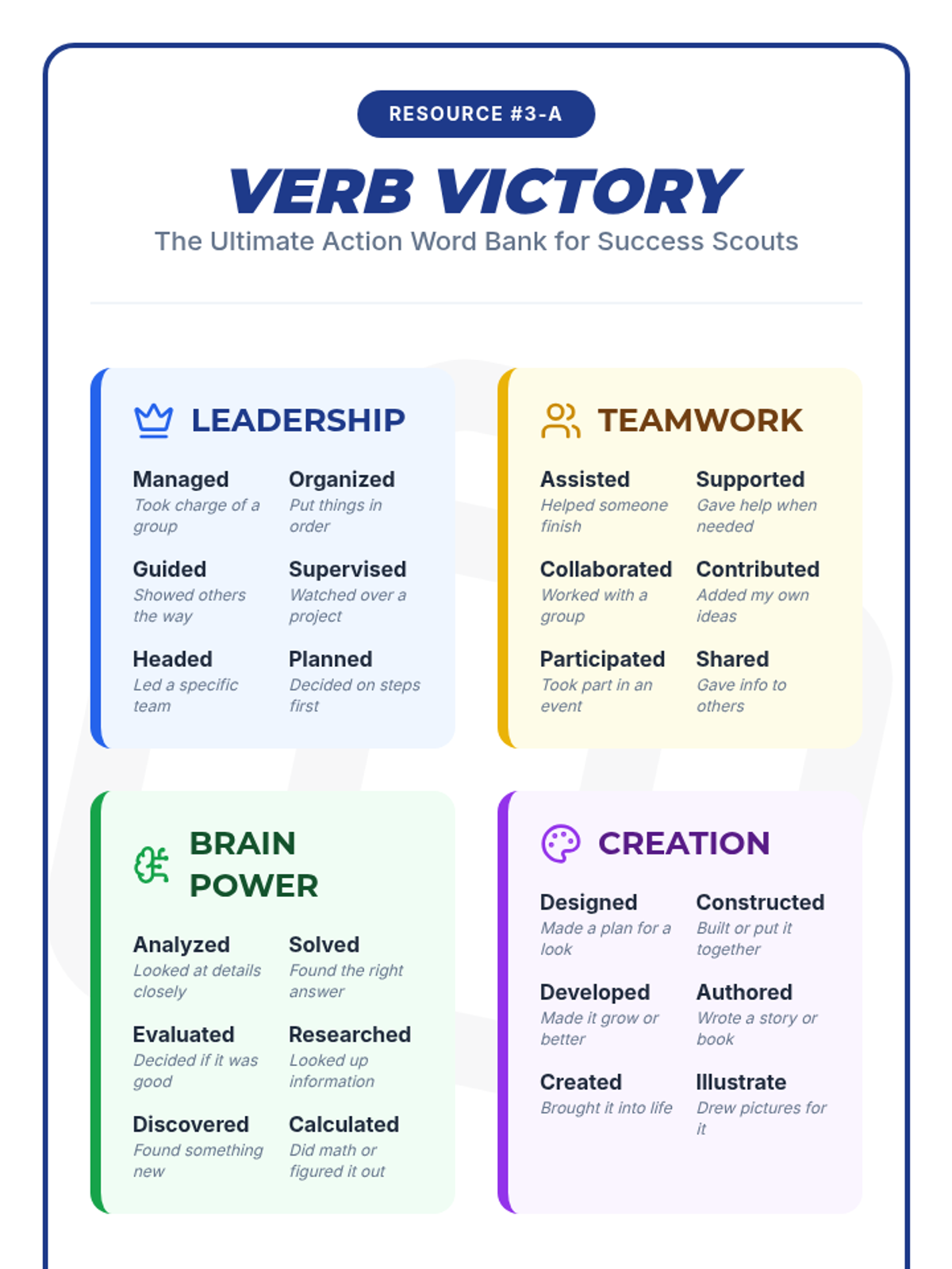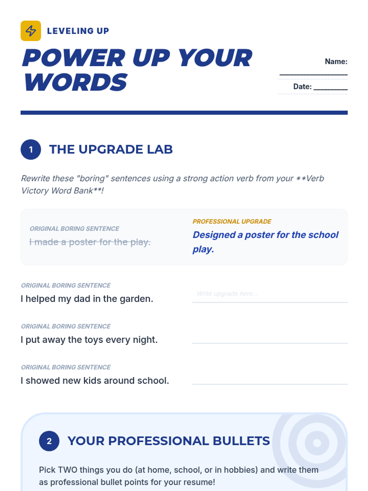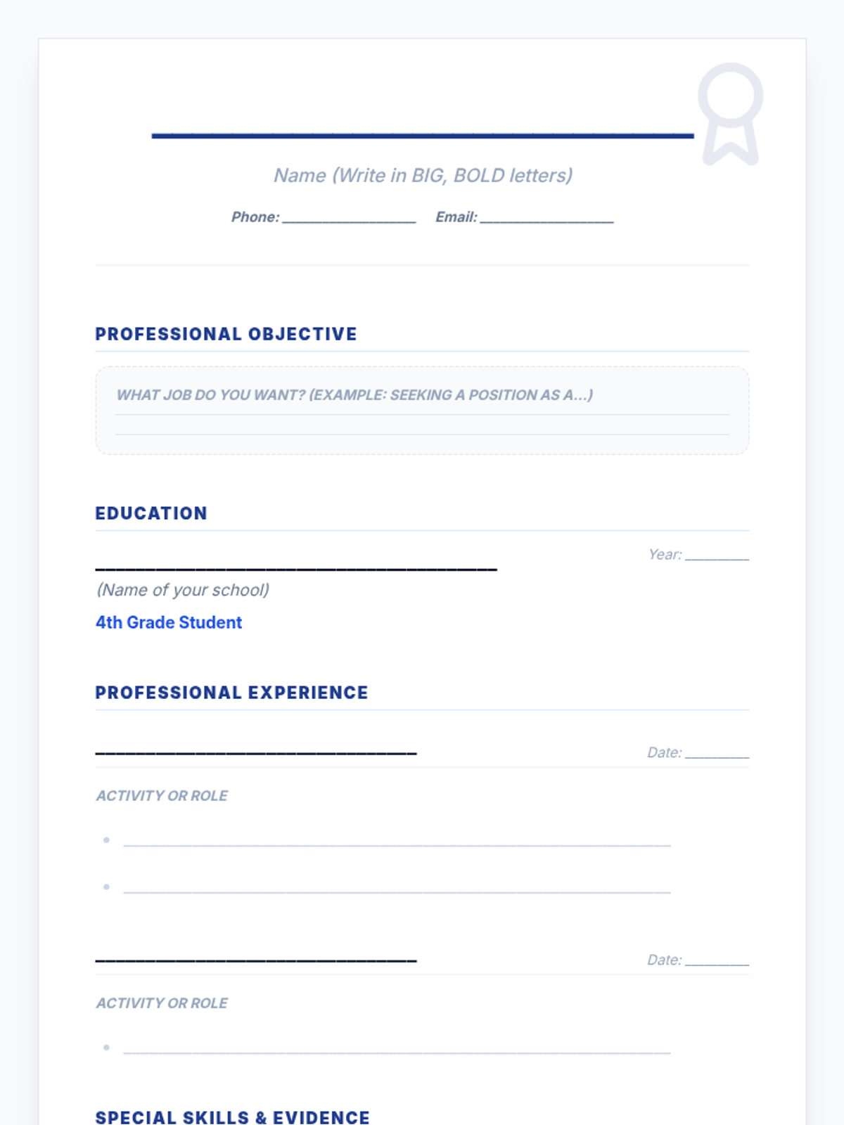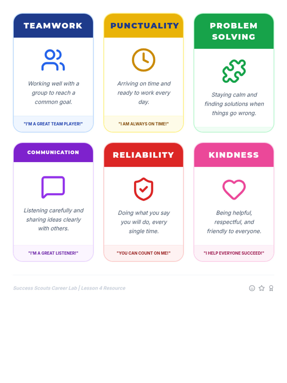 A 5-lesson sequence for 4th graders to explore personal strengths, understand the purpose of a resume, and draft their first professional resume using action verbs and soft skills.