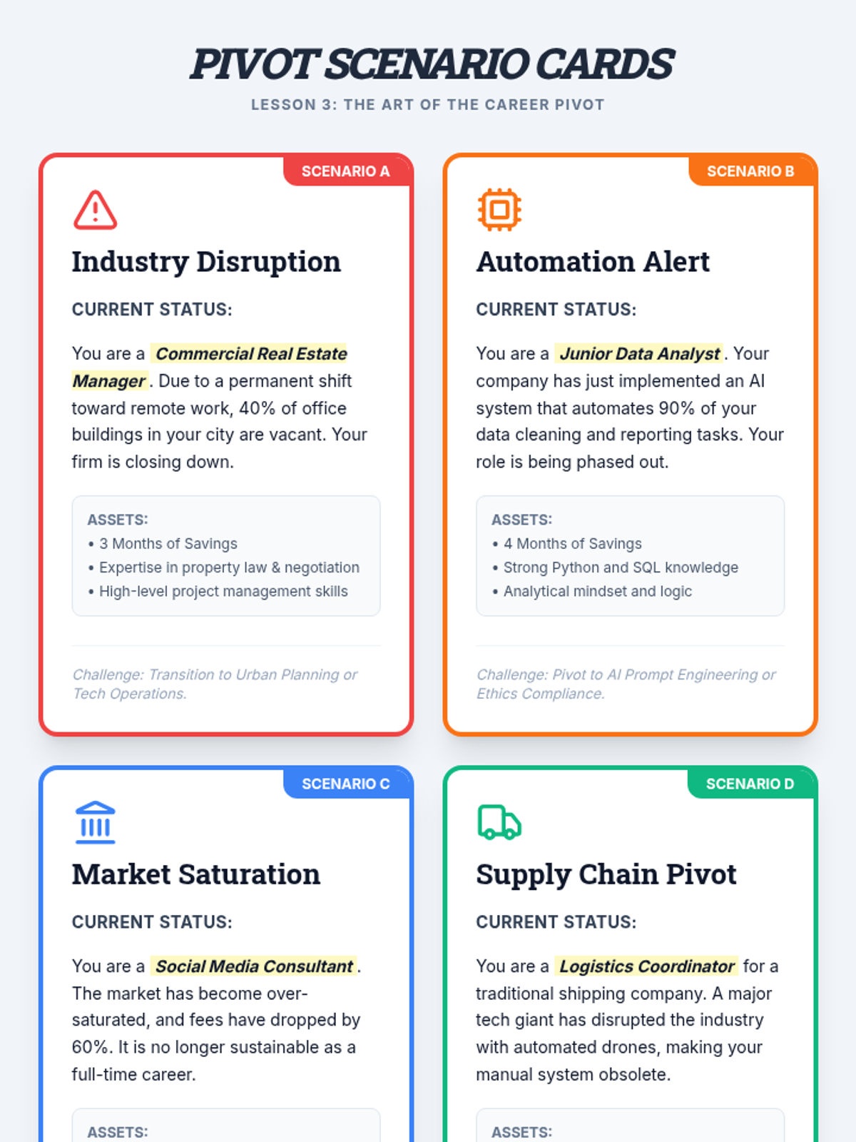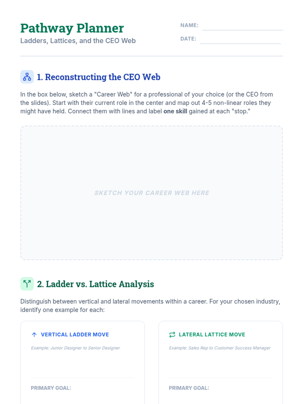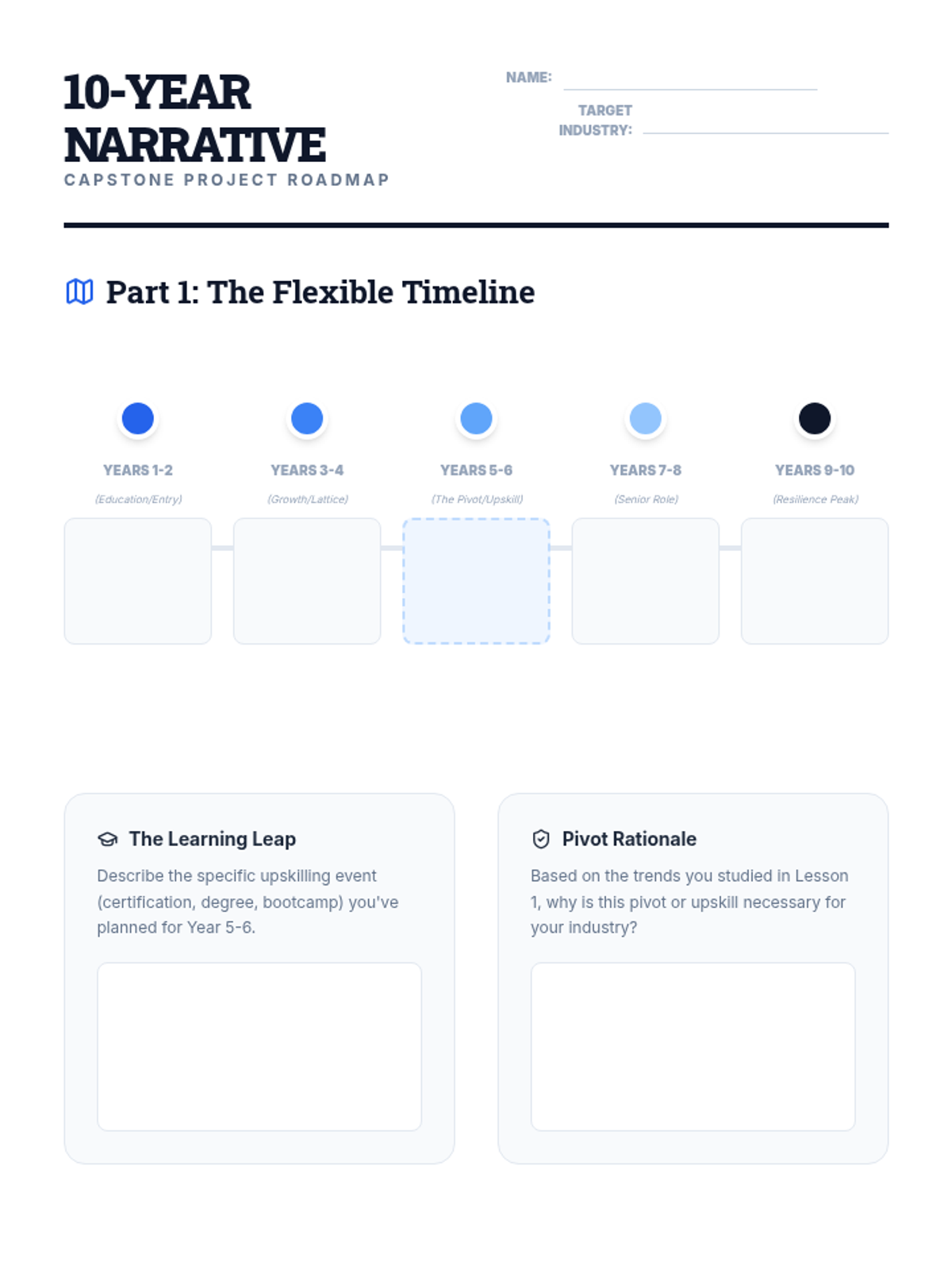 A comprehensive sequence designed to prepare 12th-grade students for a dynamic professional landscape through labor market analysis, career mapping, and strategic 10-year planning. Students will learn to navigate technological shifts and develop a mindset of professional agility.