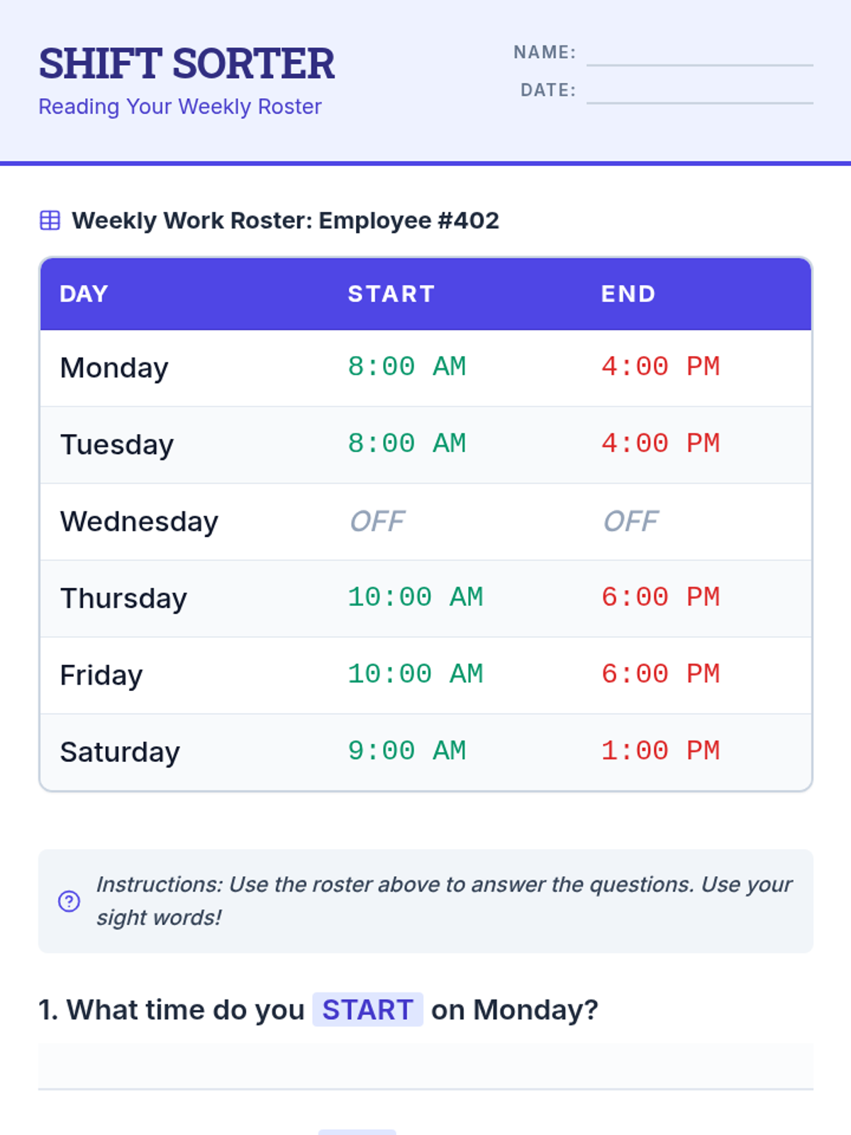 A workplace-readiness sequence for beginner English language learners (Grade 11) focusing on high-frequency sight words in professional contexts like job ads, safety signs, and schedules.