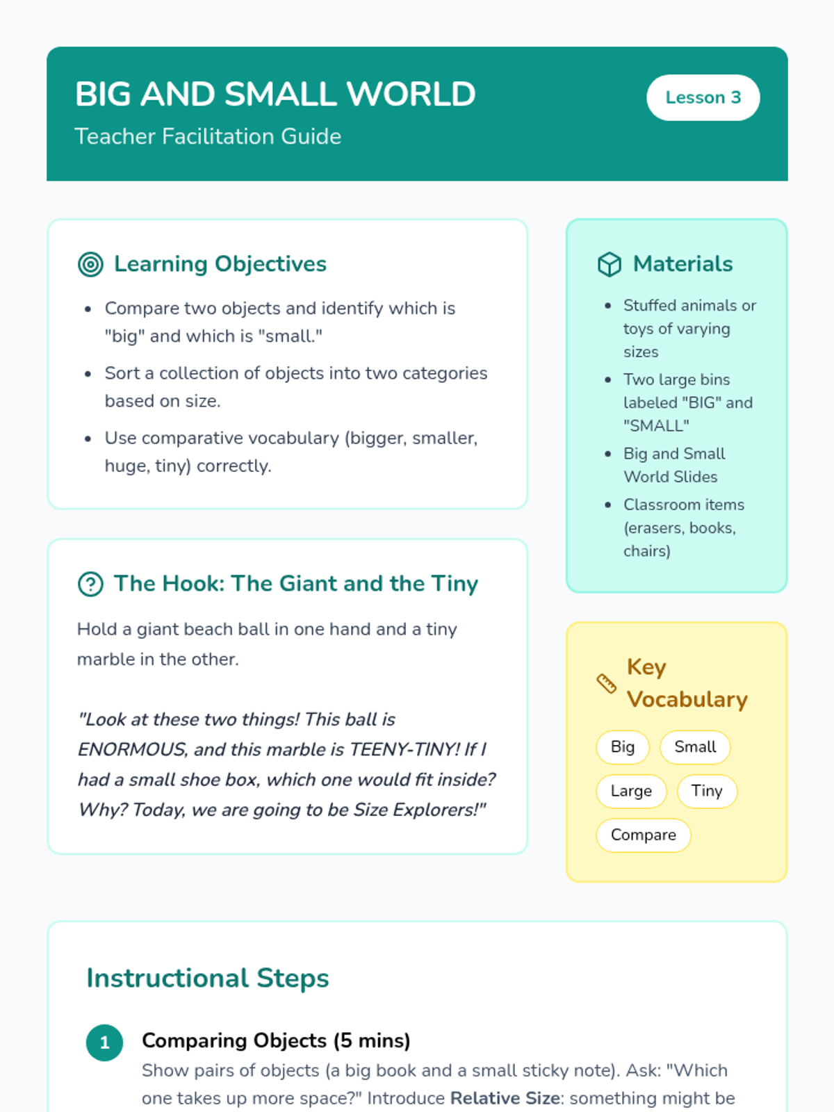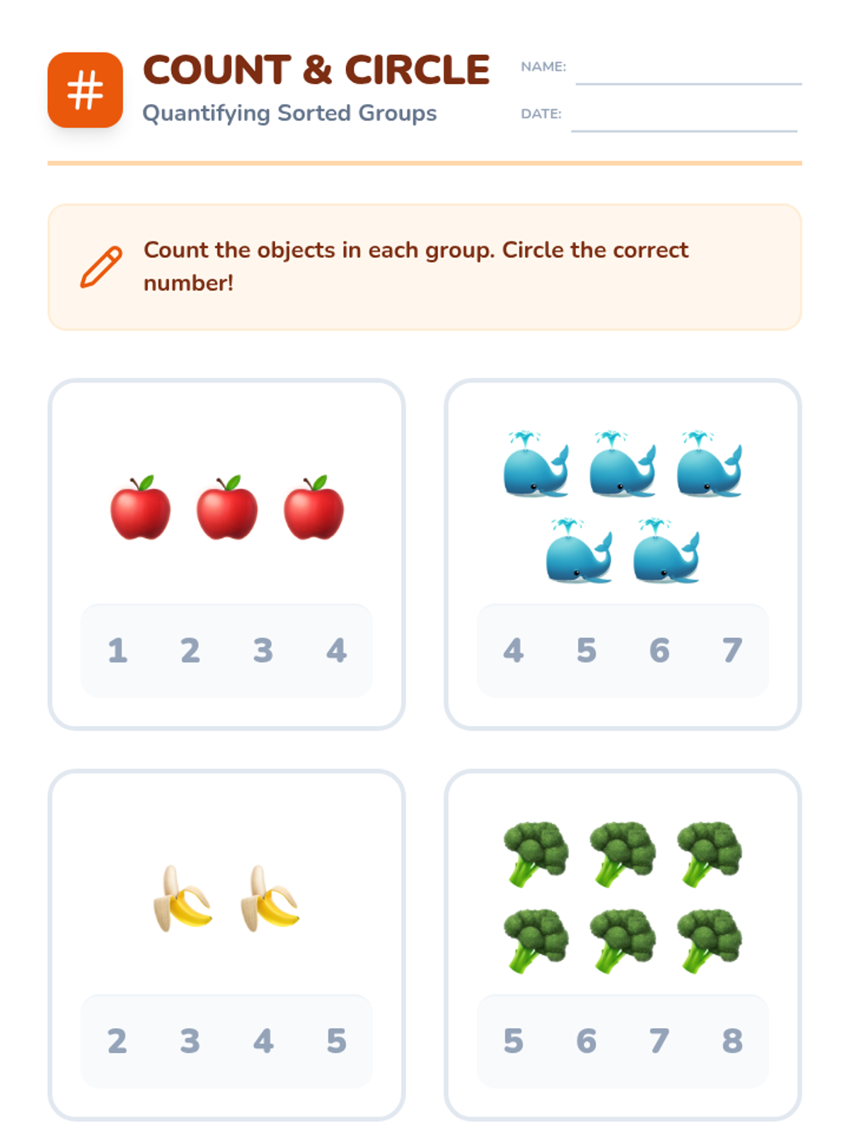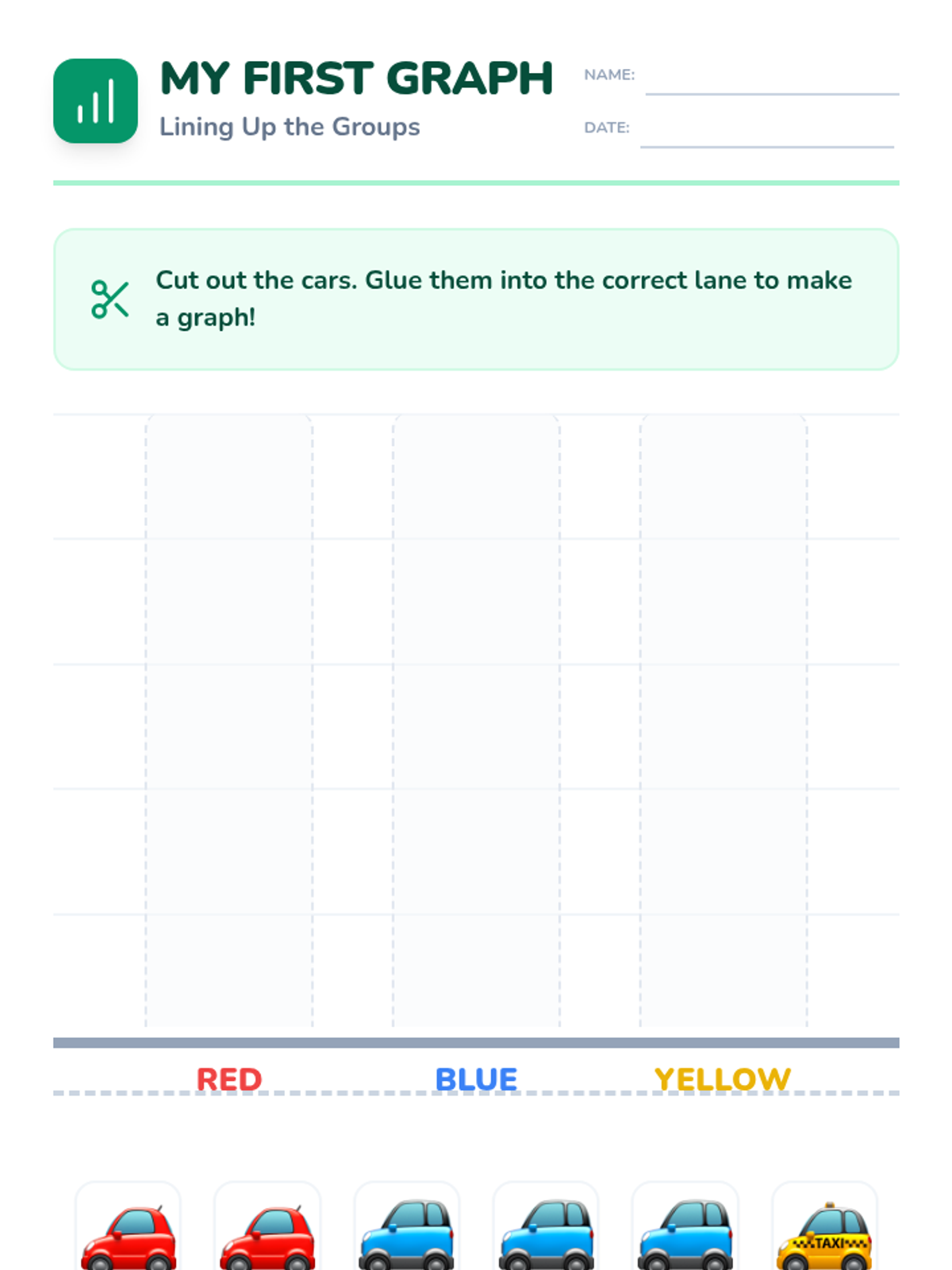 This sequence guides early learners through organizing their world by observing physical properties and grouping objects accordingly, bridging classification and early data analysis.