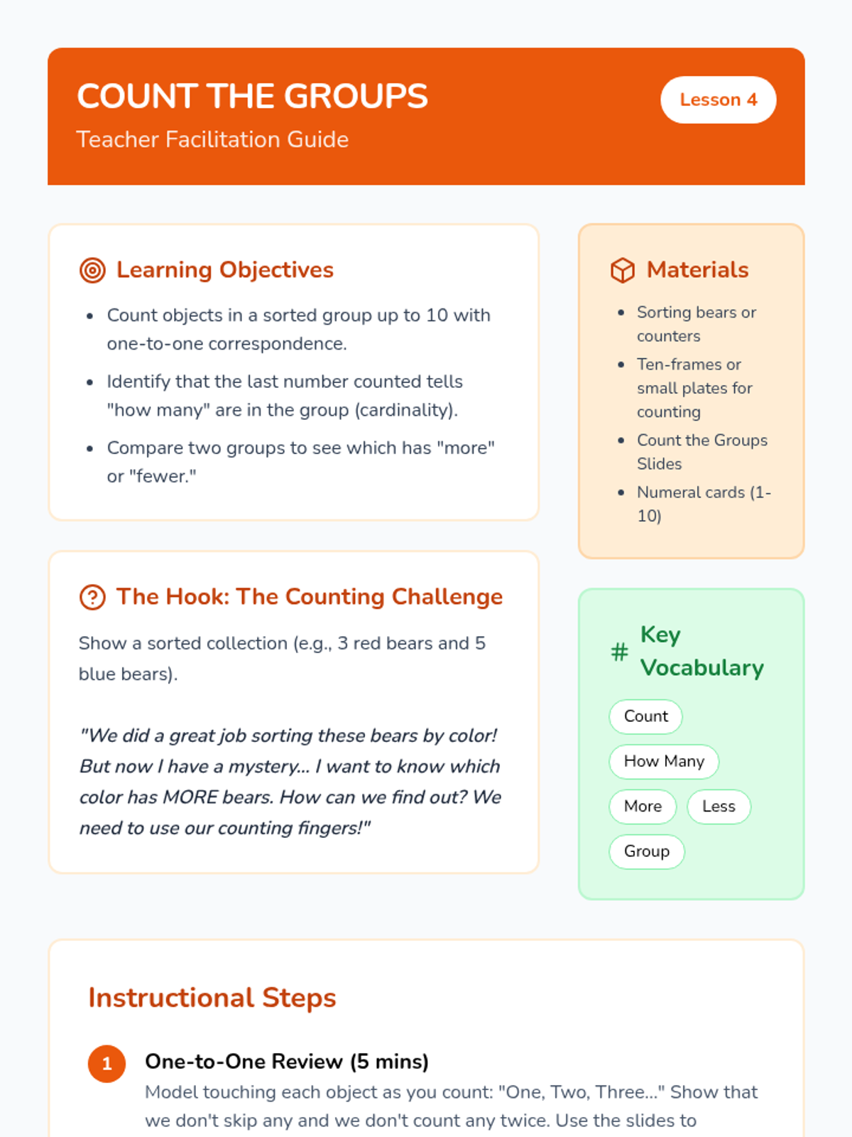 A high-intensity, evidence-based intervention designed for students needing foundational number sense support. Focuses on subitizing, 1:1 correspondence, place value, and decomposition using a CRA (Concrete-Representational-Abstract) approach.