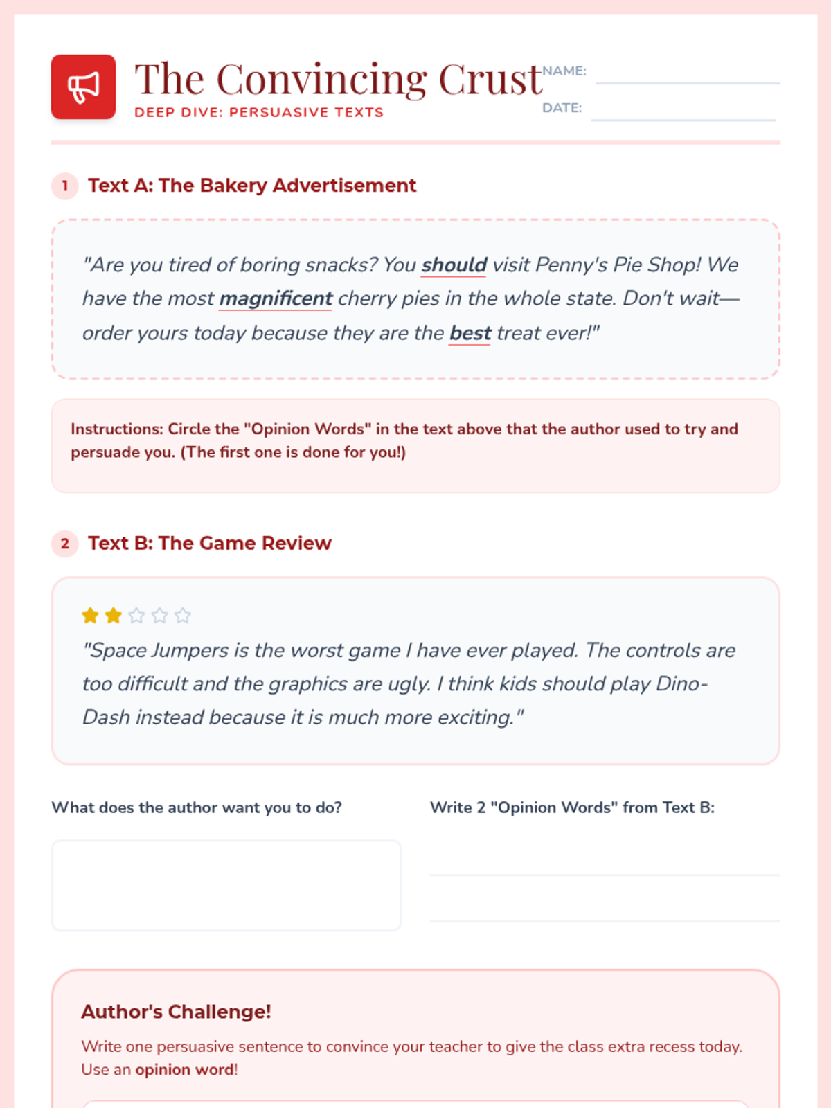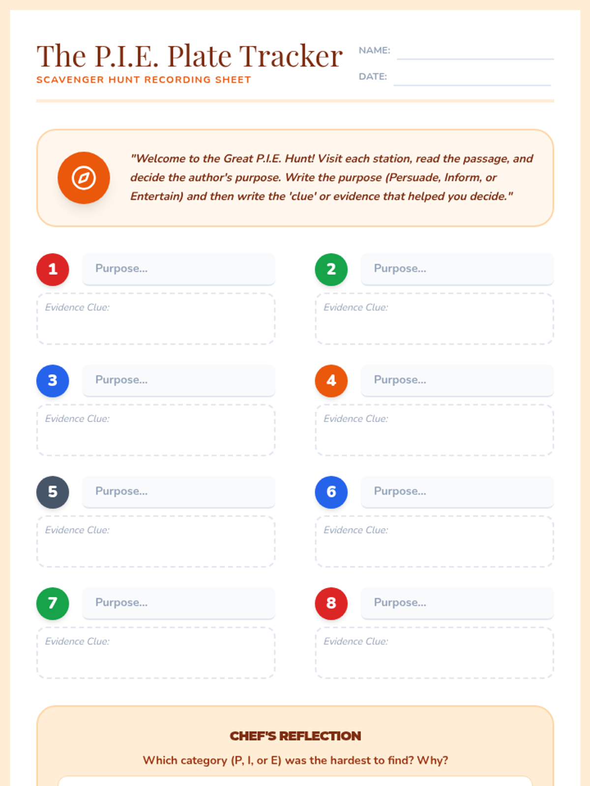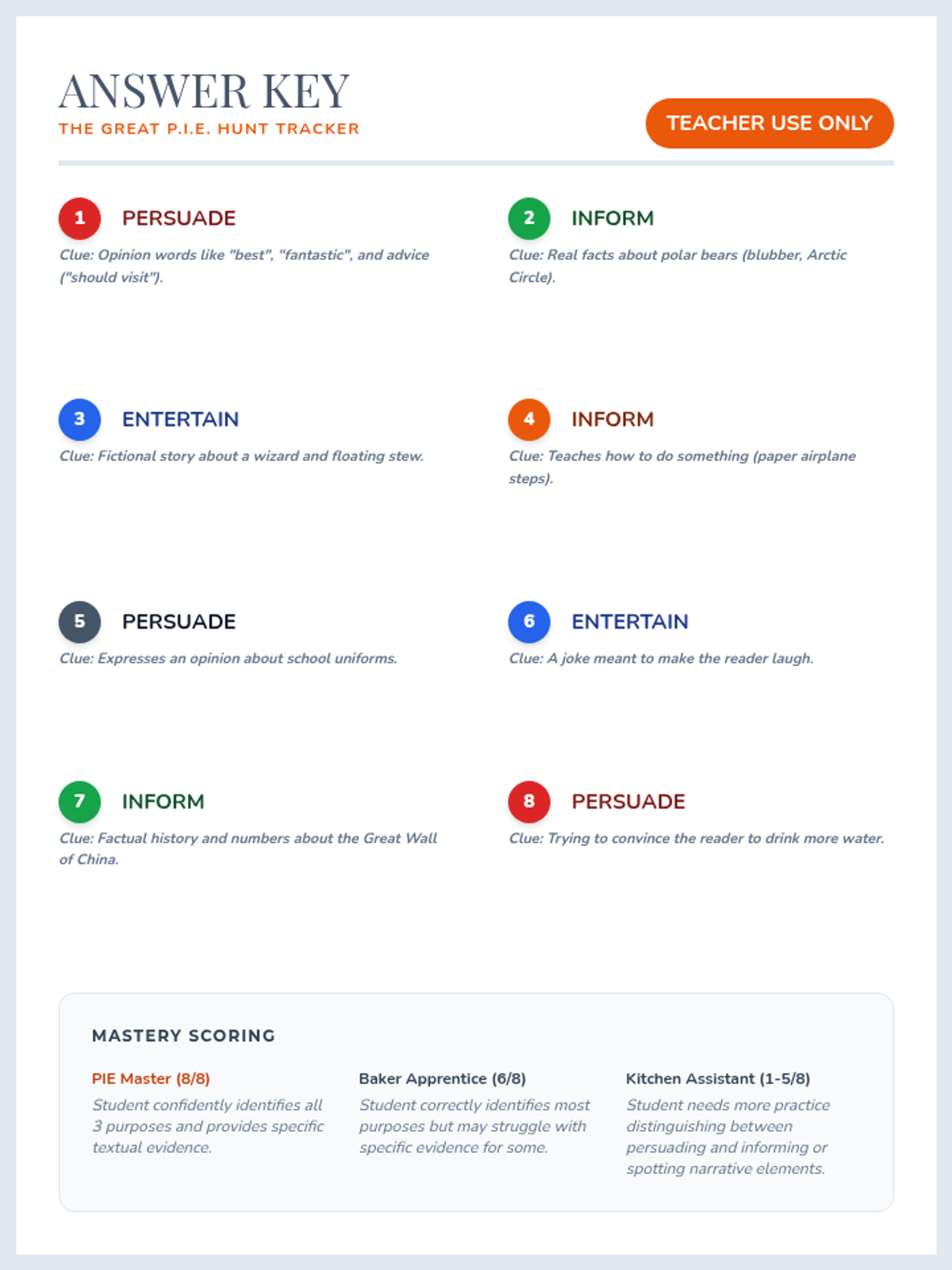A 3rd-grade ELA sequence focused on identifying and categorizing author's purpose using the P.I.E. (Persuade, Inform, Entertain) framework through interactive sorting, deep dives into text types, and a final scavenger hunt.