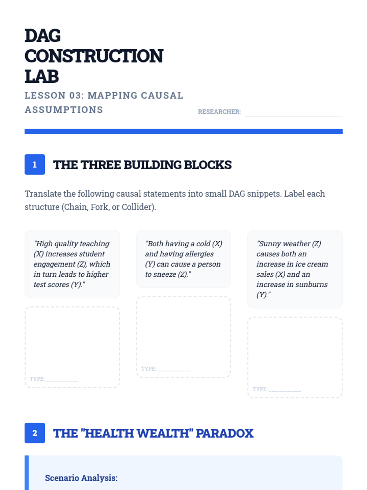 This graduate-level sequence bridges the gap between statistical association and causal inference. Students explore pitfalls like Simpson's Paradox and collider bias while learning to use Directed Acyclic Graphs (DAGs) and Instrumental Variables to isolate causal mechanisms in bivariate data.