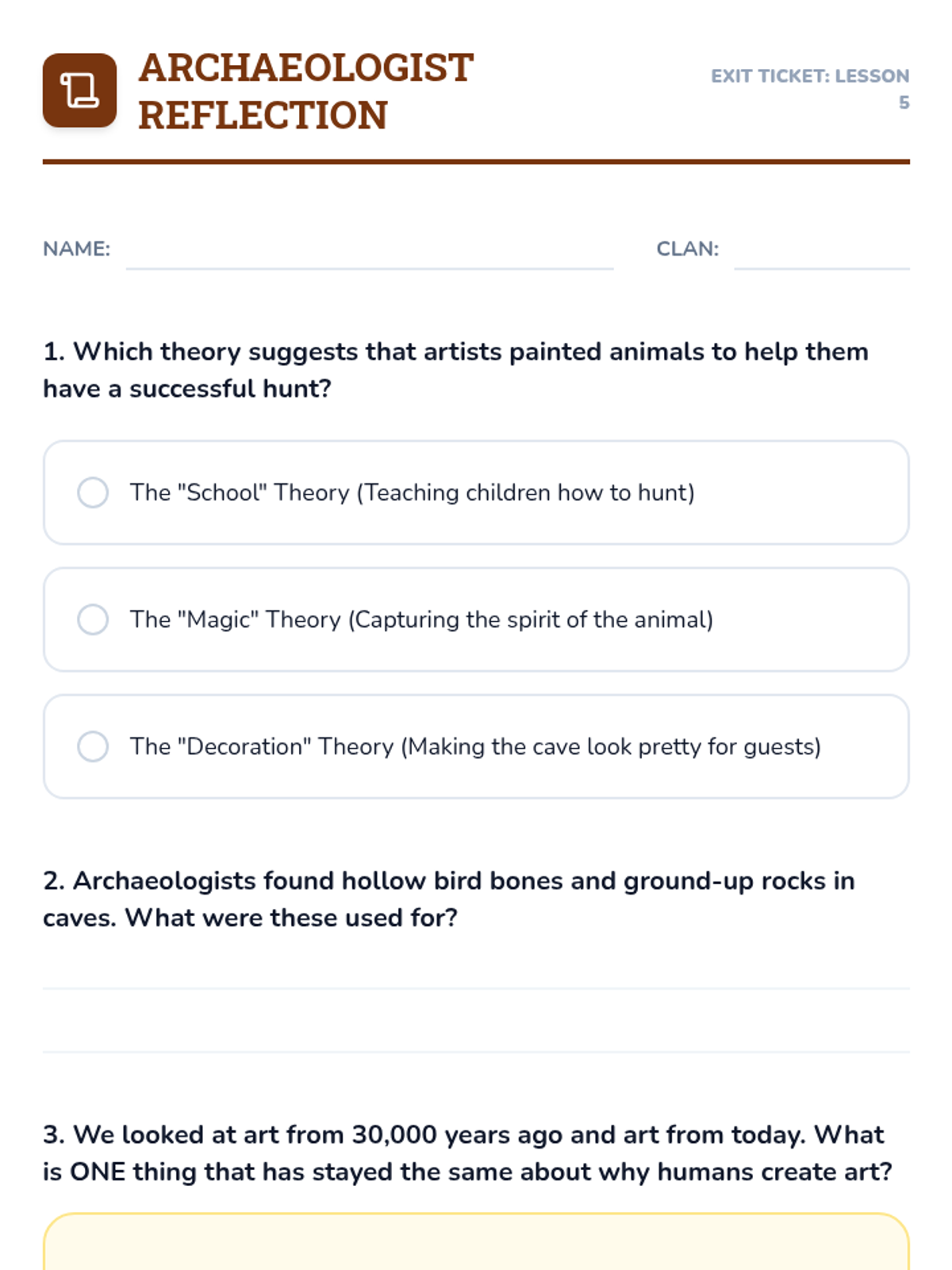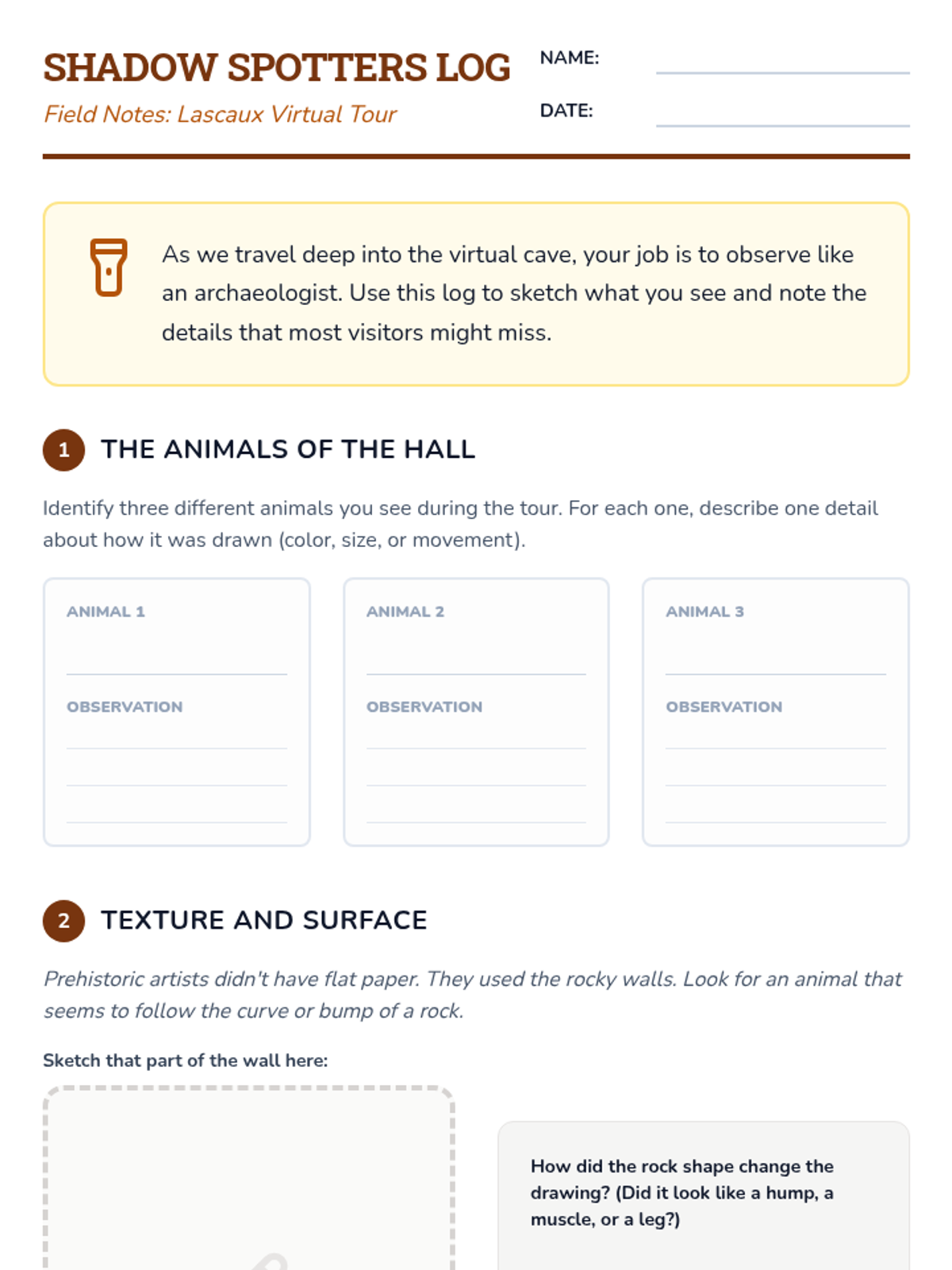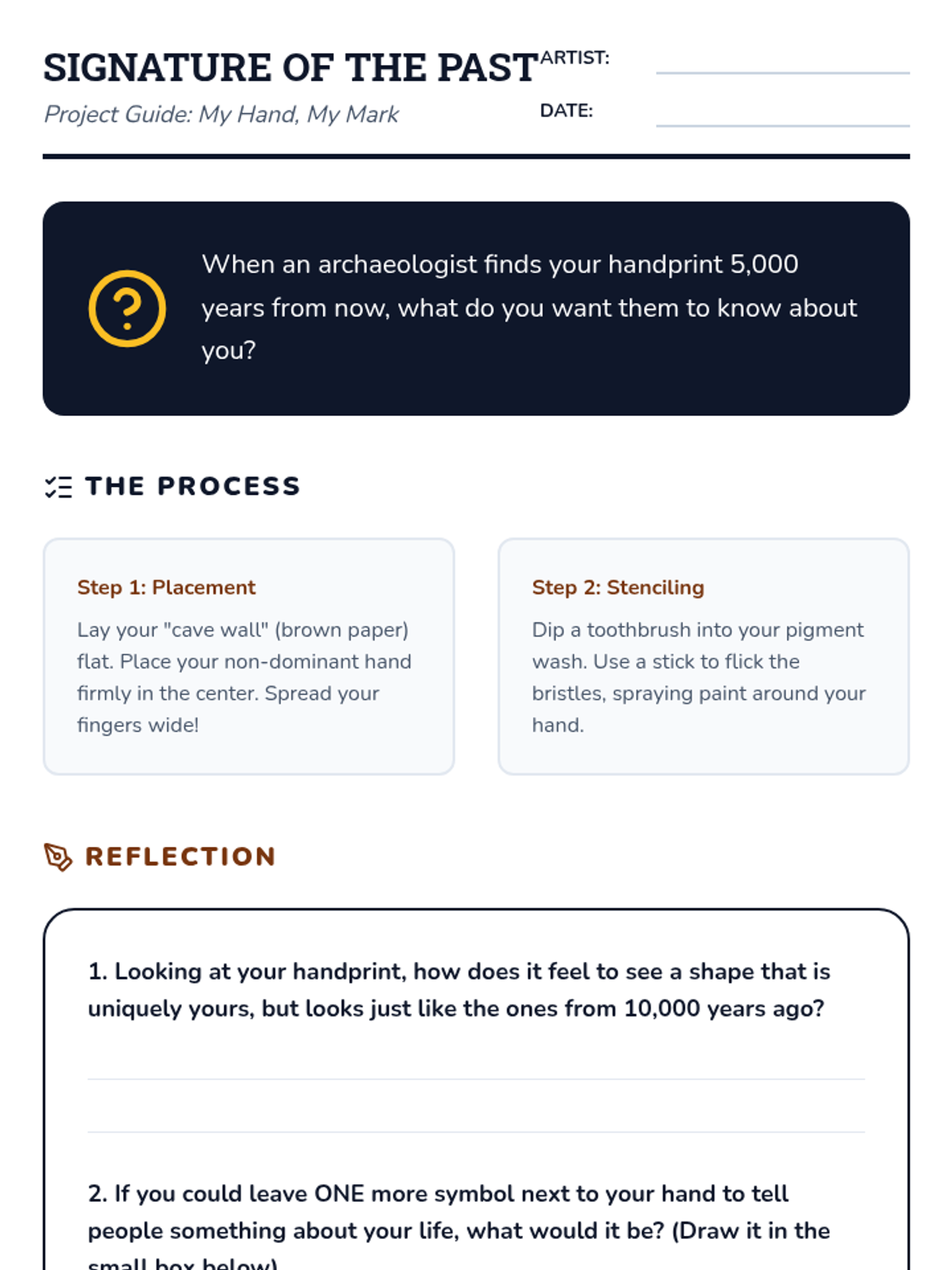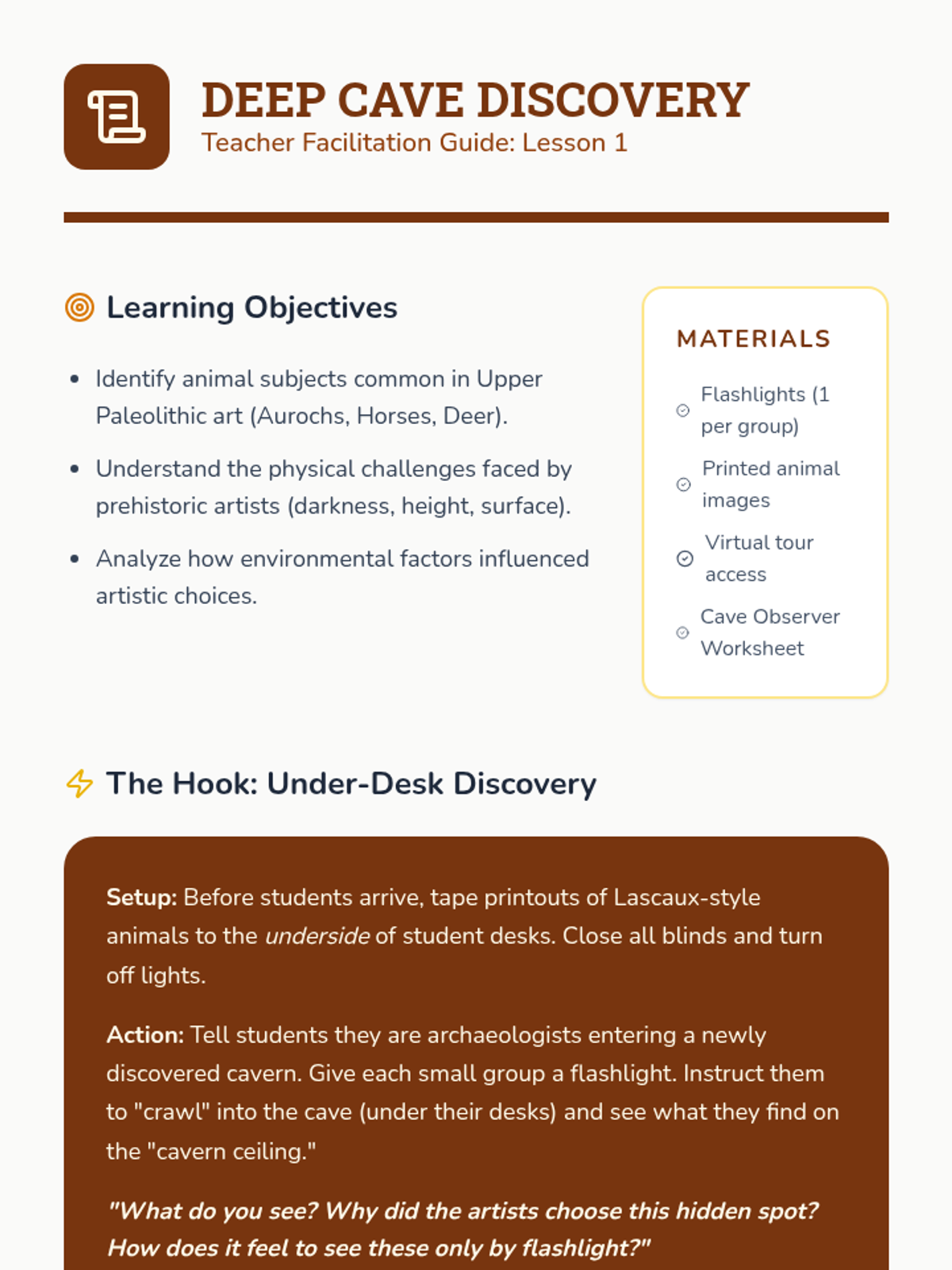 A 3rd-grade history sequence exploring the Upper Paleolithic through art and communication. Students visit virtual caves, create natural pigments, and analyze the human drive to leave a lasting mark through symbolic expression.