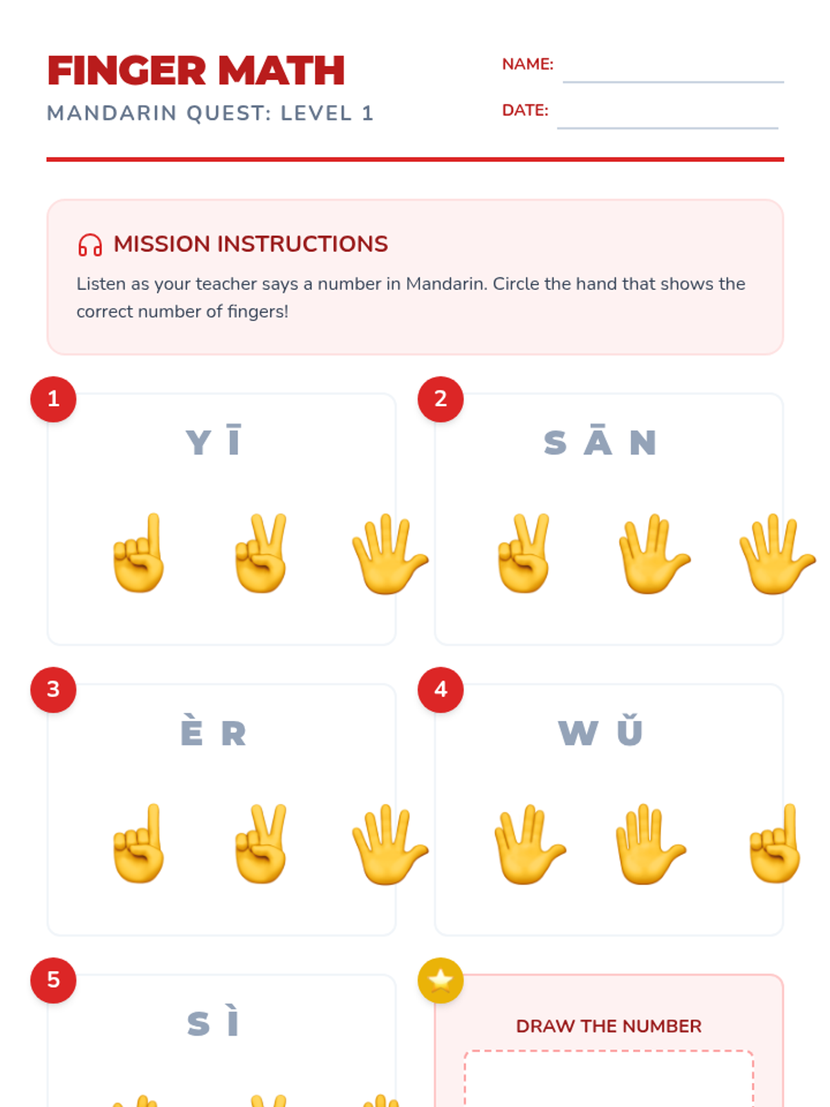 This sequence focuses on the auditory recognition of numerical patterns in Mandarin Chinese, essential for understanding prices, phone numbers, dates, and time. Students leverage the logical structure of Mandarin counting to progress from basic digits to complex date and time formatting.