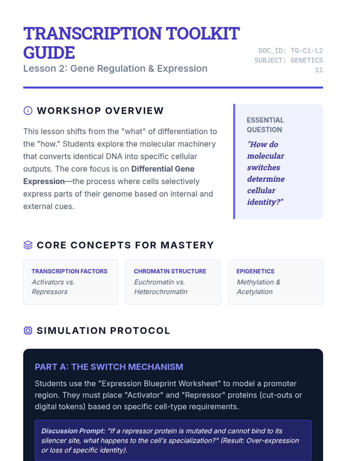 A series of high-impact biology lessons exploring the foundations of genetics, clinical genetic disorders, and genome mapping. Each lesson features chunked instruction, interactive stations, and rigorous monitoring.