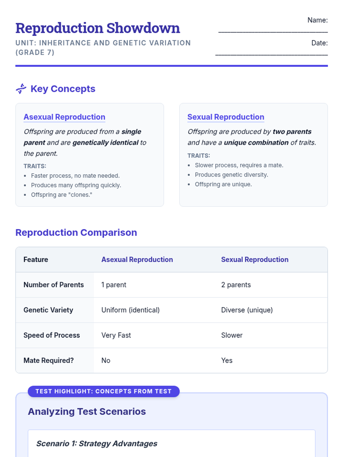 A comprehensive science sequence covering cellular biology for 6th grade and genetic inheritance for 7th grade, aligned with state-level testing standards.