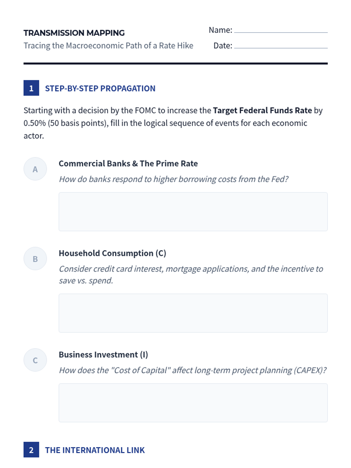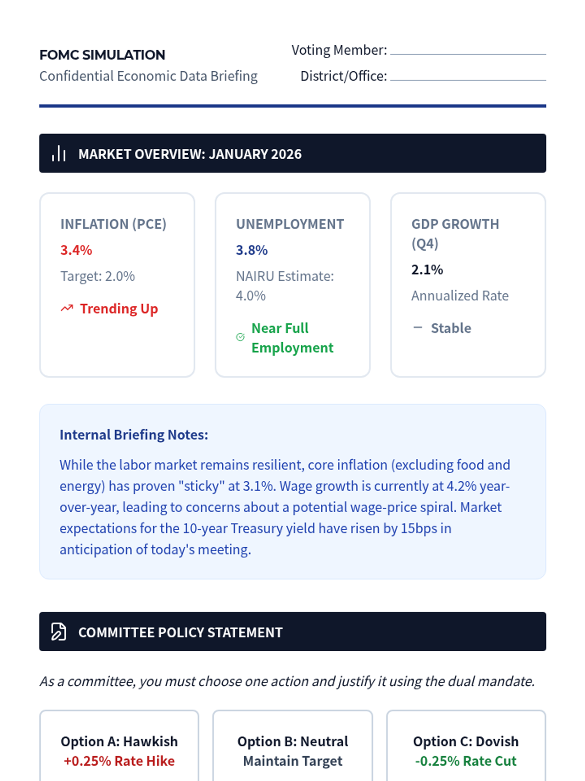 An undergraduate-level exploration of central banking operations, monetary policy frameworks, and financial stability. Students analyze the Federal Reserve's tools, transmission mechanisms, and crisis response strategies, culminating in a simulated FOMC policy meeting.