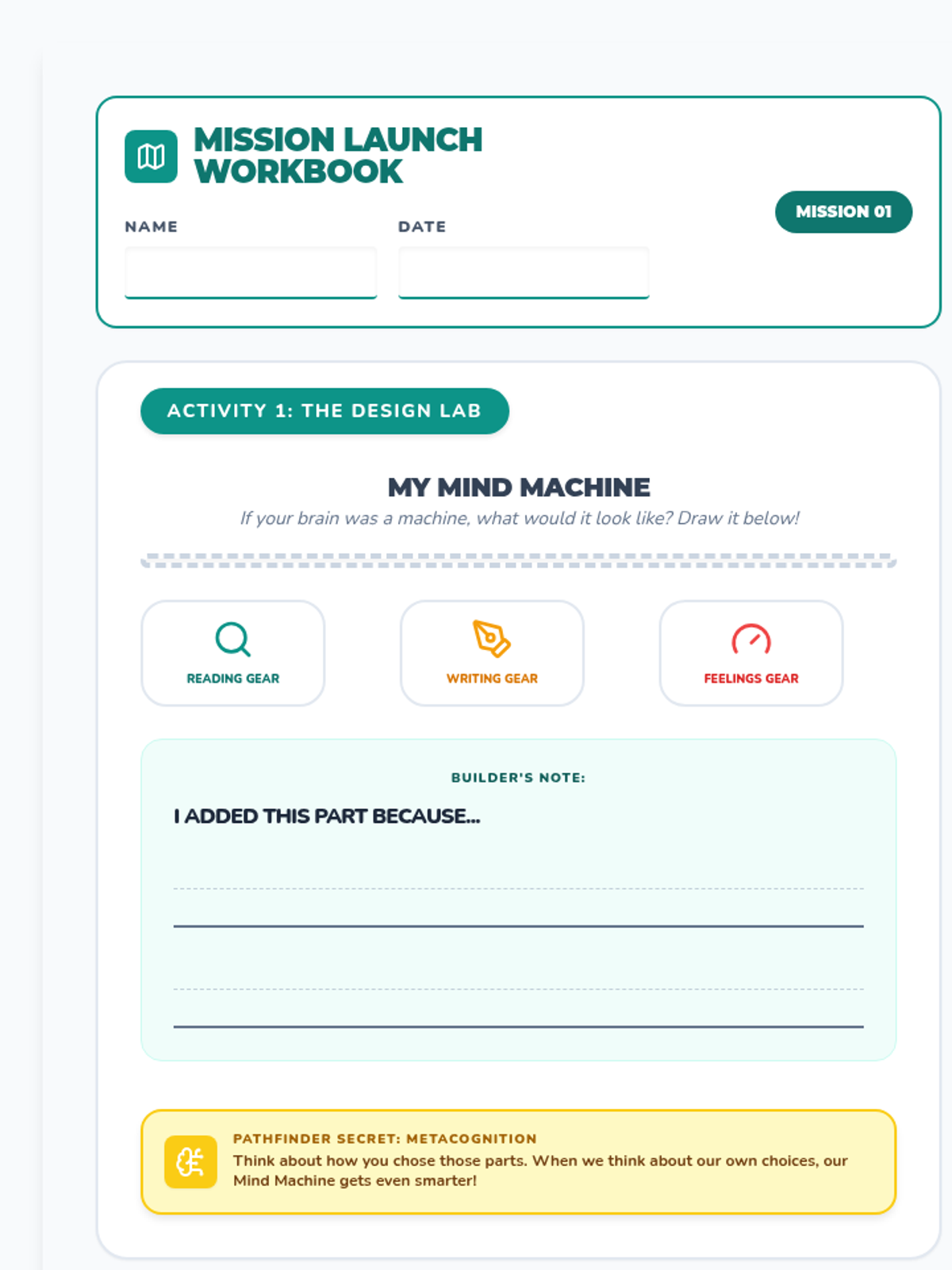 A 12-session journey for children aged 6-8 that integrates English literacy skills (comprehension, writing, grammar) with essential emotional and thinking skills using the 'Mind Mechanics' framework. Students learn to decode information, construct ideas precisely, and regulate their thoughts and responses for better school performance and well-being.