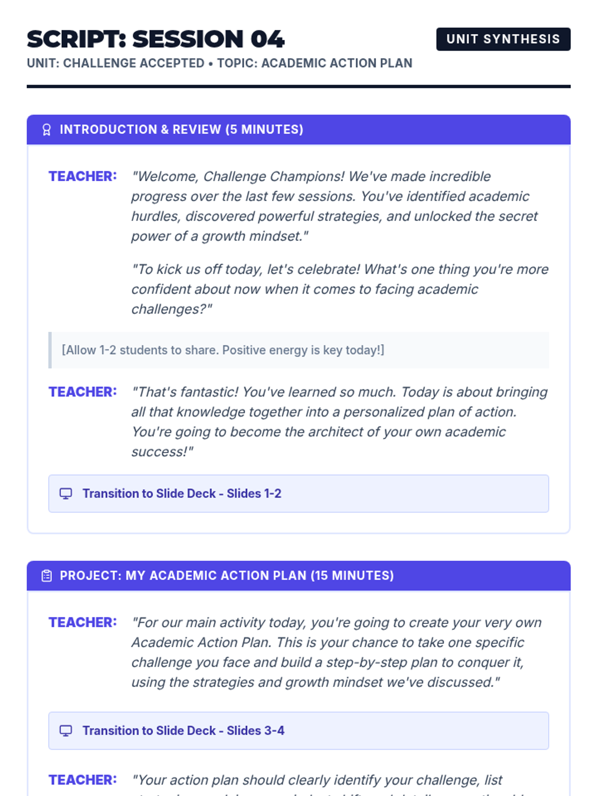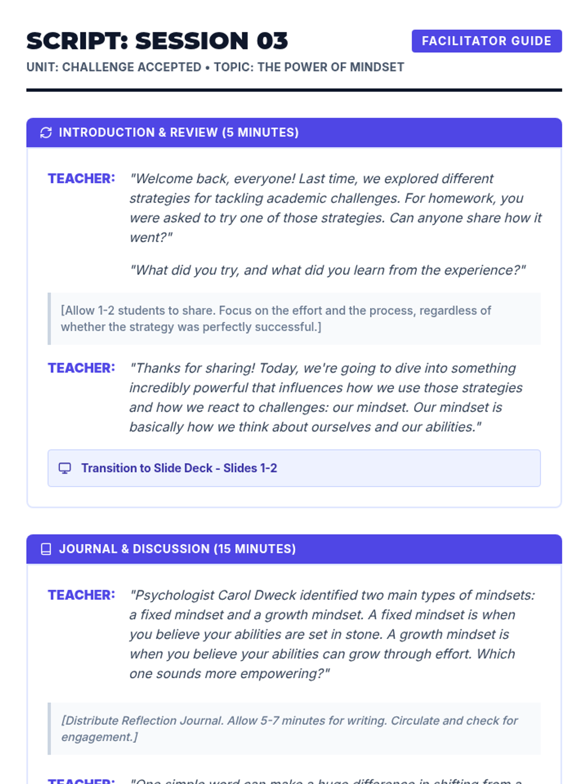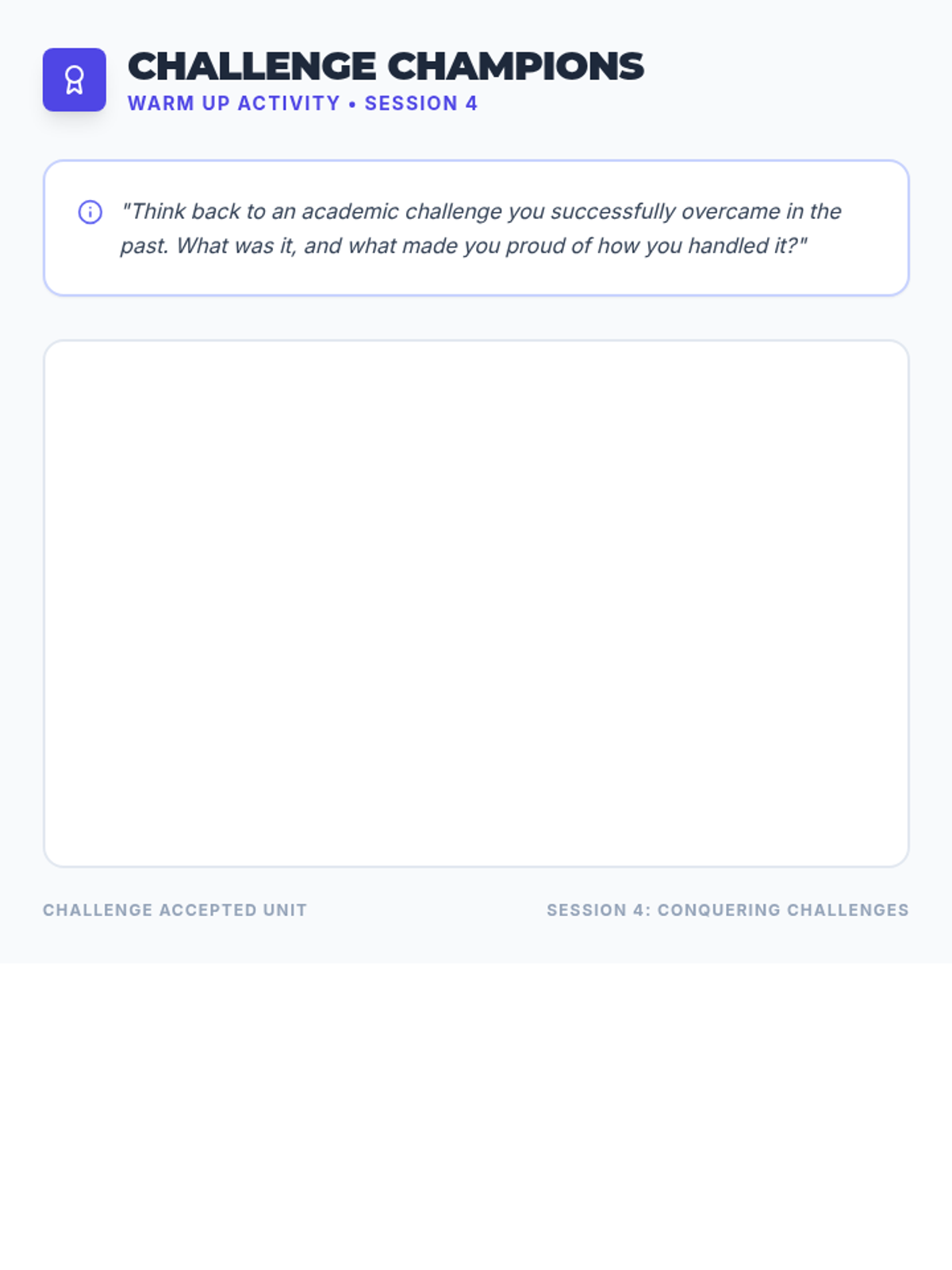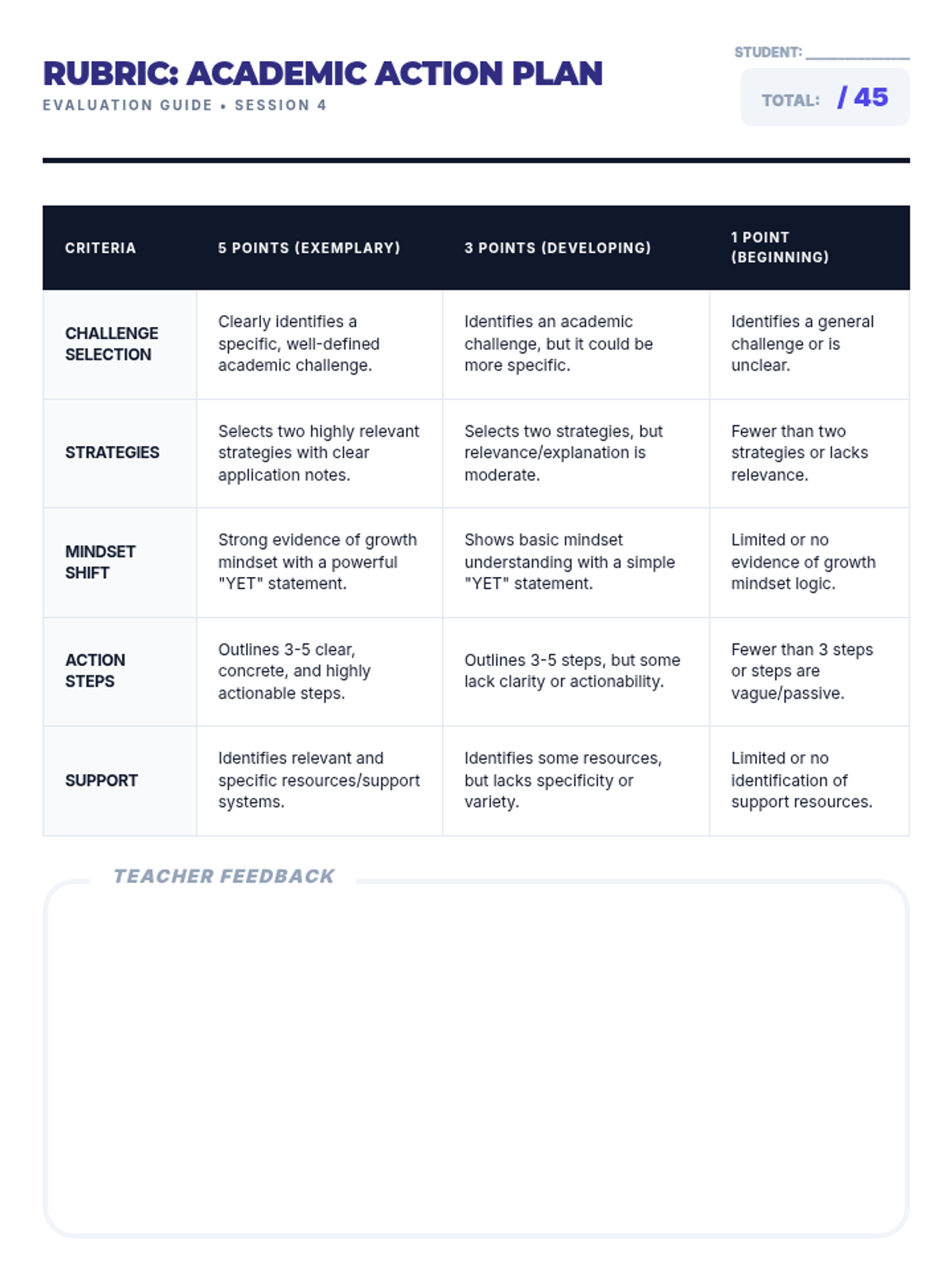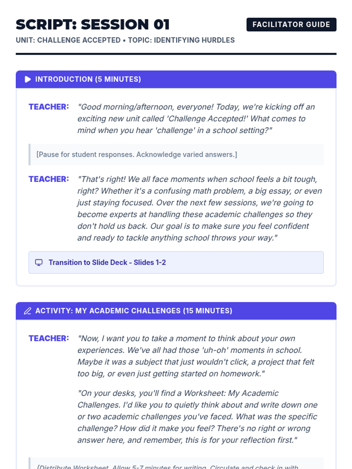 A 4-session unit for 8th-grade students designed to build academic resilience, problem-solving skills, and a growth mindset. Students identify personal hurdles, learn specific strategies, and create a custom action plan for success.
