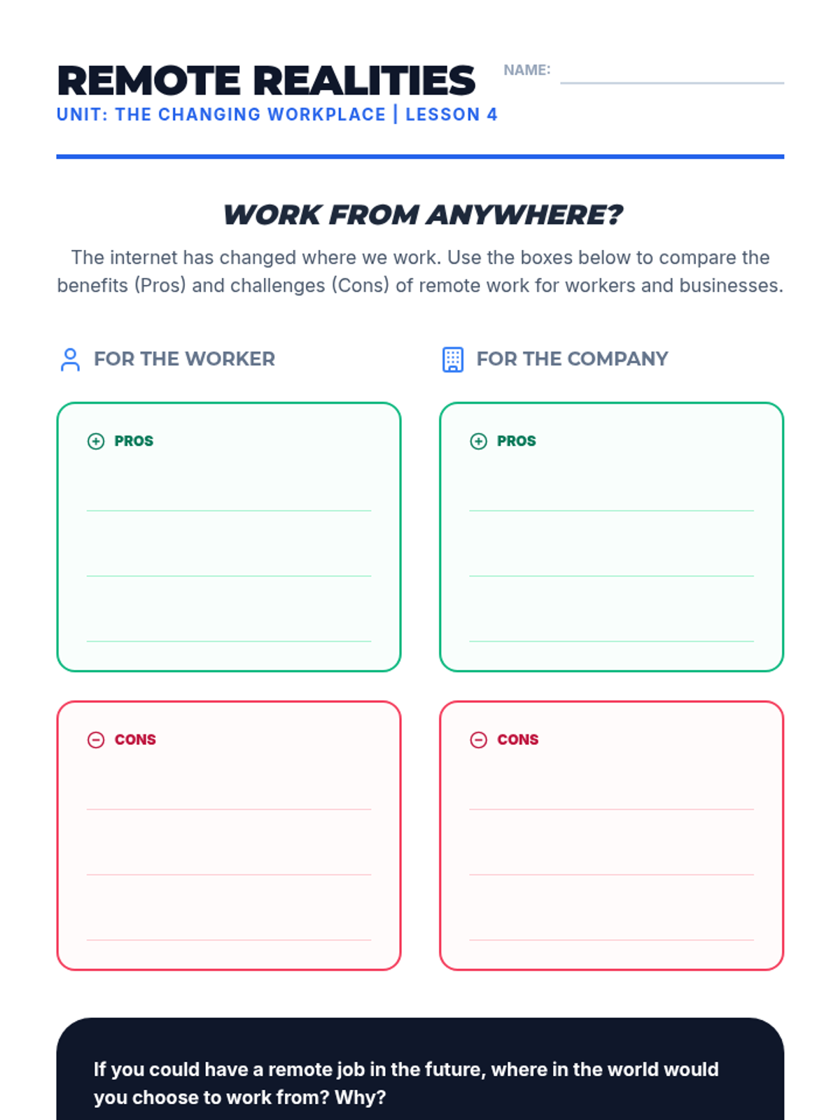A 4th-grade social studies unit exploring the historical and modern evolution of work, focusing on the impact of technology, automation, the gig economy, and remote work.