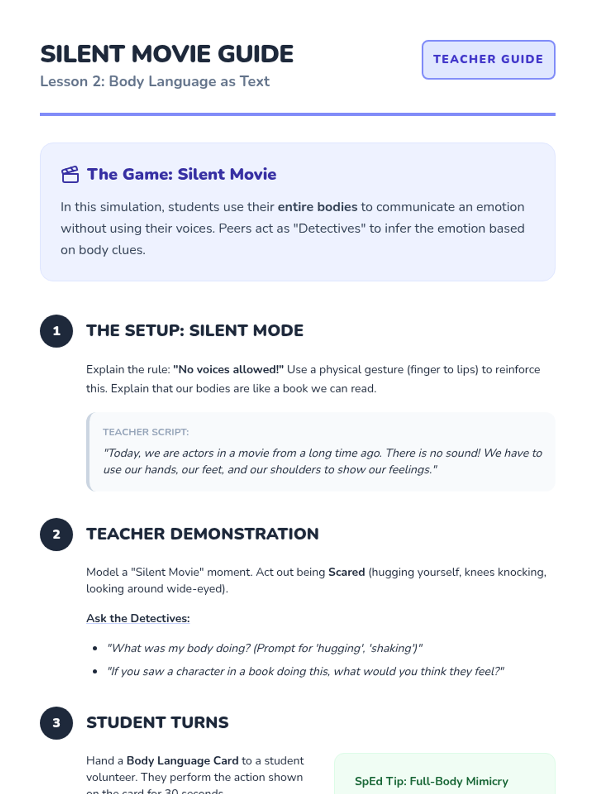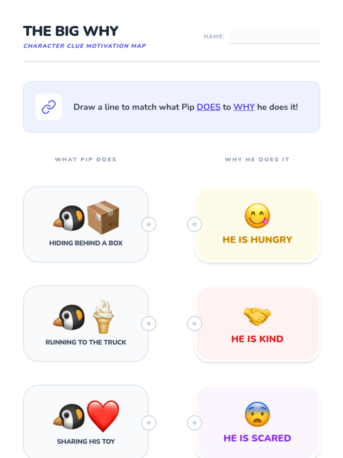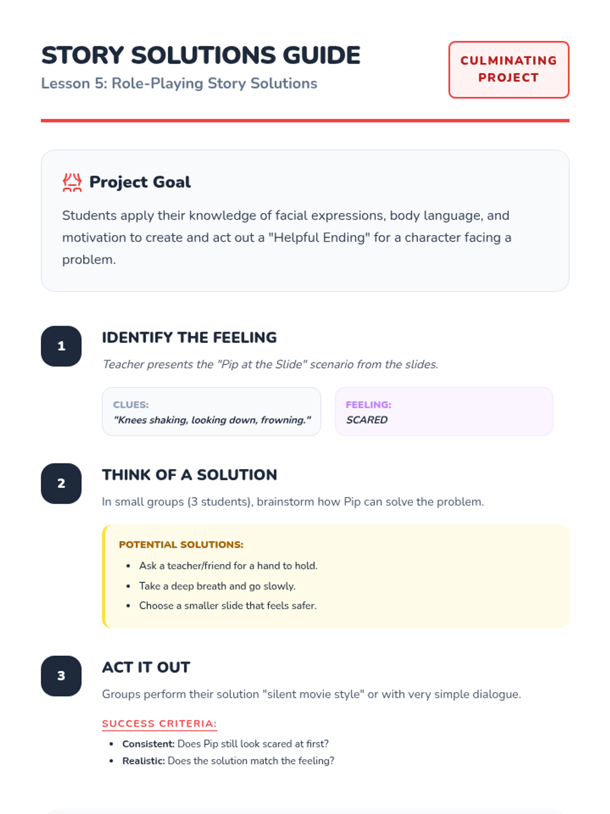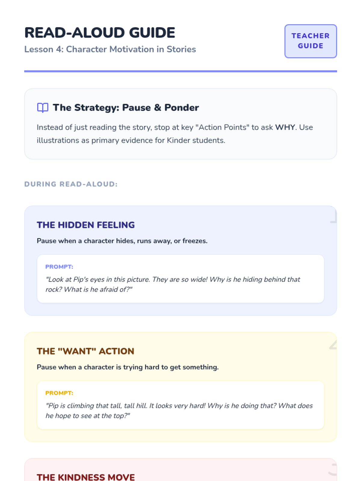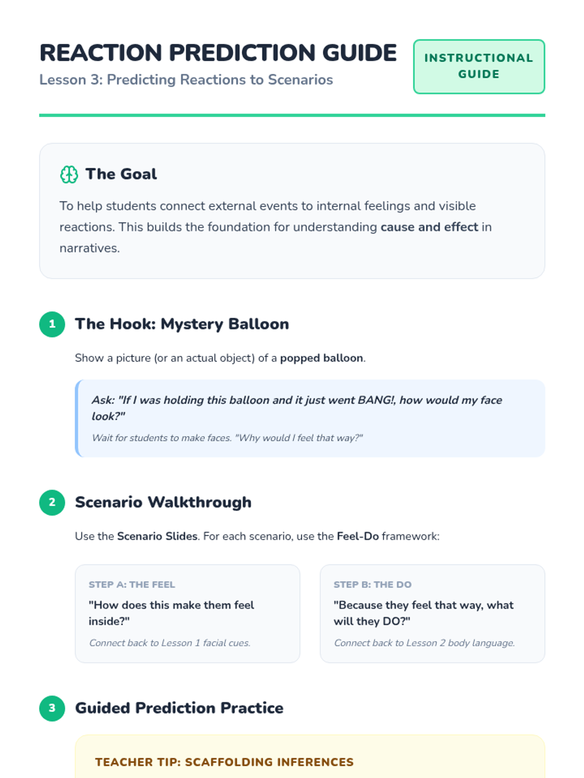 A Kindergarten sequence focused on teaching students to infer character emotions and motivations through facial expressions, body language, and situational clues. This supports early literacy and social-emotional development.