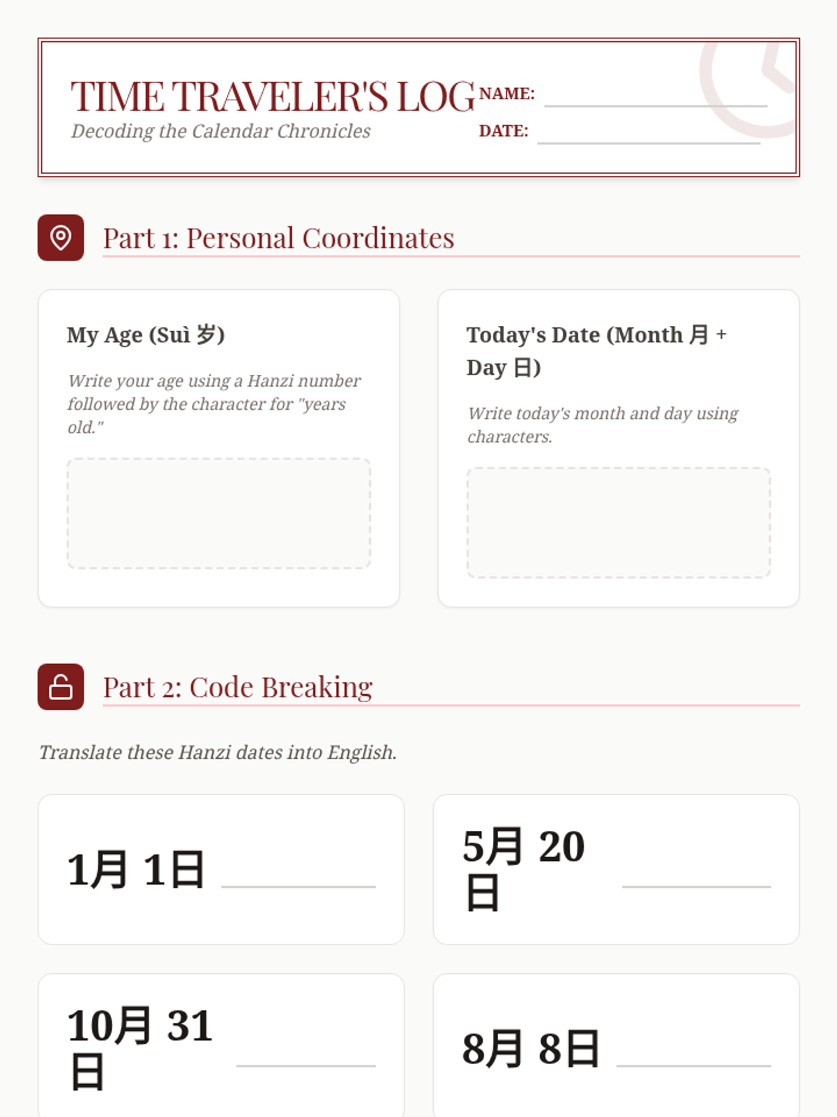 Students explore the historical evolution of Chinese characters from ancient pictures to modern forms. This inquiry-based sequence focuses on high-frequency nouns related to nature (sun, moon, water, mountain, fire) through the lens of visual archaeology.