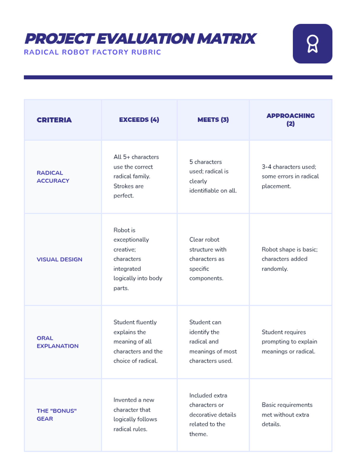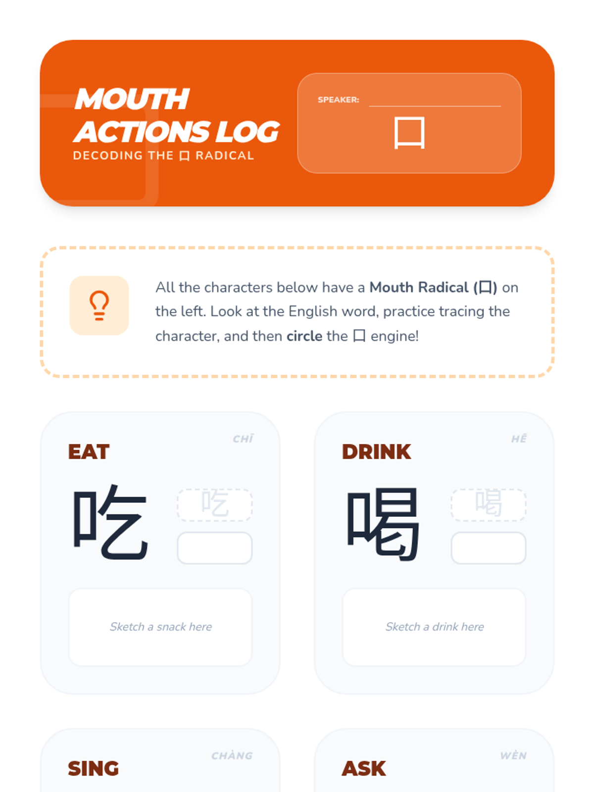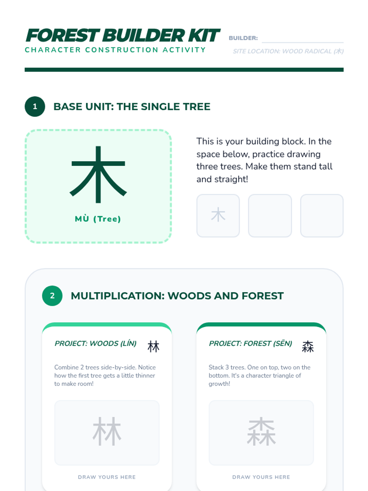 A sequence for 3rd grade students to learn Mandarin Chinese characters through the concept of radicals, using a 'Character Construction' theme. Students will explore common radicals like Water, Tree, and Mouth to understand how characters are built and how to decode their meanings.