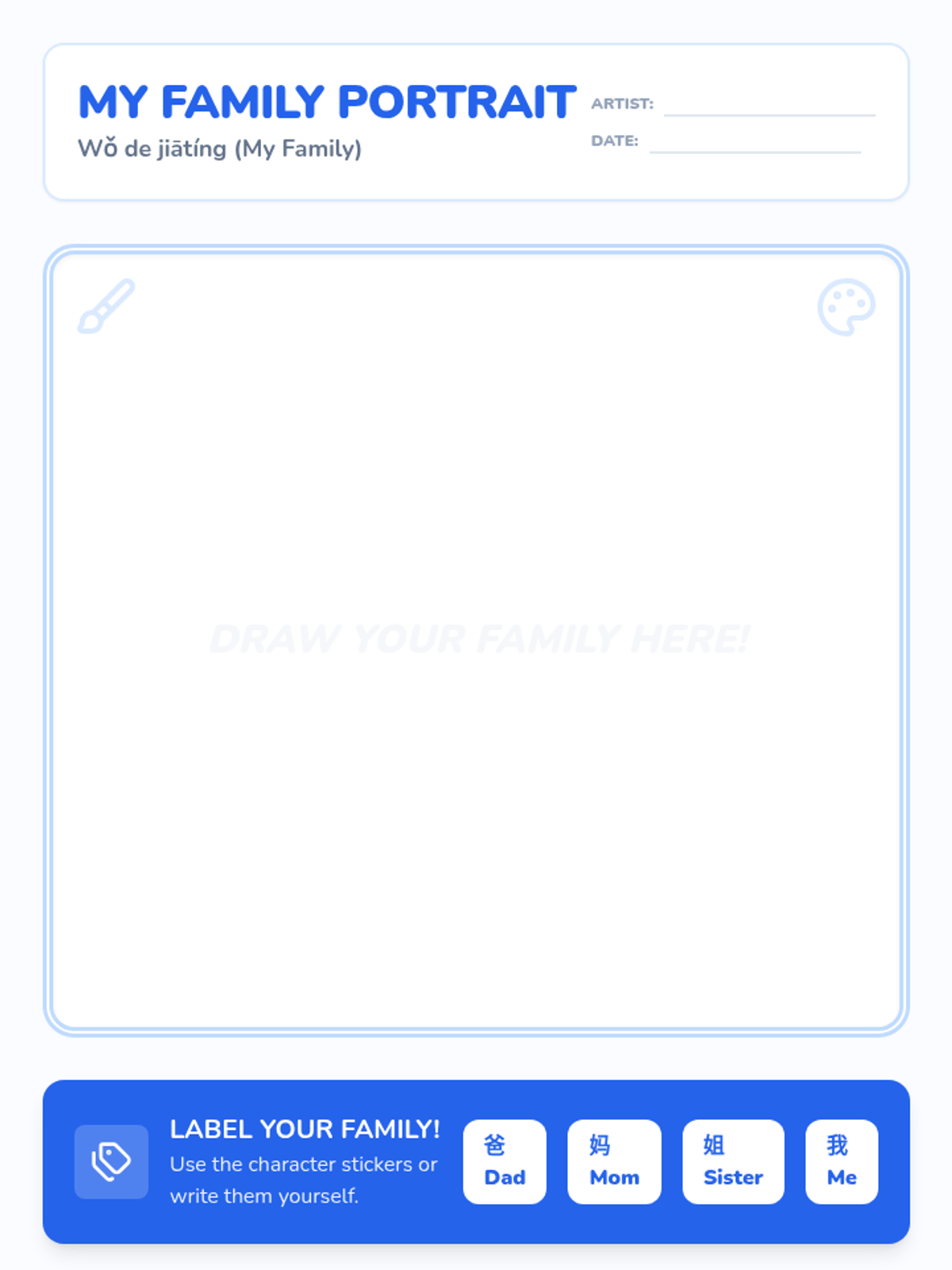 A foundational Mandarin Chinese sequence for Pre-K students focused on identifying family members. Students learn vocabulary for parents, siblings, and grandparents through interactive games, songs, and visual inquiry.