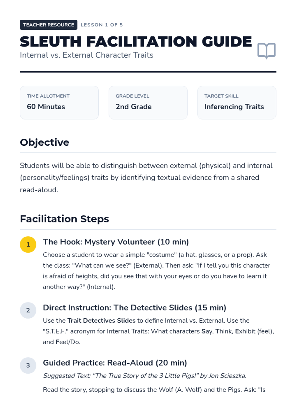 A 2nd Grade ELA unit focusing on character and plot analysis. Students explore internal and external traits, compare character reactions to events, and analyze characters across a series to understand how their differences shape the story.