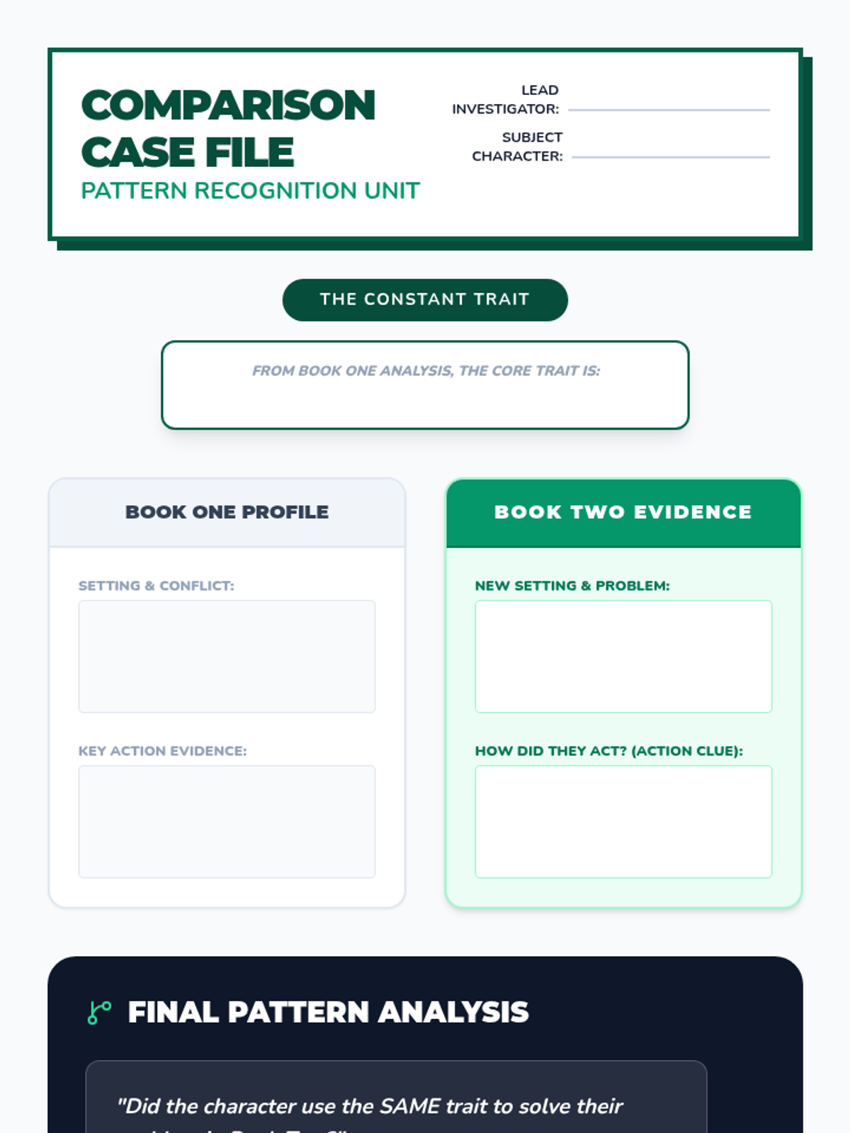 A project-based sequence where 3rd-grade students analyze character traits across a book series, comparing how a protagonist's core personality remains consistent even as settings and conflicts change.