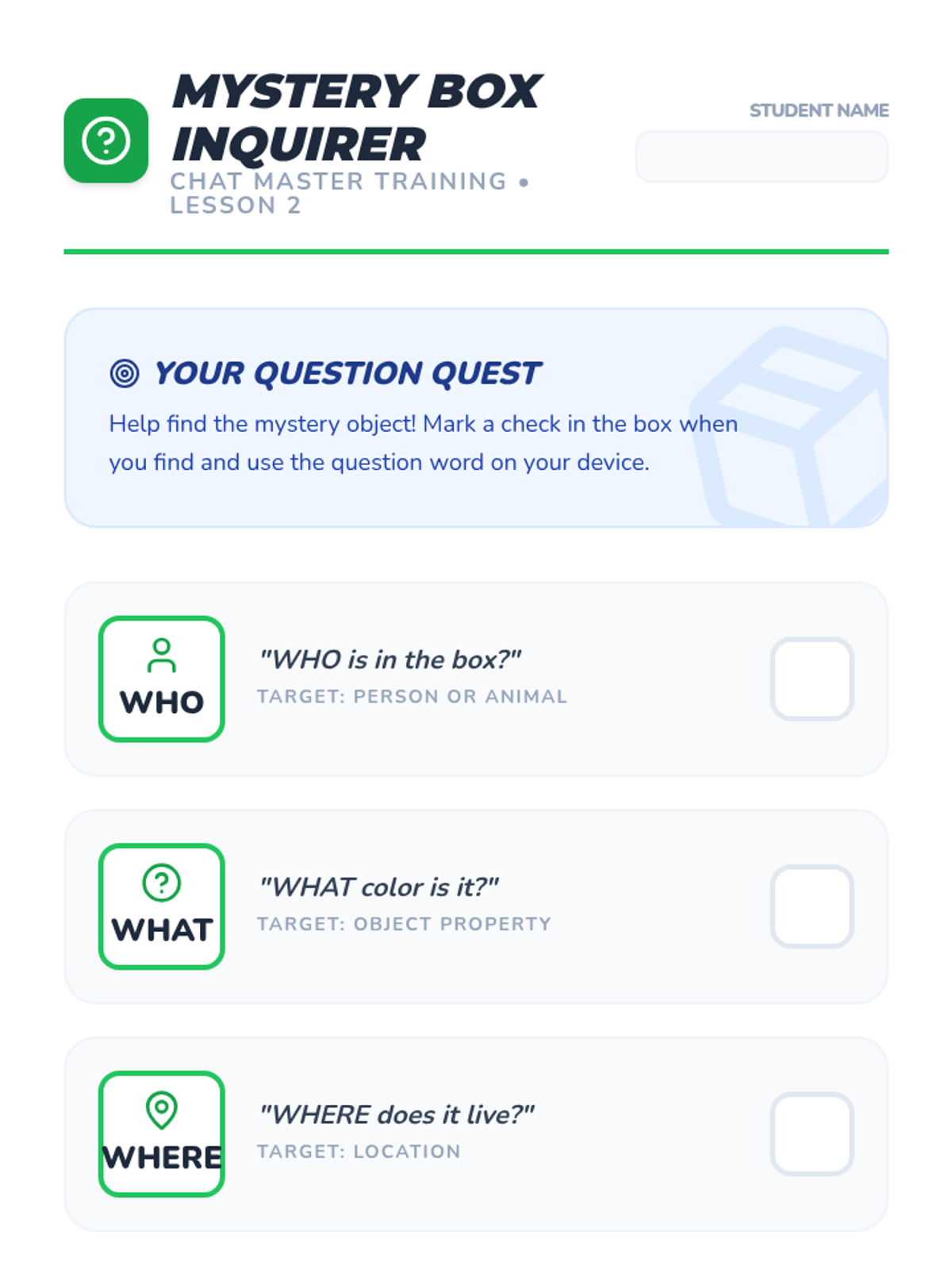 A comprehensive instructional unit focused on the foundational skill of following a multi-step task to completion. This unit provides two distinct tracks: a secret agent-themed track for older students (7-8) and a Danny Go! themed track for Pre-K students, ensuring developmental appropriateness while maintaining high engagement.