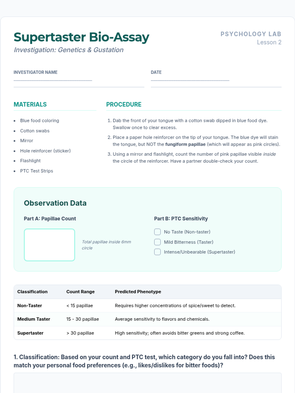 An undergraduate psychology lesson centered on critiquing the Biopsychosocial Model of depression through video analysis and gap identification. Students categorize clinical findings and propose expanded educational content to address systemic and environmental complexities.