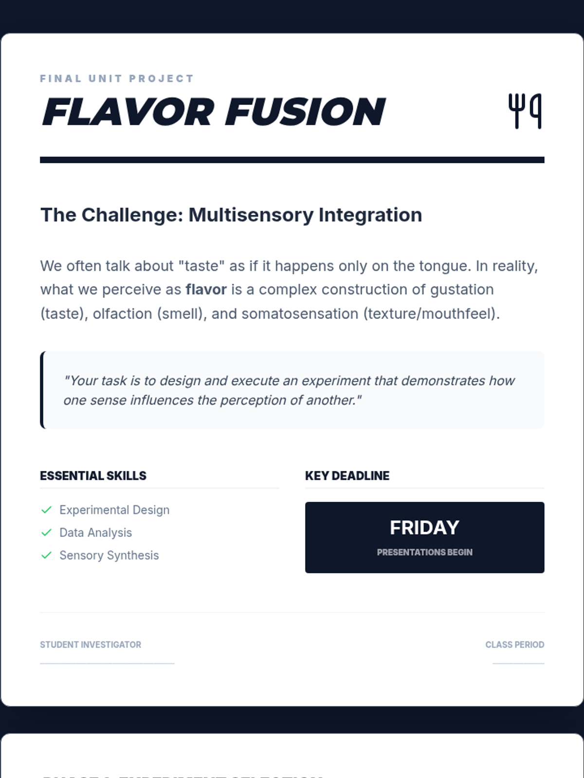 A 12th-grade Psychology unit exploring olfaction, gustation, somatosensation, and the vestibular system, focusing on how these senses interact to shape our perception of reality.