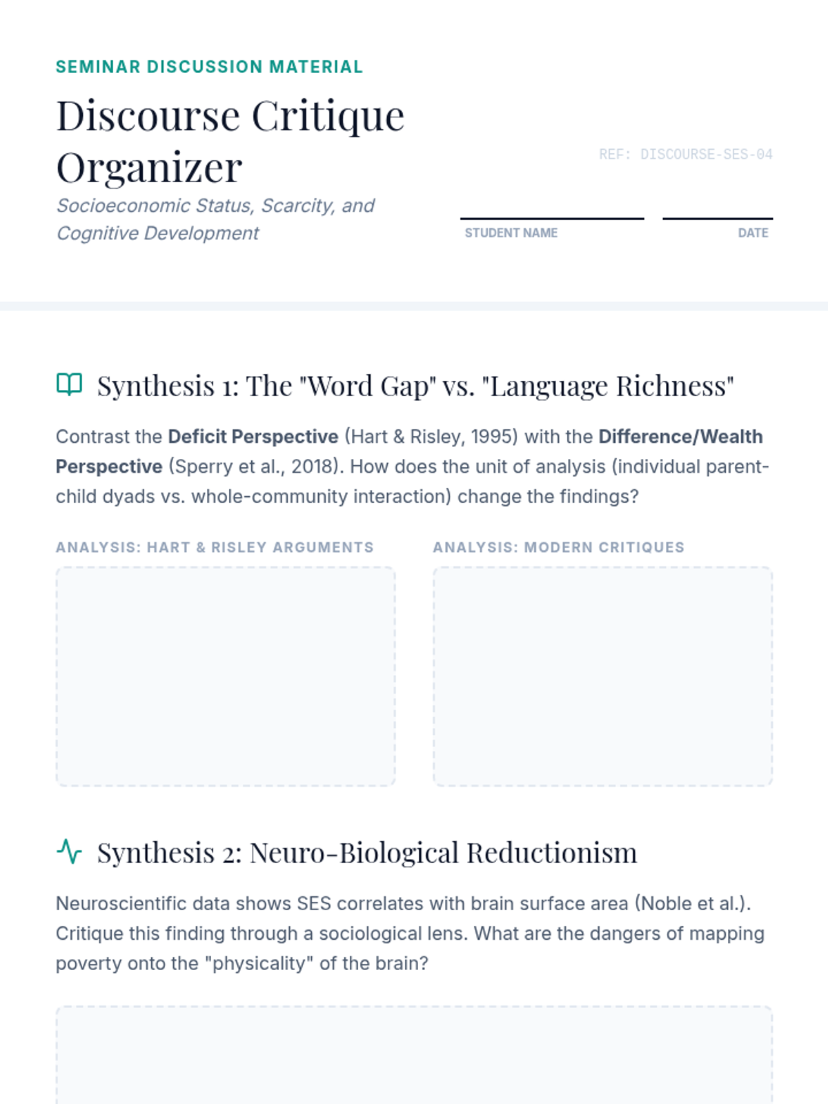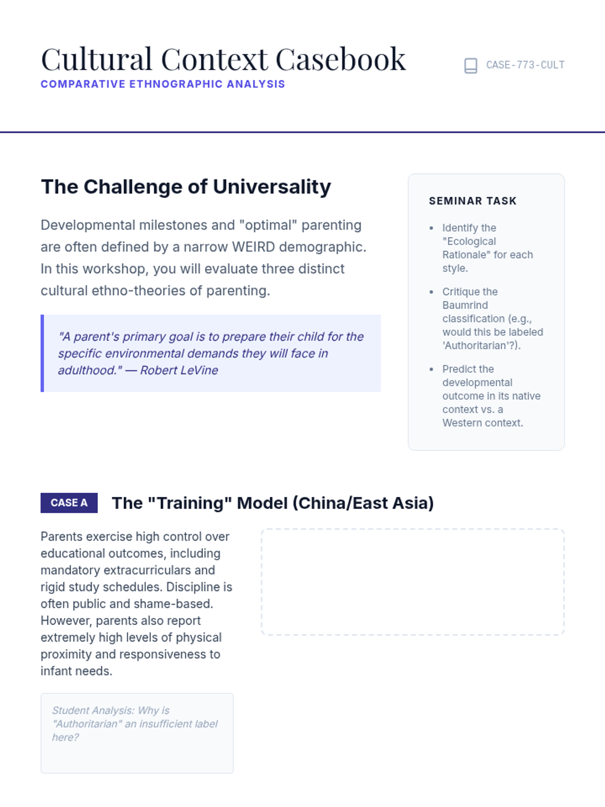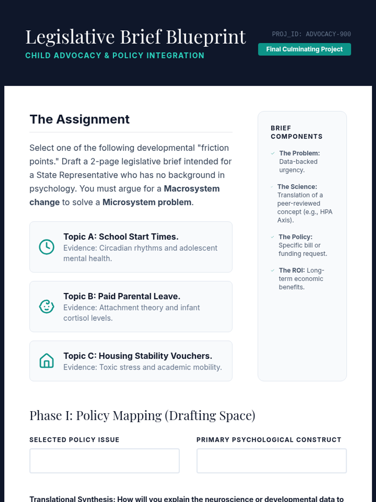This graduate-level sequence examines childhood development through the lens of Bronfenbrenner’s Bioecological Model, focusing on how systemic factors like SES, racism, culture, and policy shape developmental outcomes. Students will analyze neuroscientific data, public health studies, and cultural critiques to move from individual-level observations to systemic advocacy.