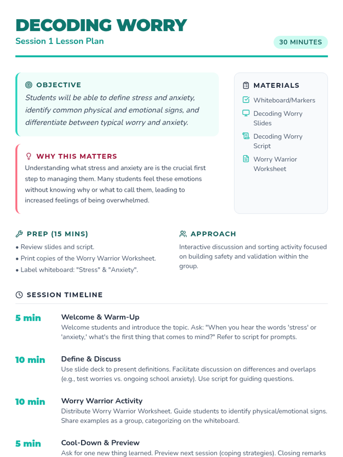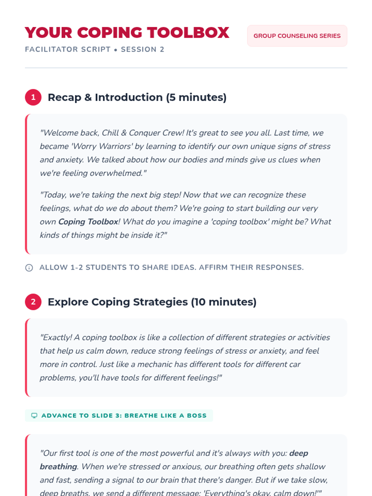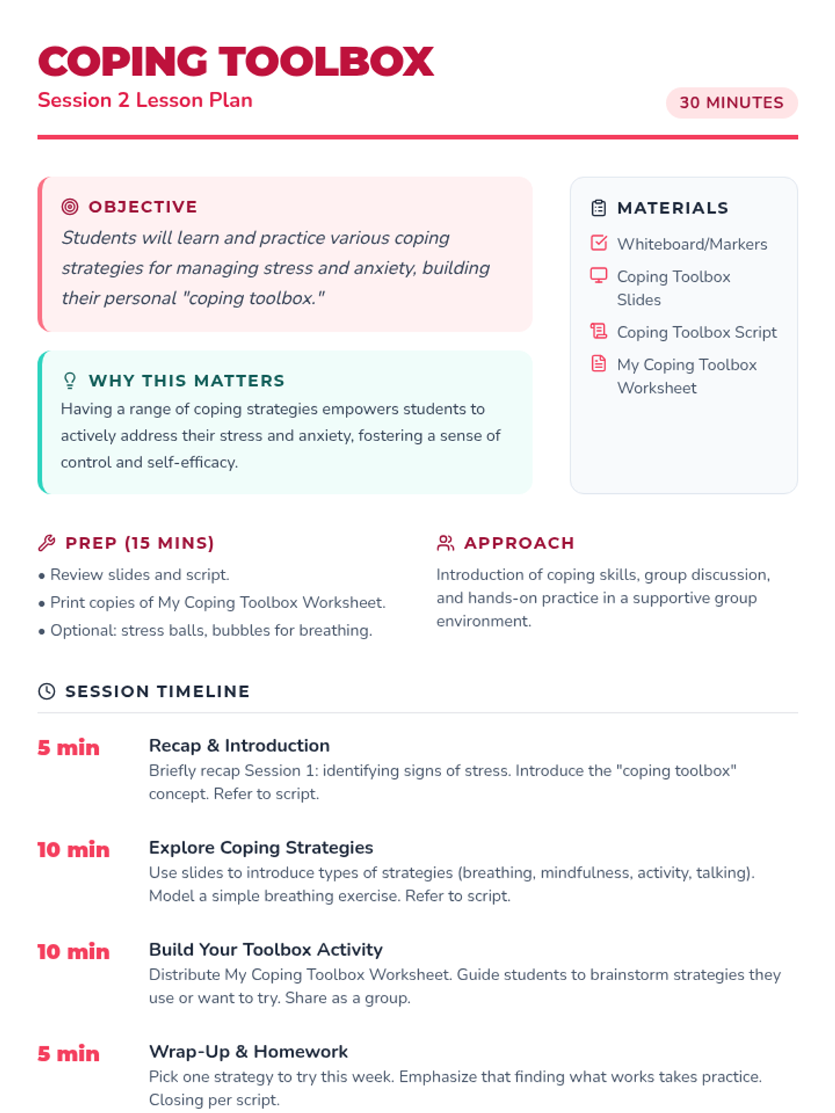 A 4-week small group series for 6th graders focused on identifying frustration triggers and implementing healthy coping strategies for academic, athletic, and home-based stress.