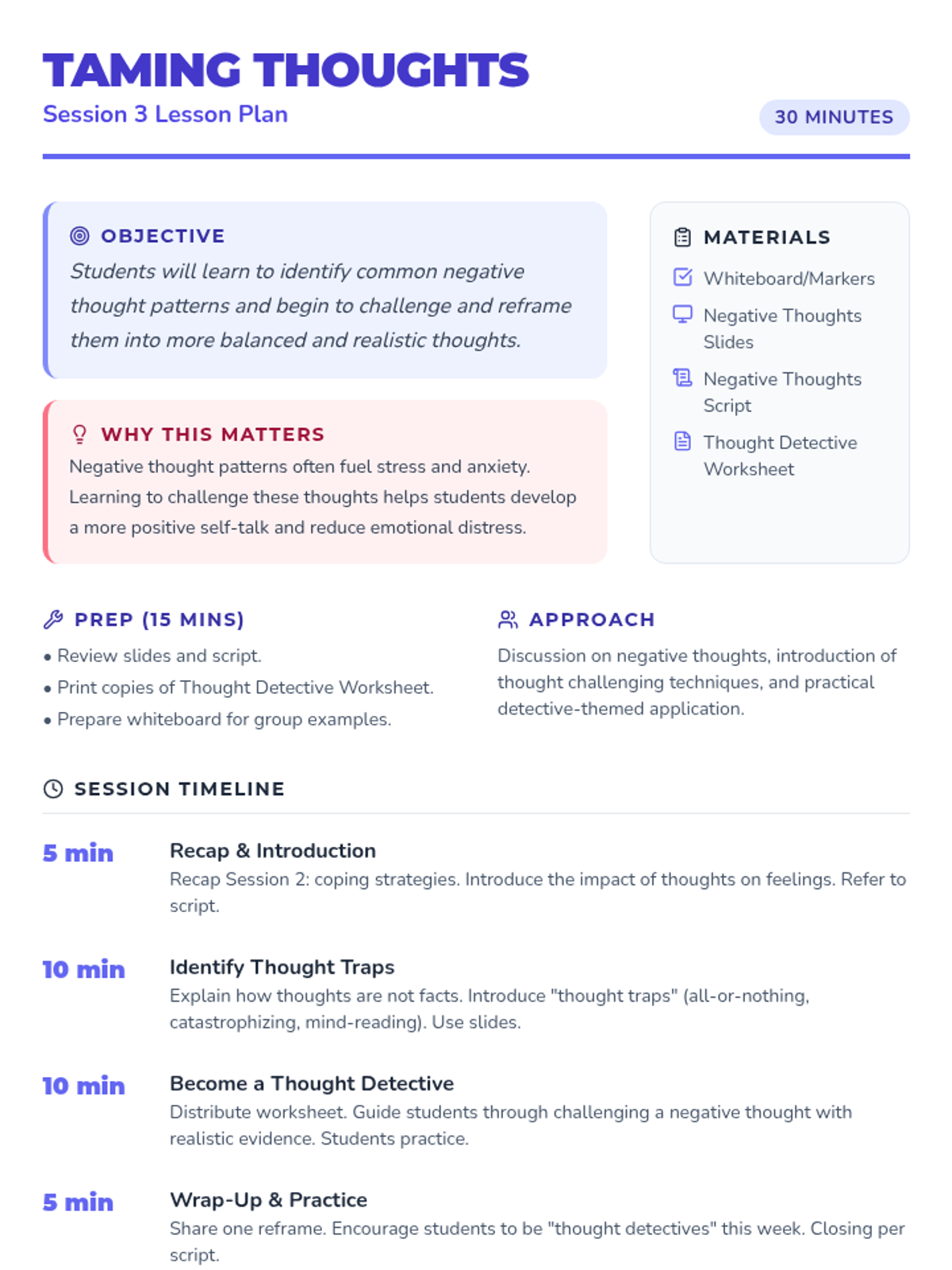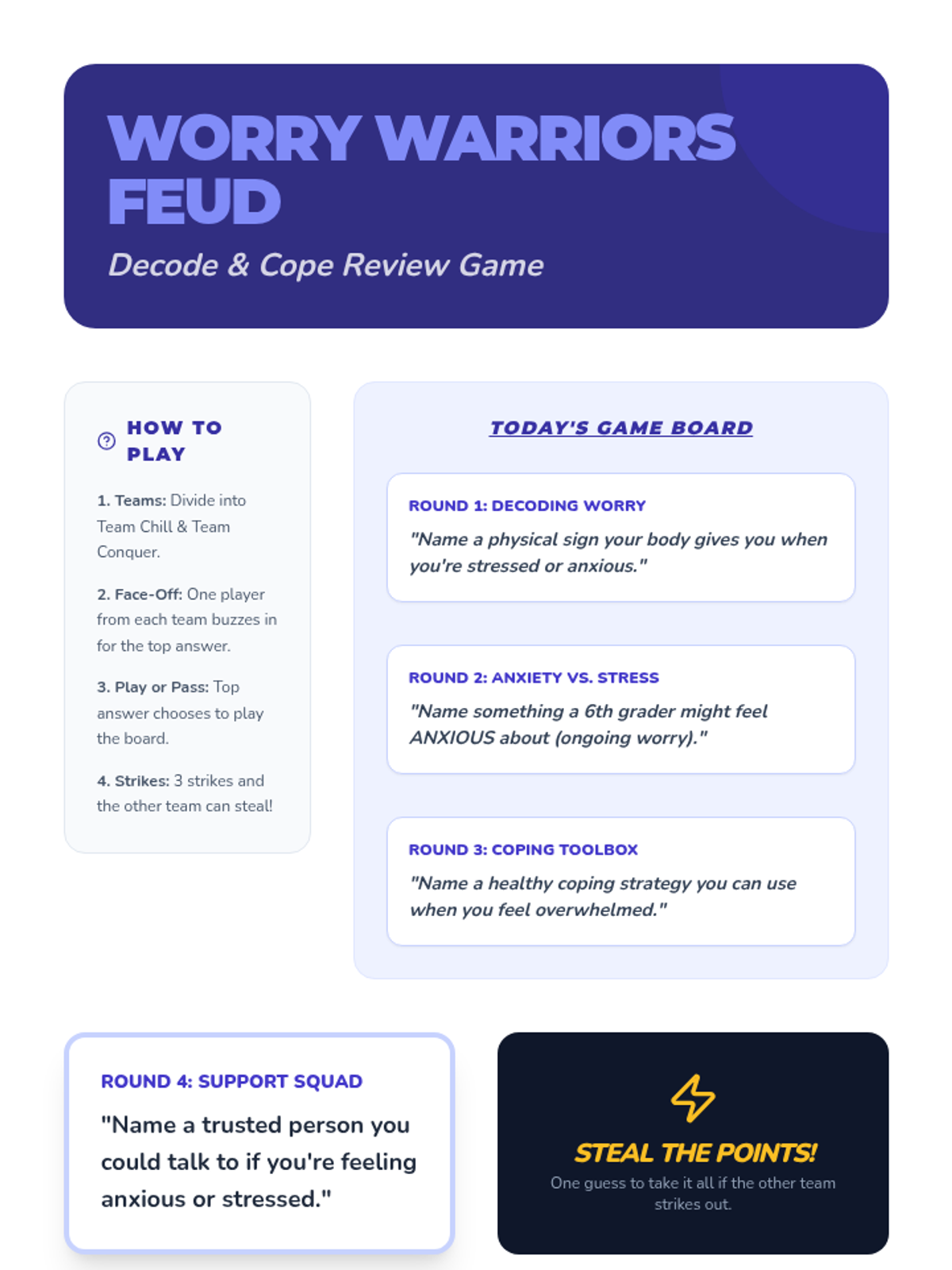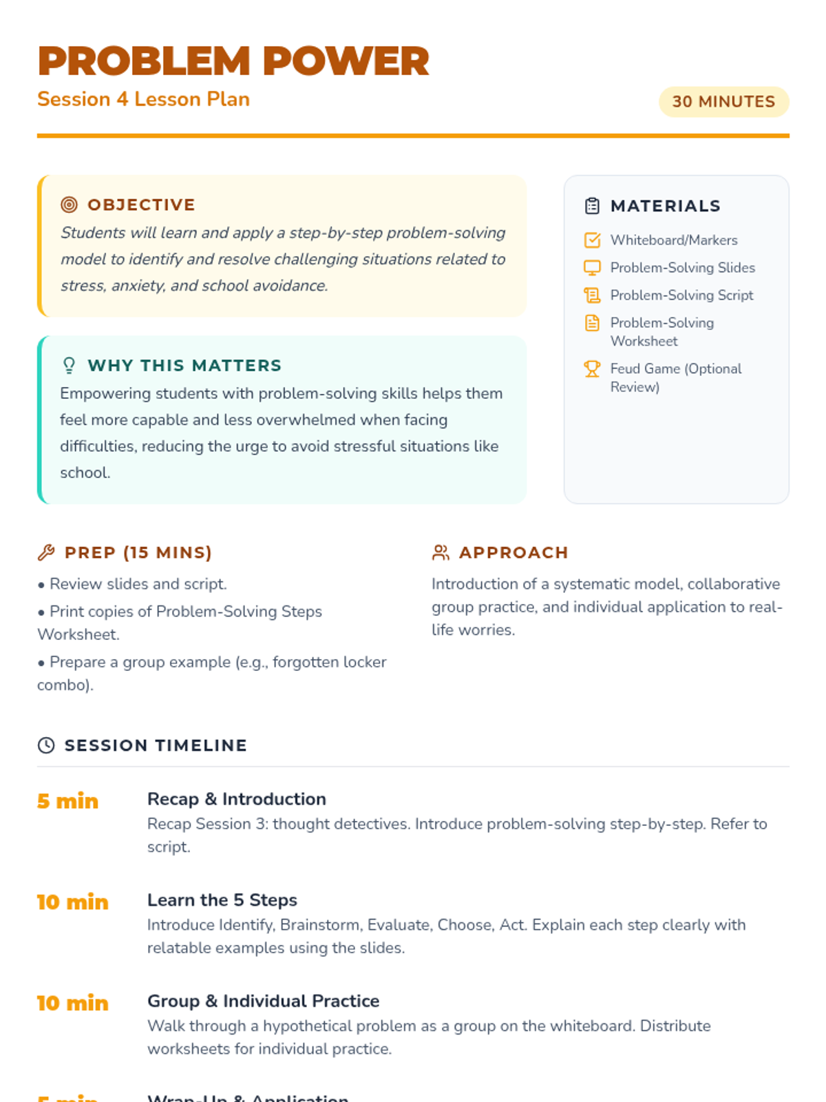 A 4-week small group series for 6th graders focused on identifying frustration triggers and implementing healthy coping strategies for academic, athletic, and home-based stress.