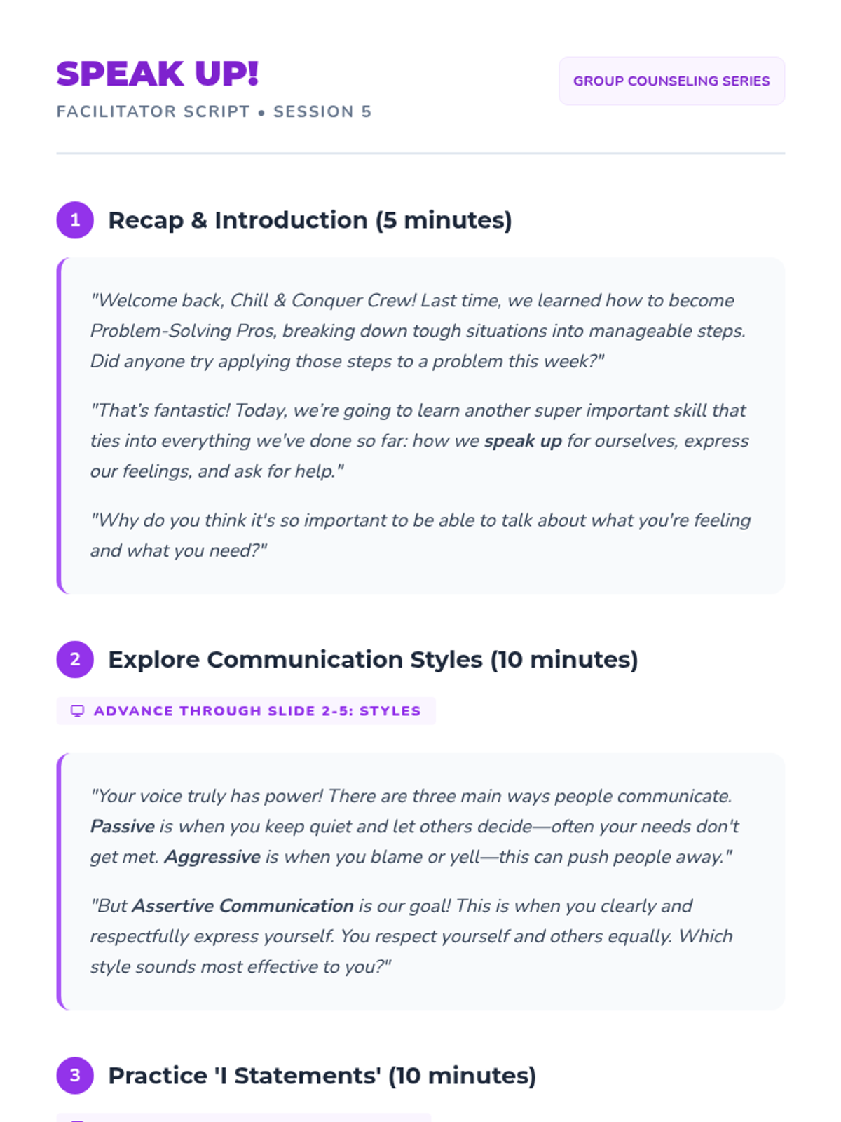 A 12-week sophisticated intervention for middle schoolers (ages 10-13) to master impulse control, emotional intelligence, and interpersonal trust using a behavioral analysis framework.