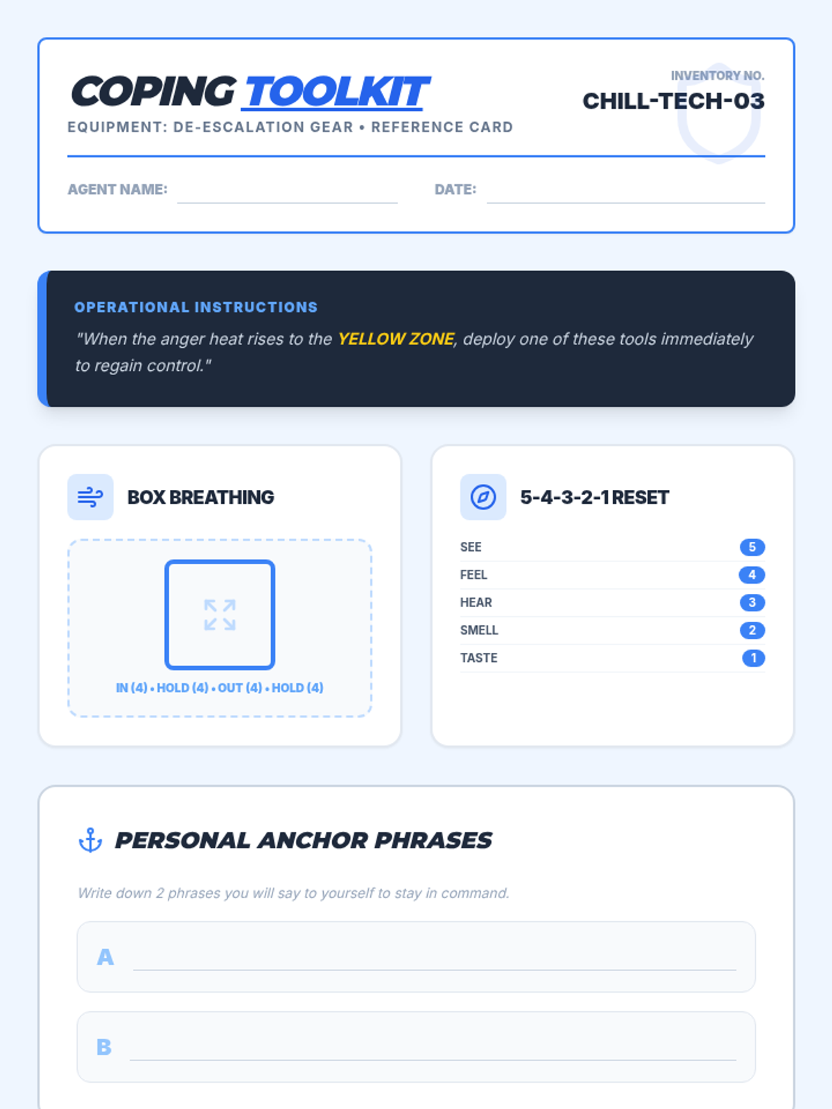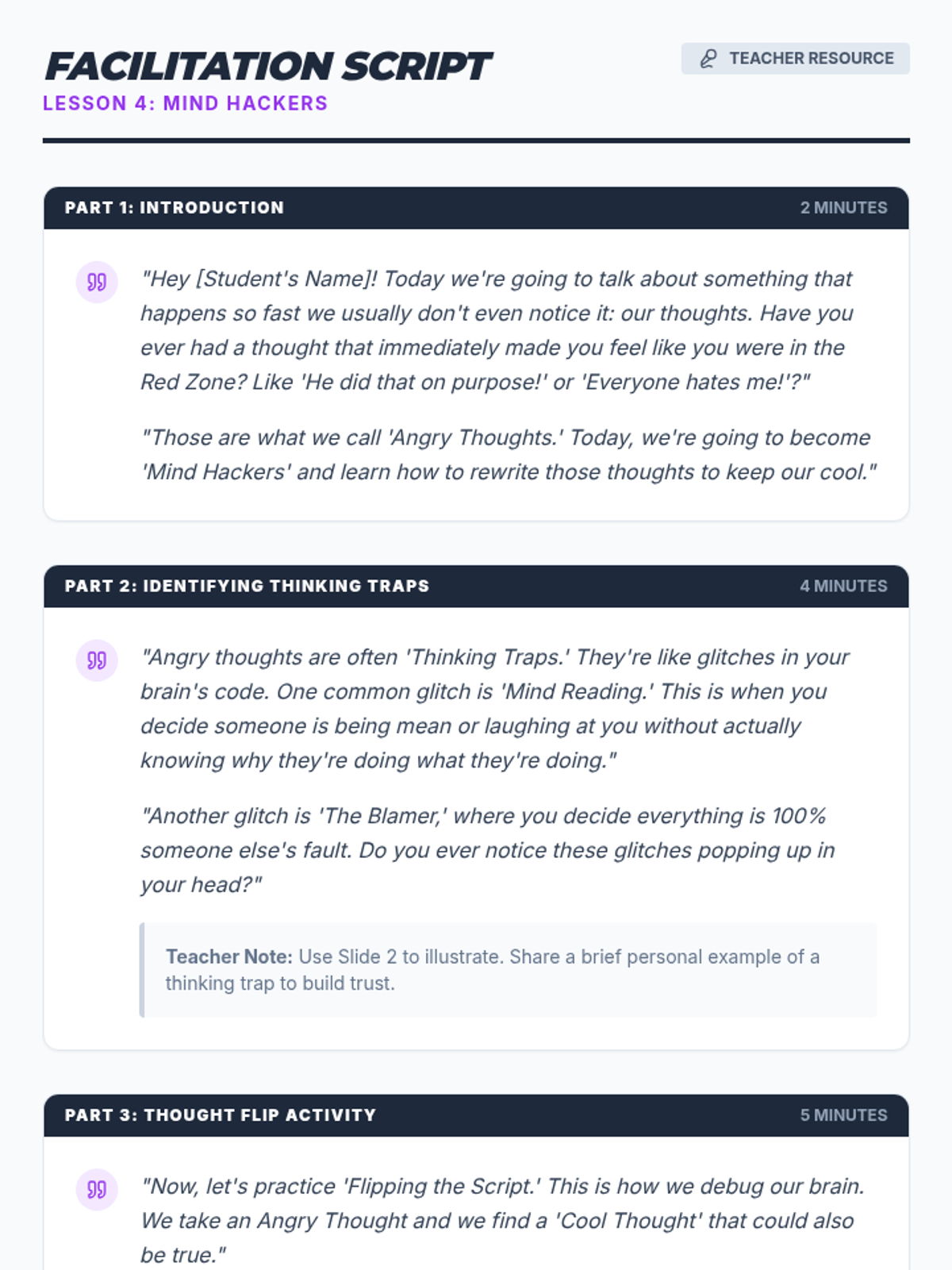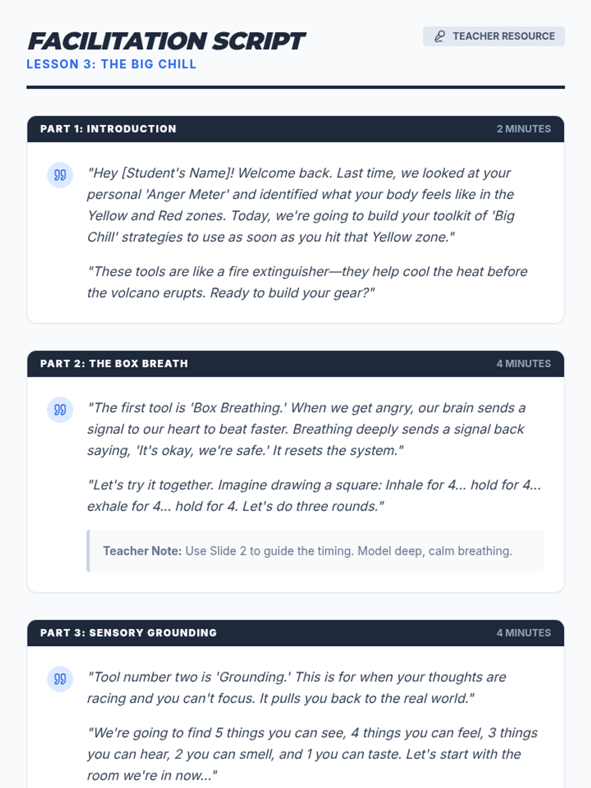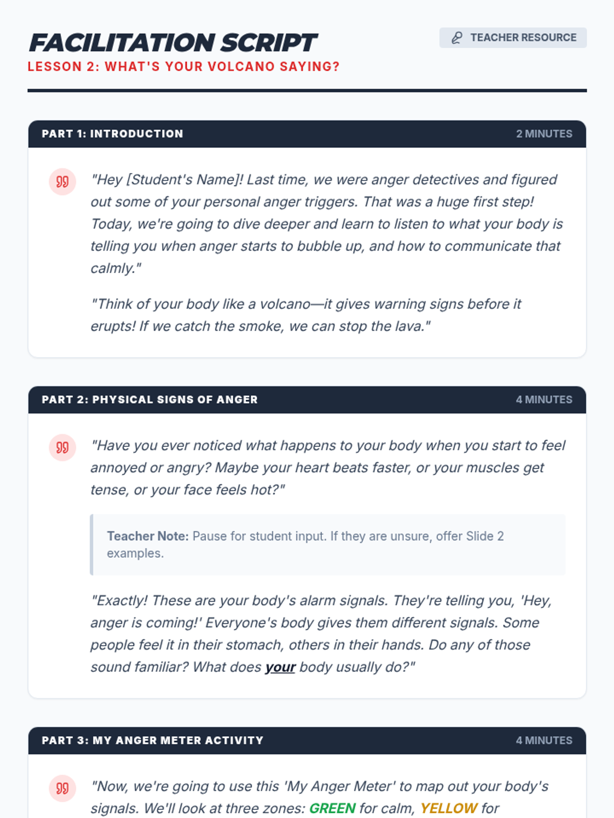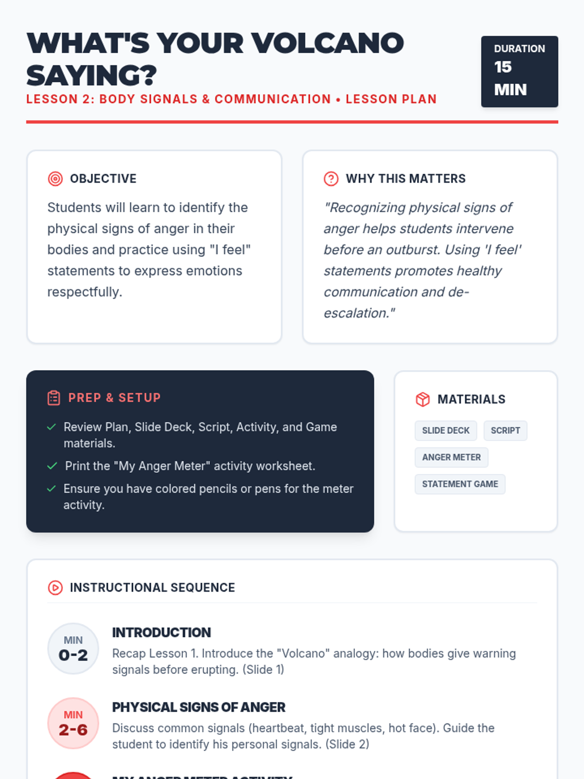 A comprehensive 6-session Tier 3 intervention for 6th-grade students to master anger management. The program covers trigger identification, physical awareness, communication skills, and practical coping strategies through engaging, individualized activities.