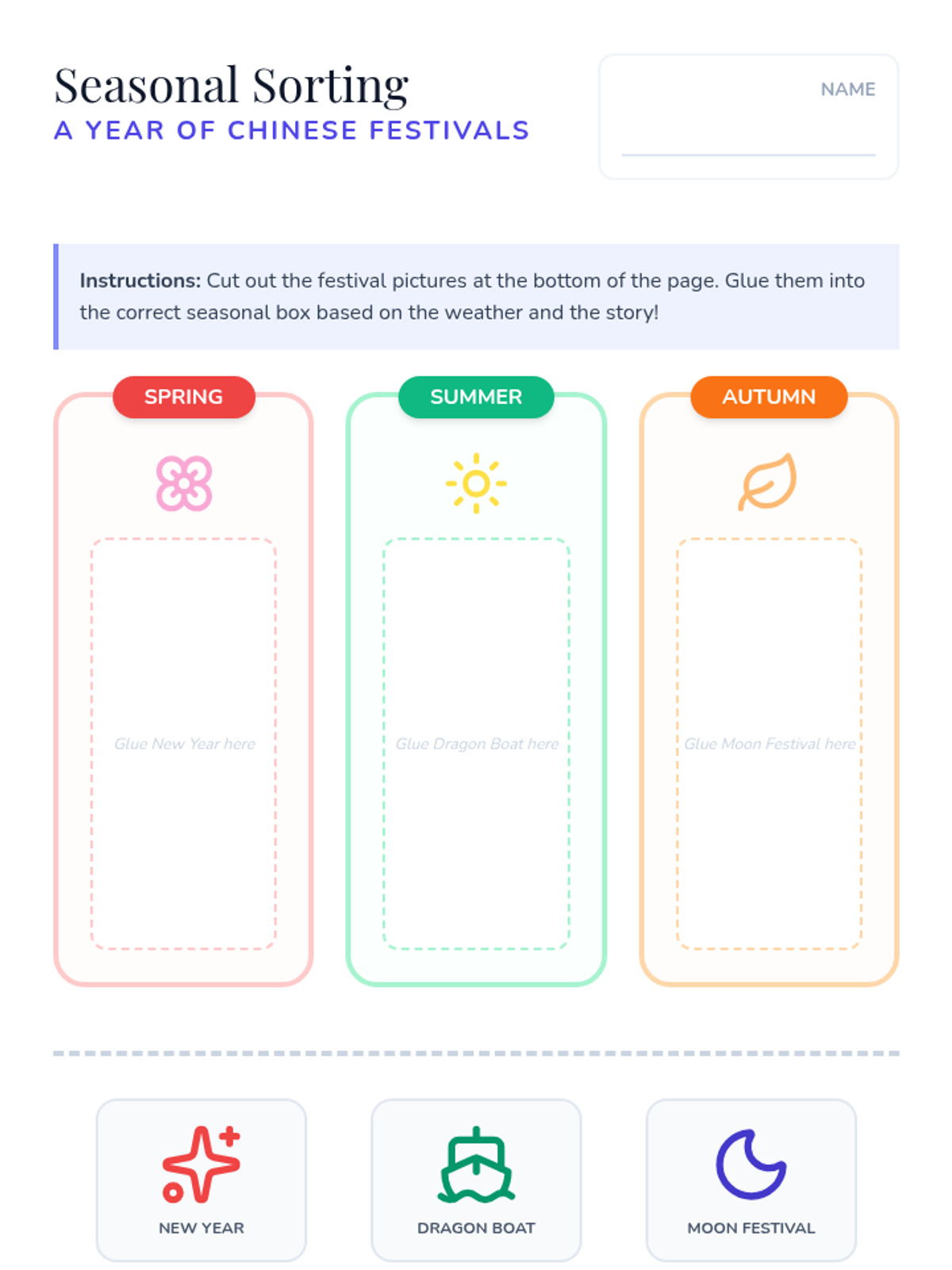 This Kindergarten sequence explores major Chinese seasonal festivals beyond the New Year, focusing on the Mid-Autumn and Dragon Boat Festivals. Students engage with mythology, sensory play, and rhythmic activities to understand how stories connect culture to nature and the seasons.