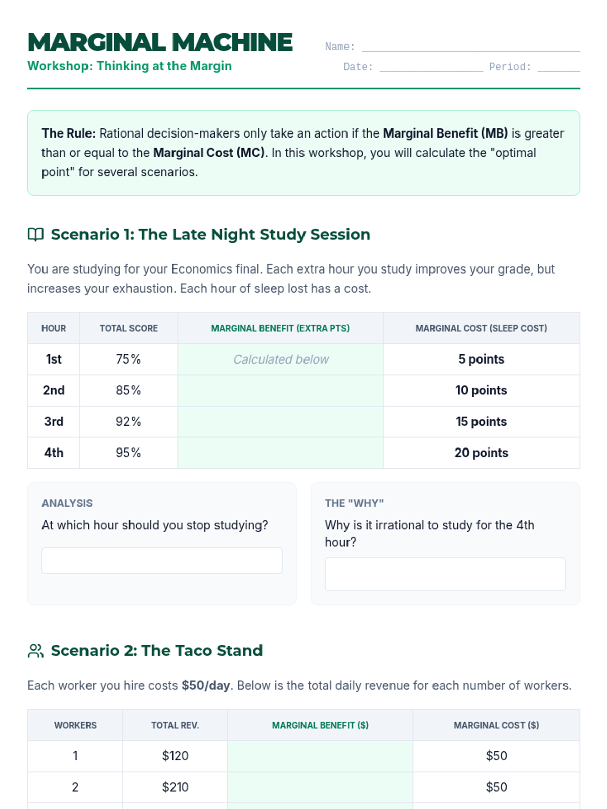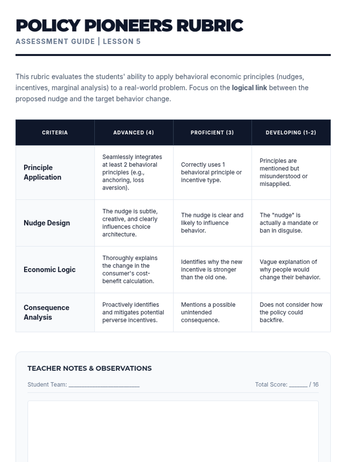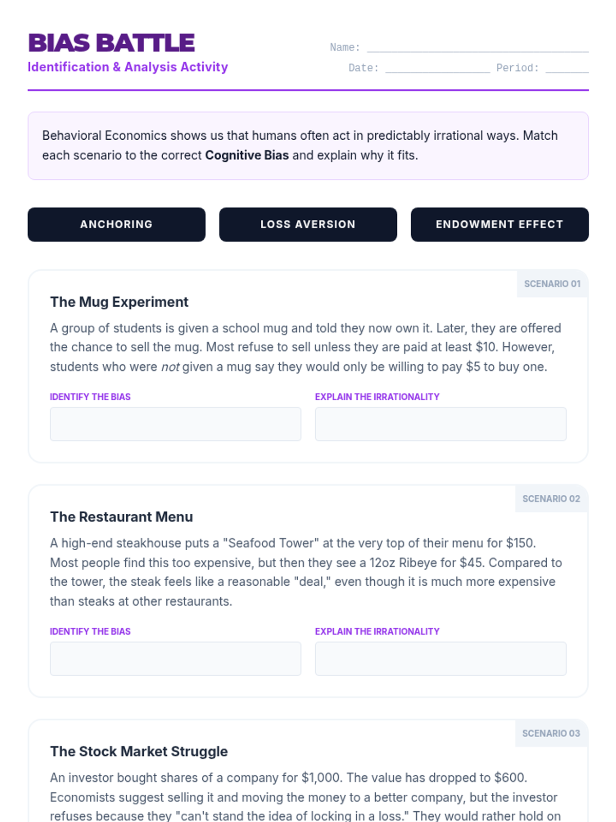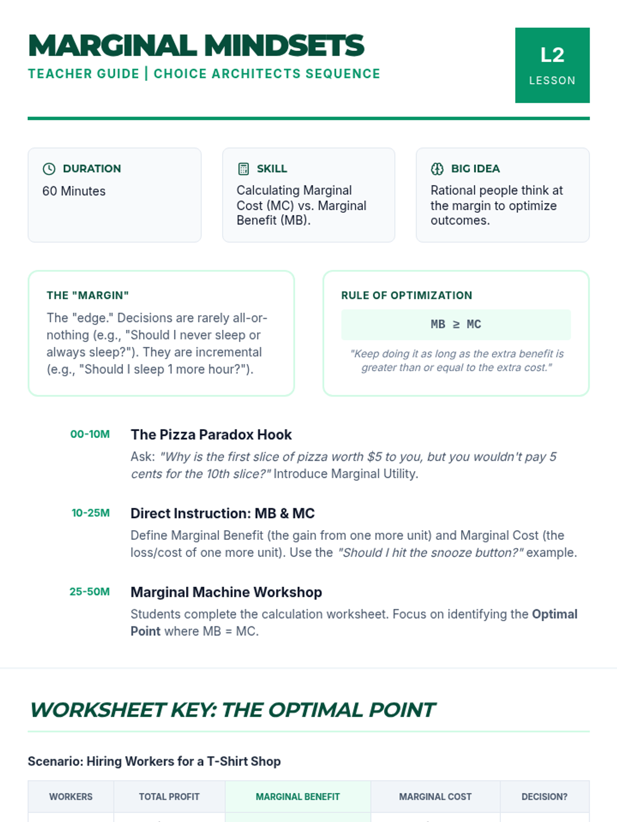 A high school economics sequence exploring how incentives, marginal analysis, and psychological factors drive human behavior, transitioning from classical rational models to modern behavioral insights.