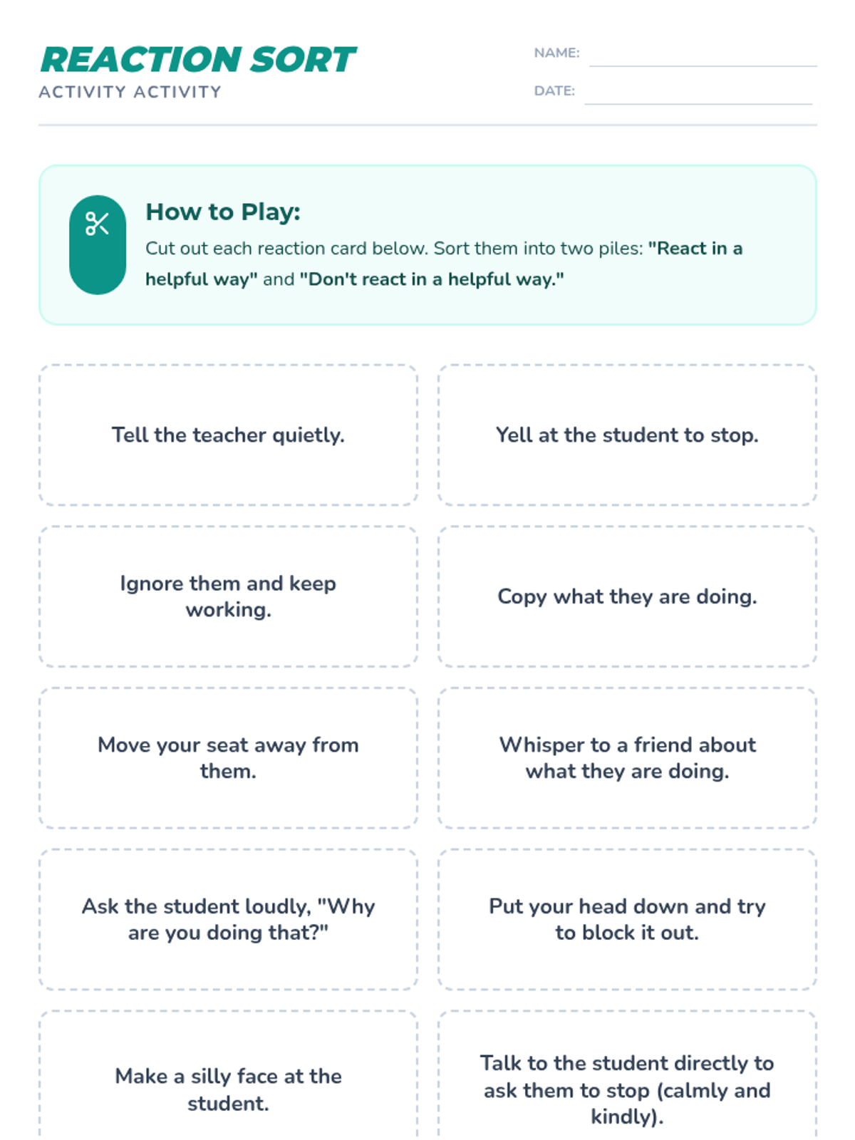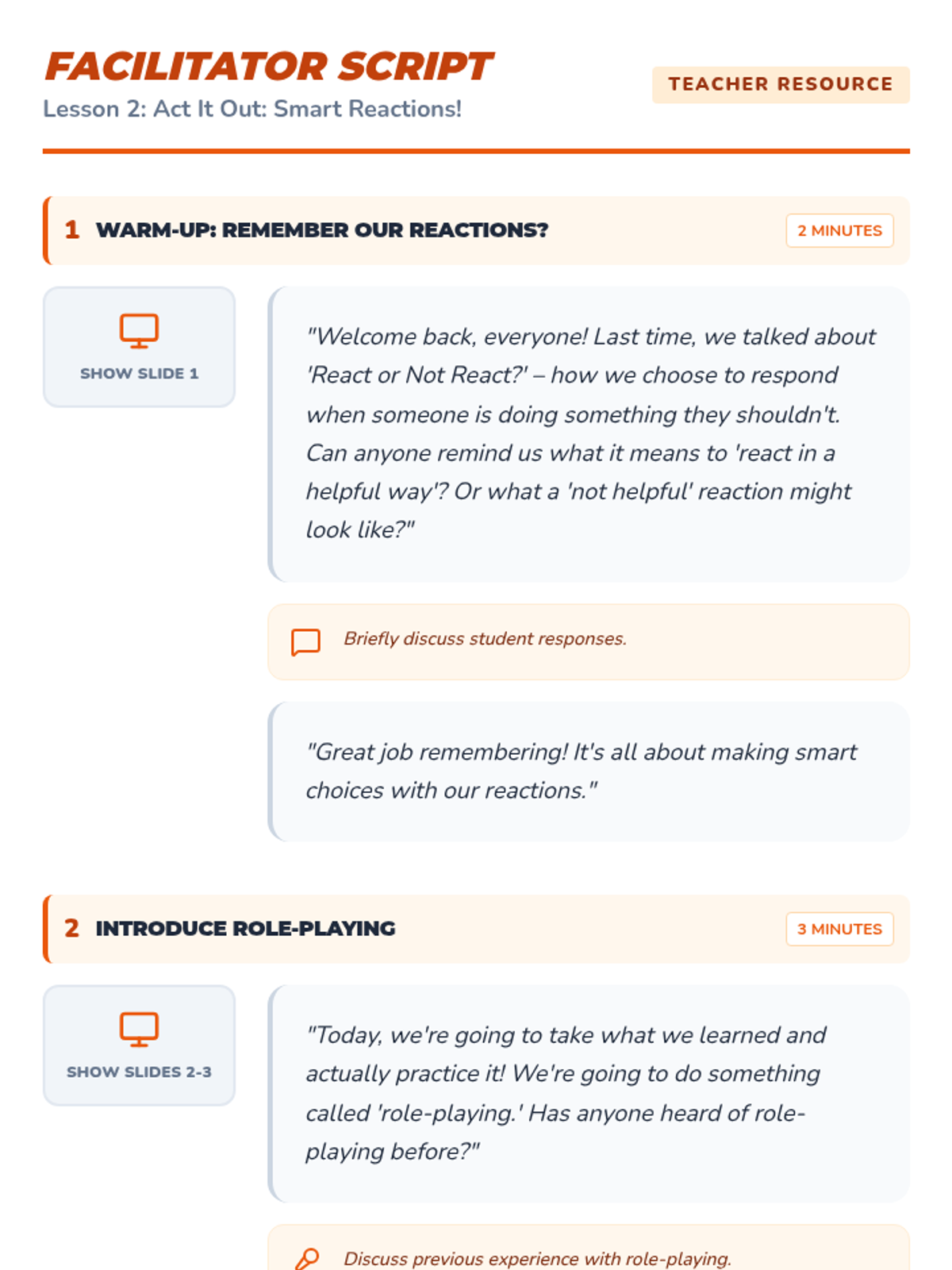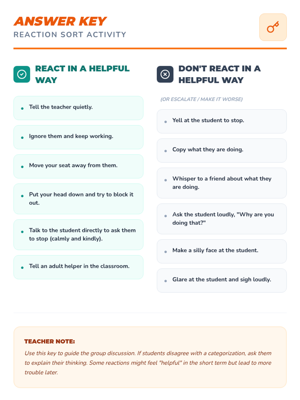 A two-part Tier 2 intervention sequence for 3rd graders focused on emotional regulation and social skills, specifically choosing helpful reactions to peer misbehavior.