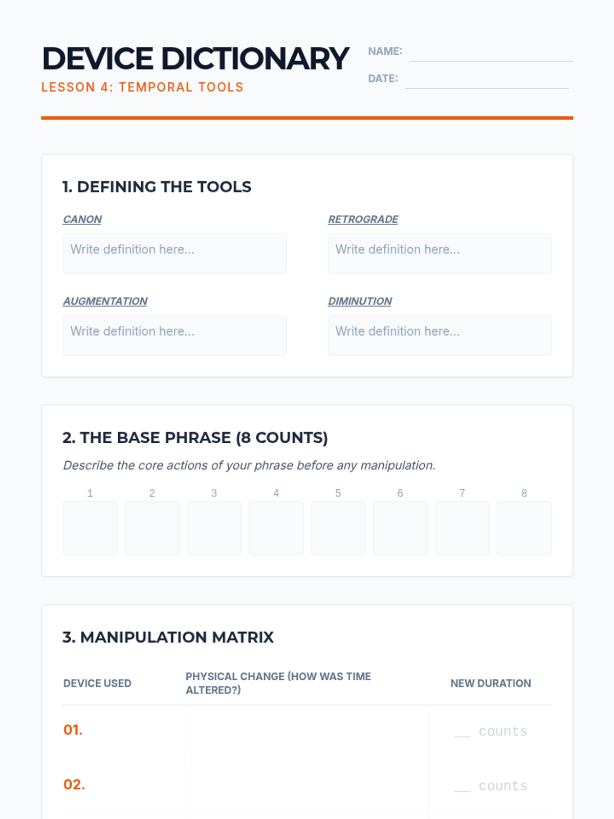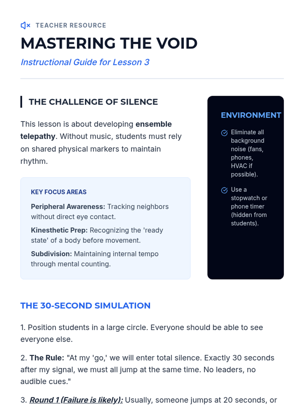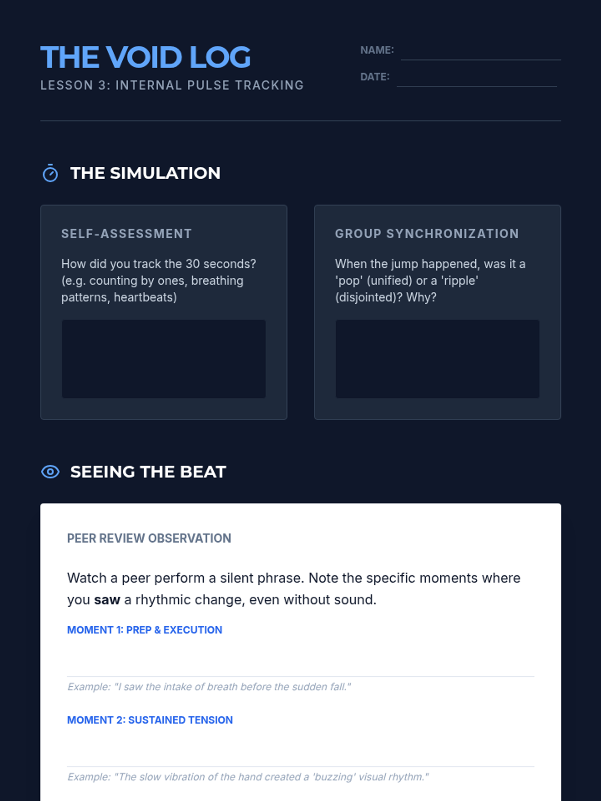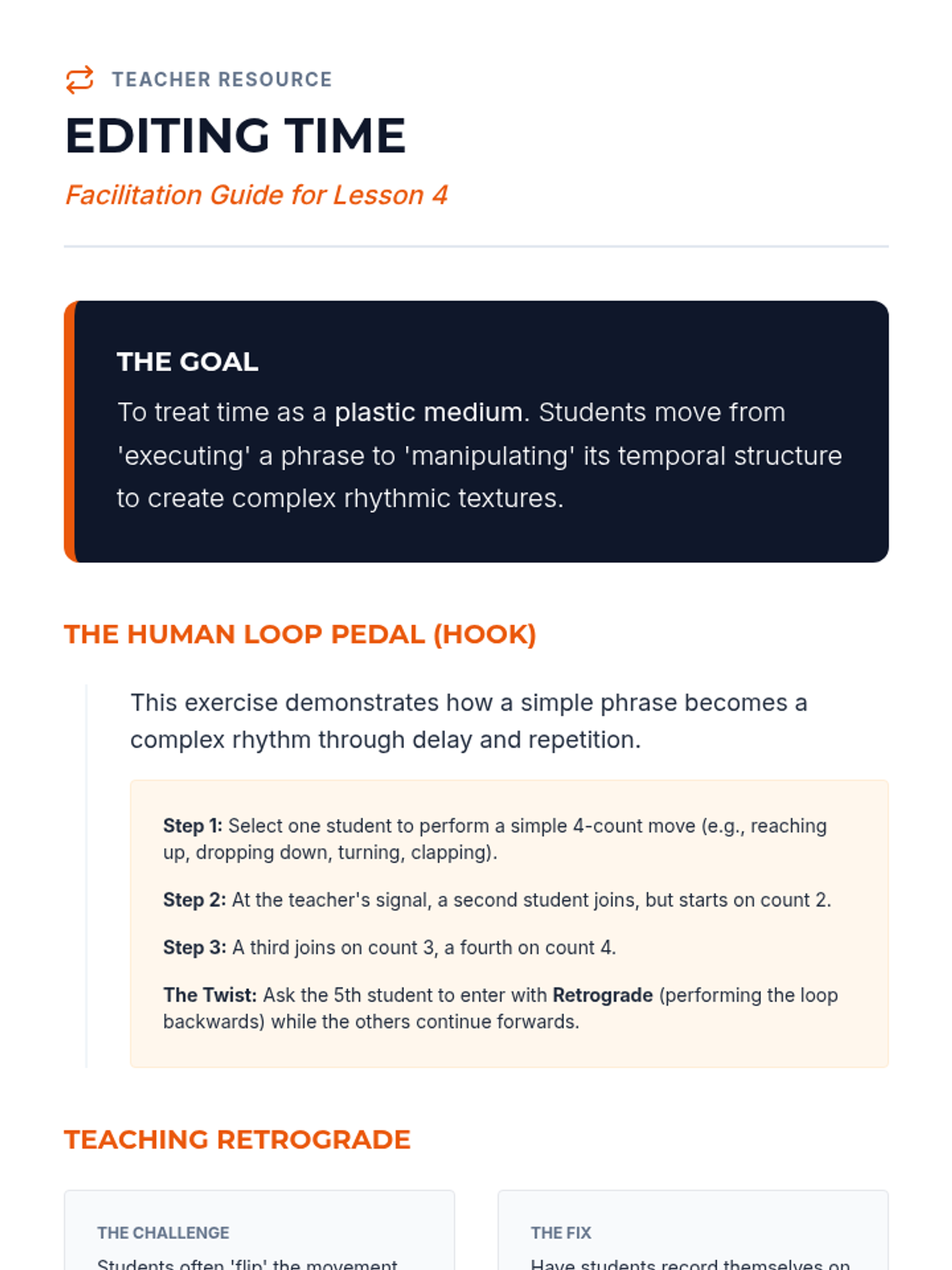 This sequence explores rhythm as a primary tool for choreography, moving from literal synchronization to complex counterpoint, silence, and temporal manipulation. Undergraduate students will develop the ability to justify rhythmic choices through composition and performance.