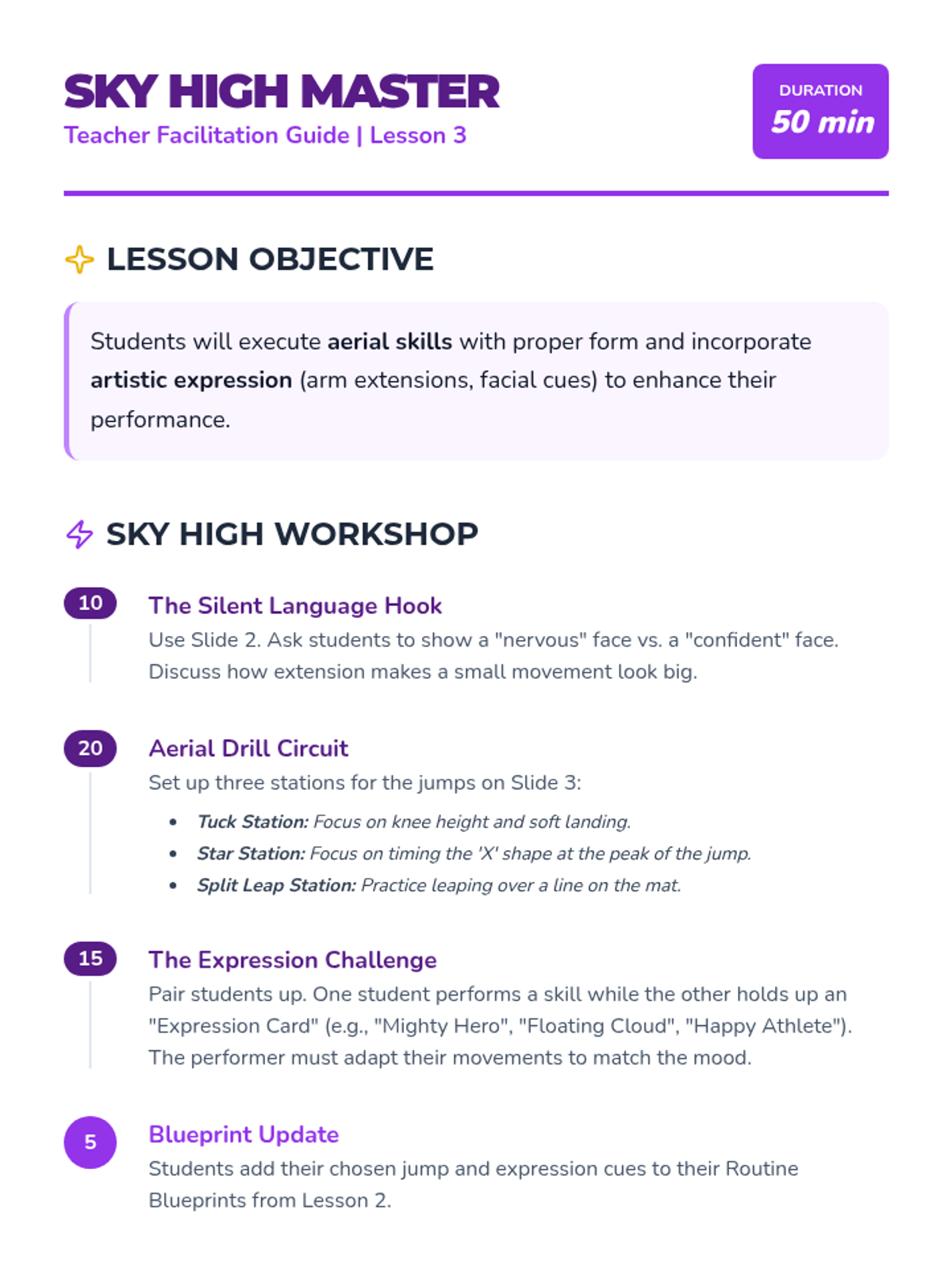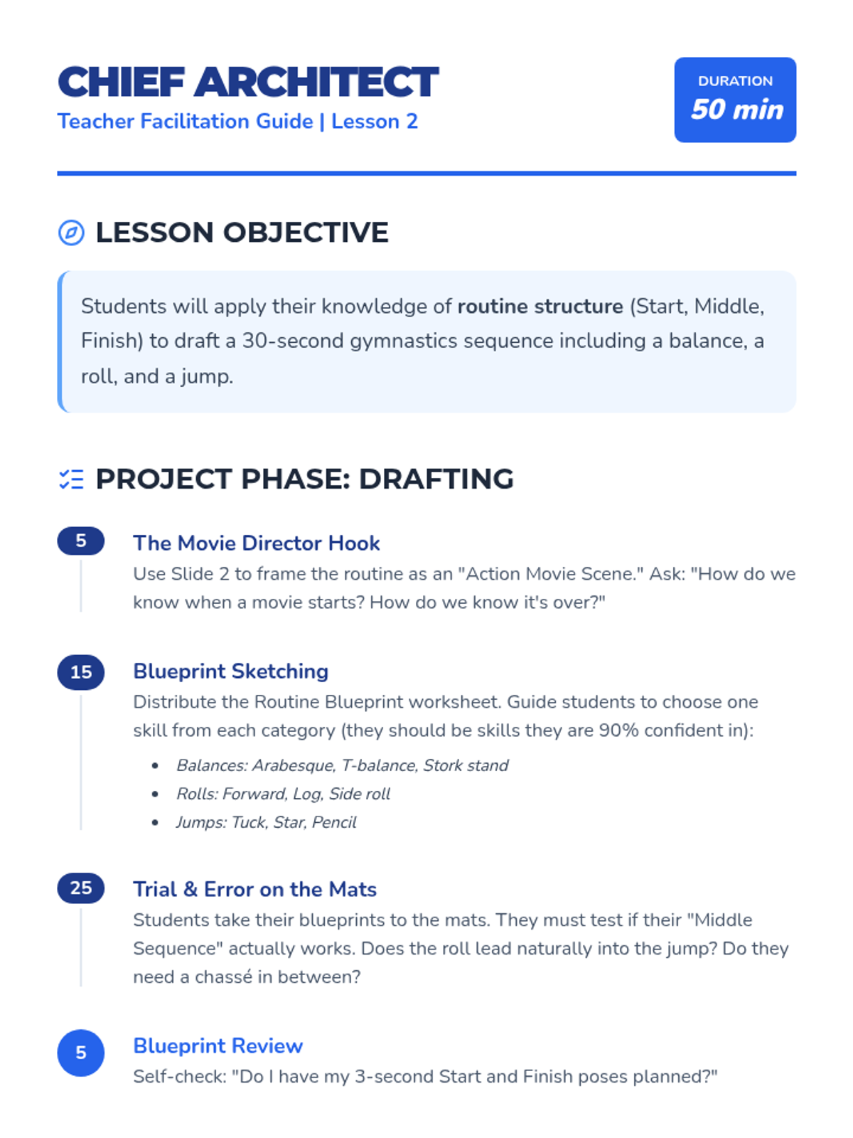 A project-based unit where 3rd-grade students learn to link isolated gymnastics skills into cohesive, fluid routines. Students focus on transitions, composition, and artistic expression, culminating in a final showcase performance.