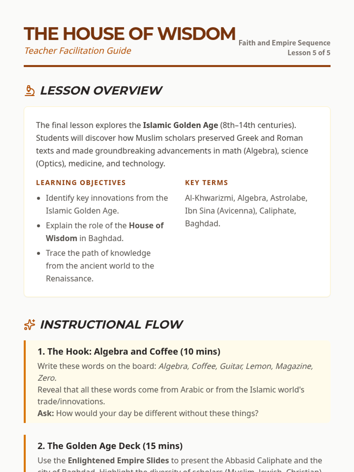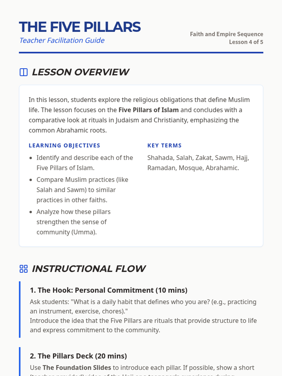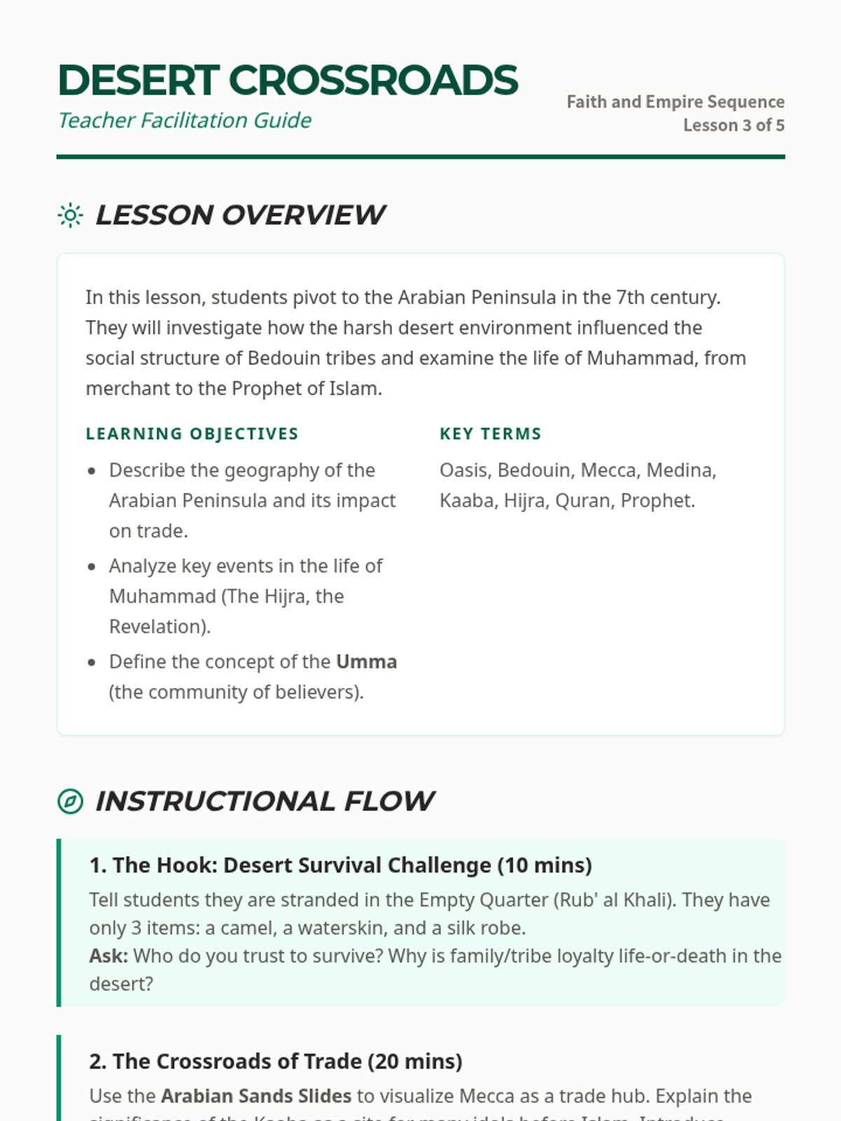 This sequence examines the emergence and expansion of Christianity and Islam, highlighting their roots in the Abrahamic tradition and the role of empire and trade in their diffusion.