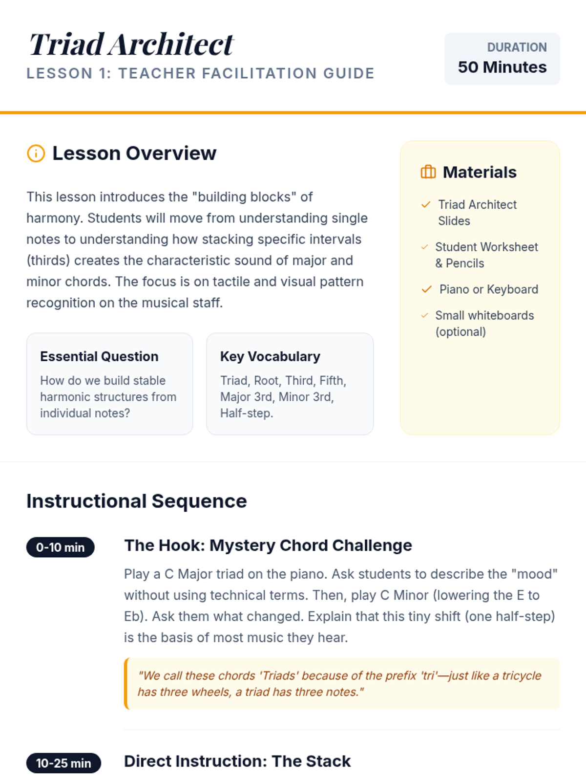 This sequence transitions students from linear melody to vertical harmony, exploring how chords are constructed and sequenced. Students analyze harmonic structures from basic intervals to full progressions in popular music.