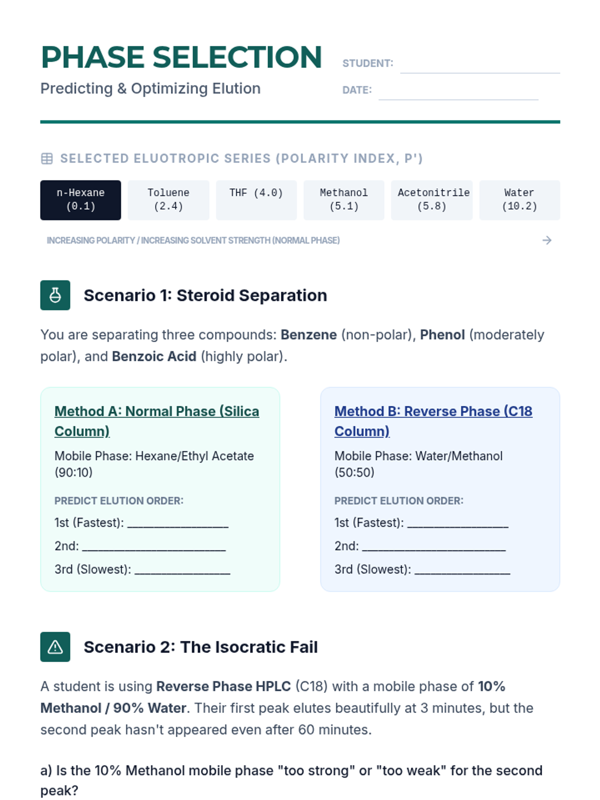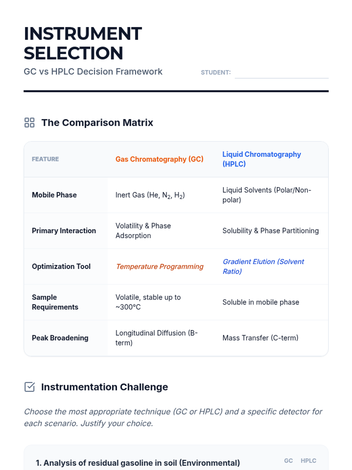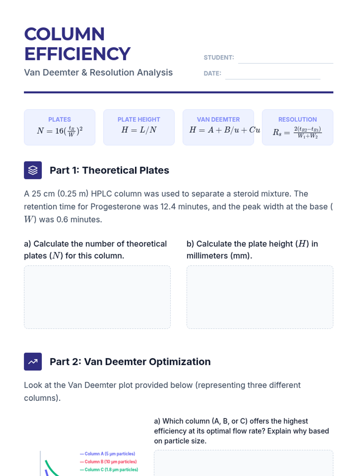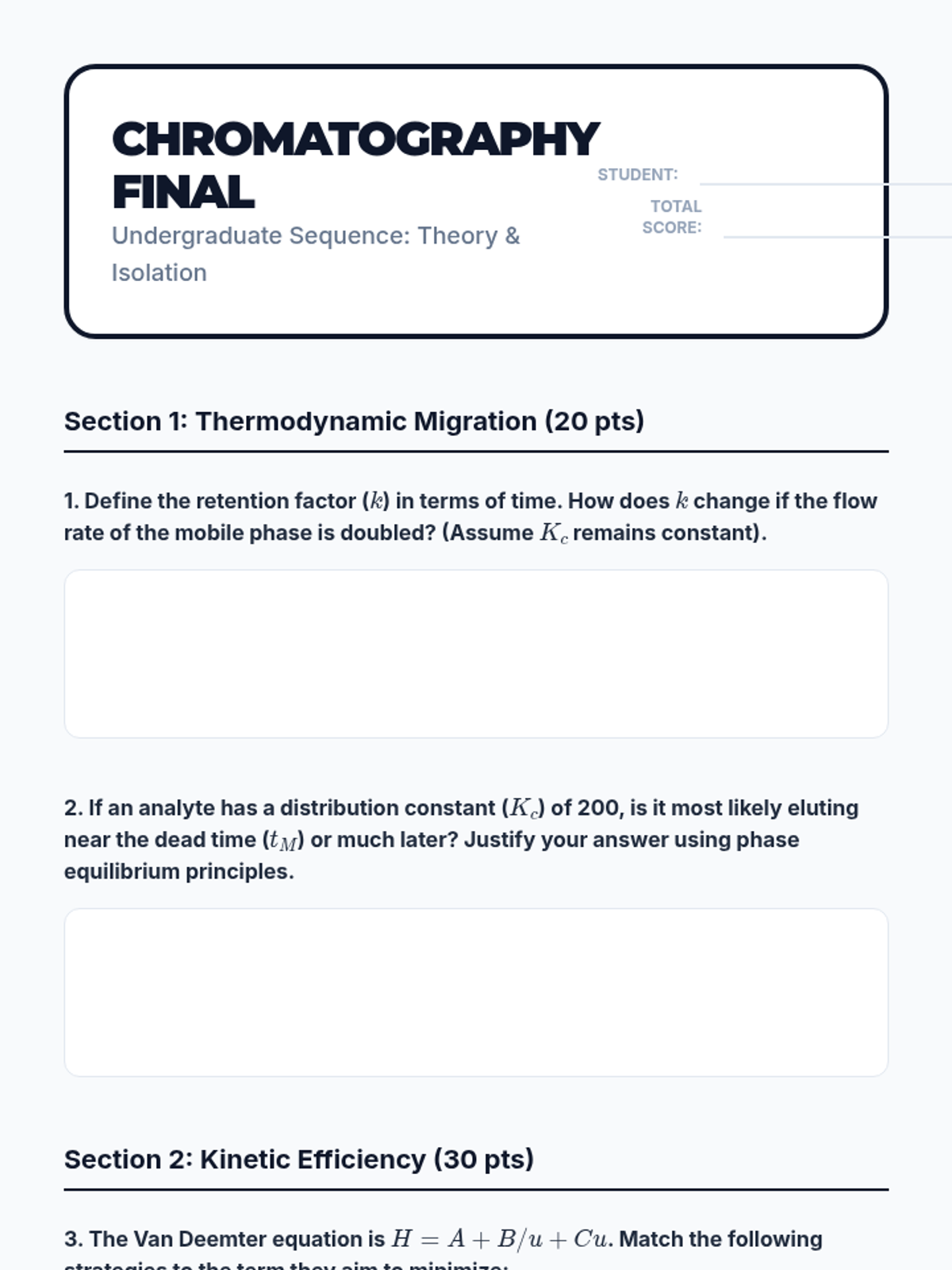 A comprehensive undergraduate sequence on the physicochemical principles of chromatography, covering thermodynamic migration theory, kinetic efficiency (Van Deemter), phase optimization, instrumentation (GC/HPLC), and quantitative analytical methods.