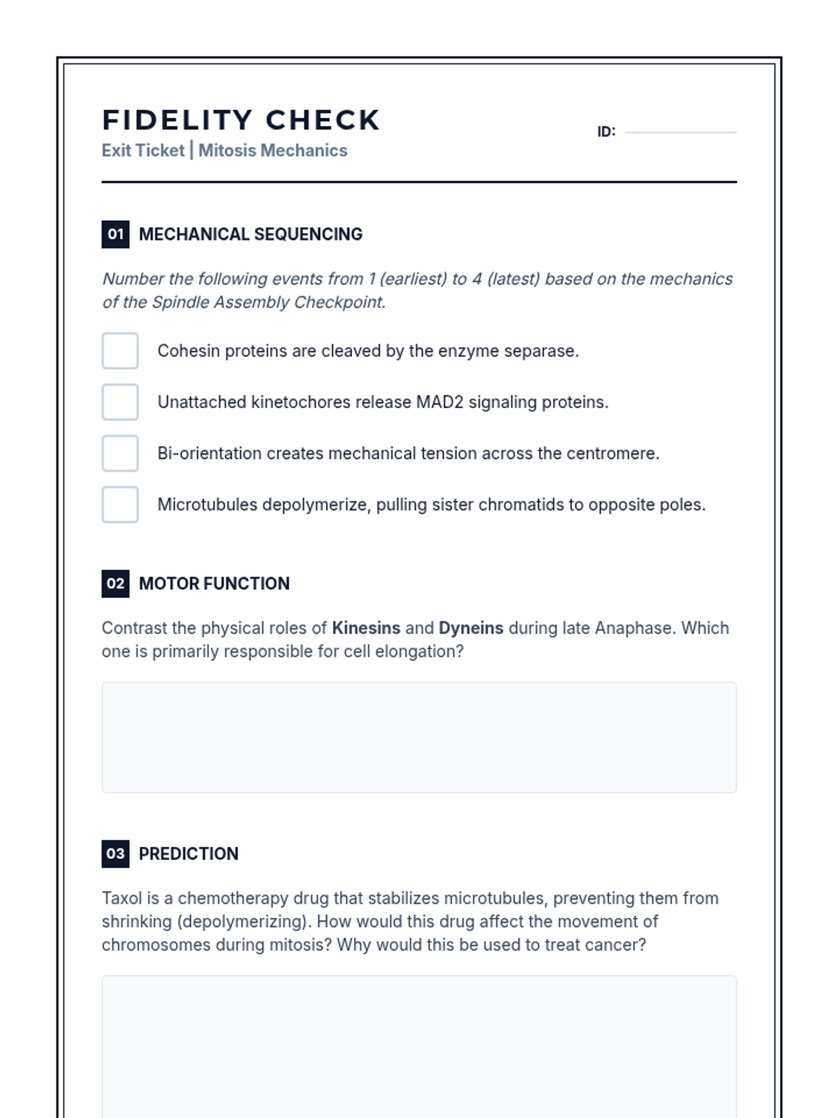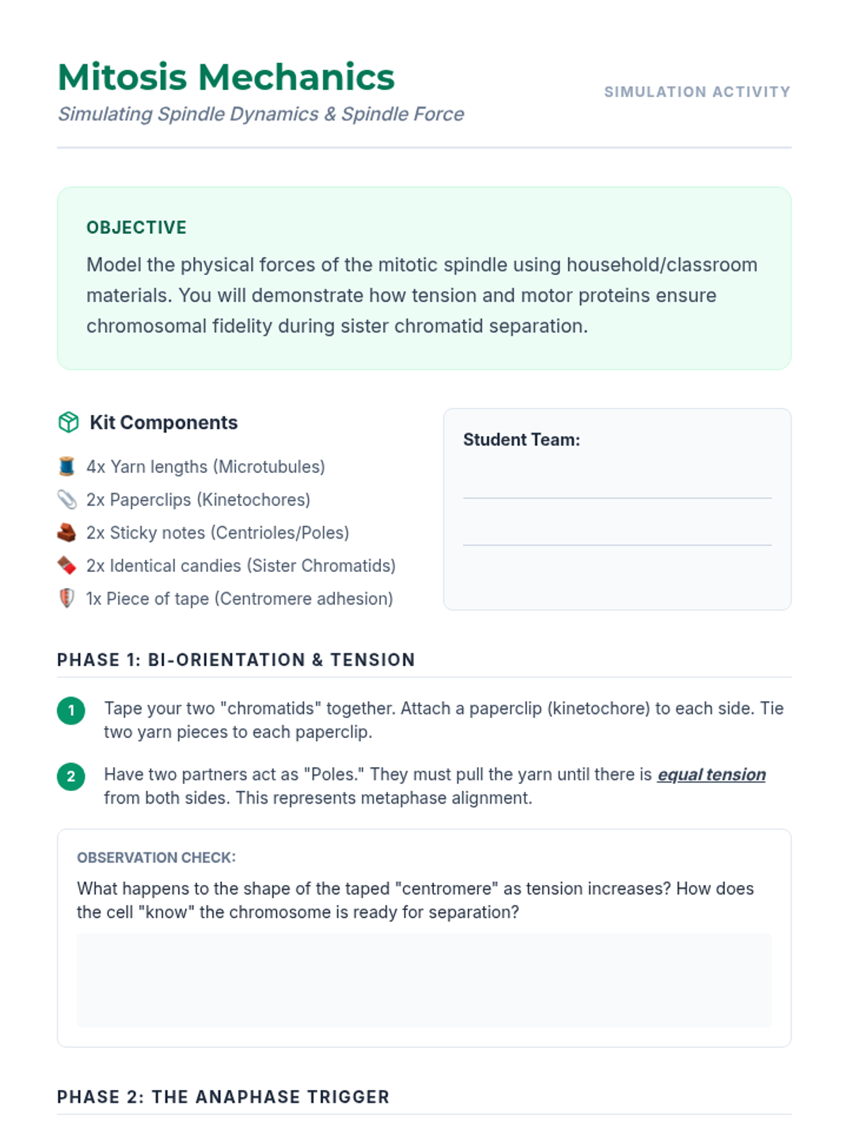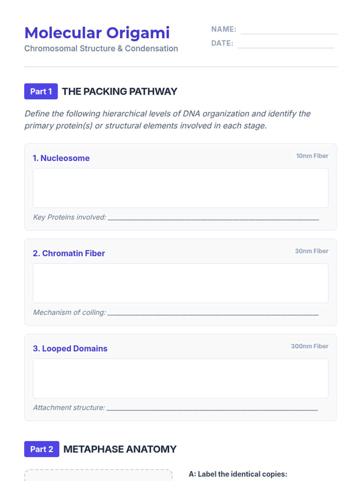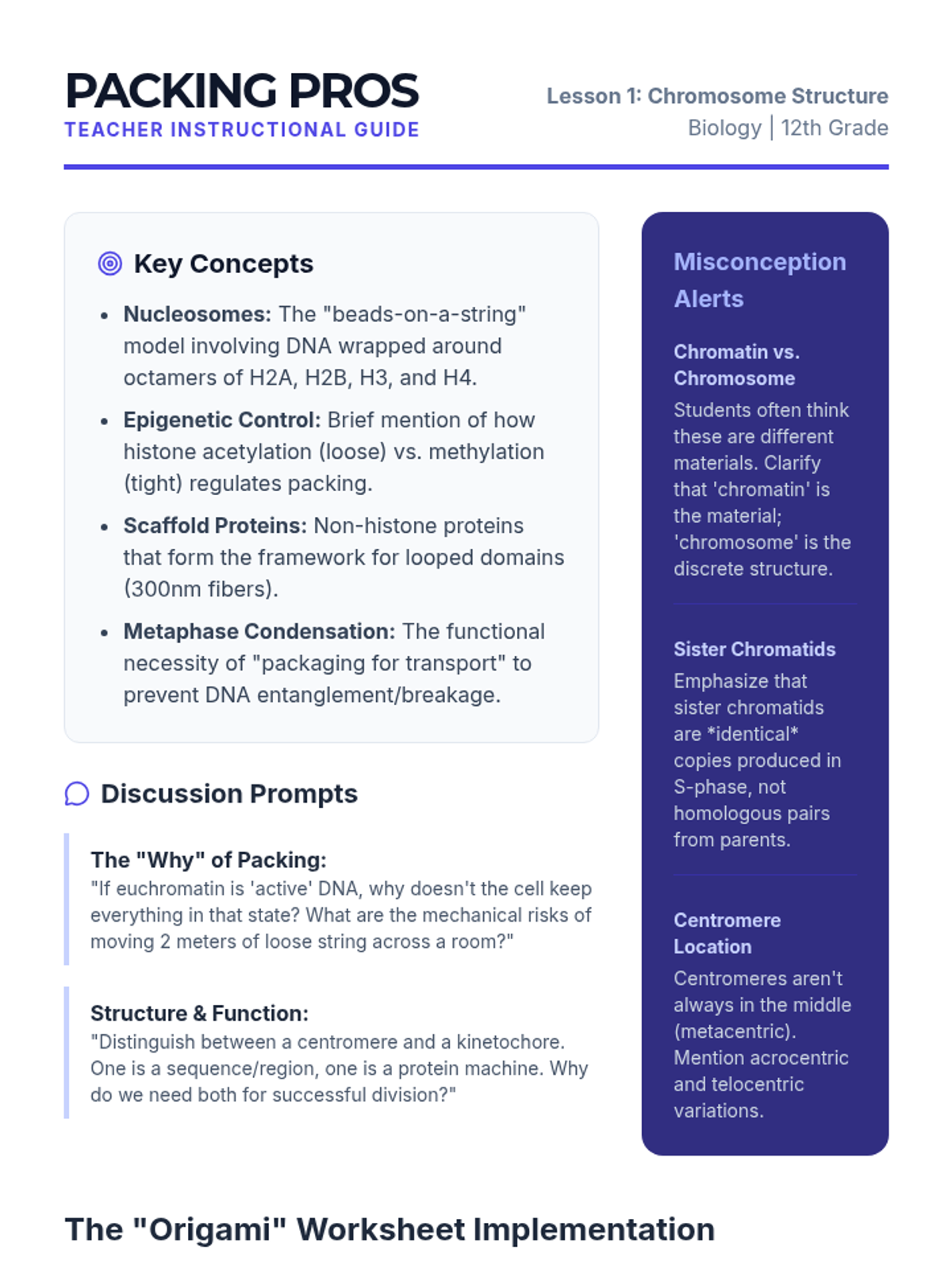 This sequence explores the molecular and mechanical aspects of mitosis and meiosis in 12th-grade biology. Students move from DNA packing and chromosome structure to the precise choreography of segregation, focusing on genetic fidelity in mitosis and the generation of variation in meiosis, concluding with clinical applications of nondisjunction.