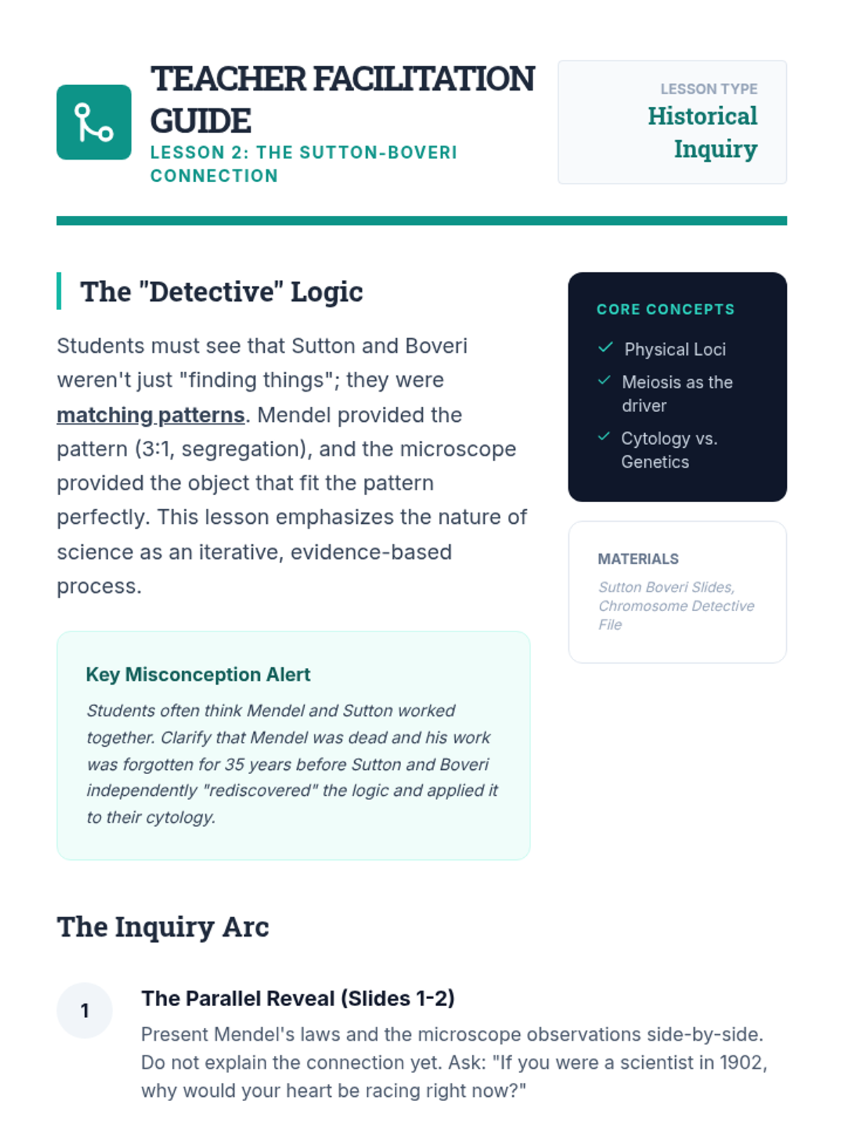 A 10th-grade biology sequence exploring the historical and physical connection between Mendel's laws and chromosomal behavior. Students use inquiry and modeling to reconstruct the Chromosomal Theory of Inheritance.