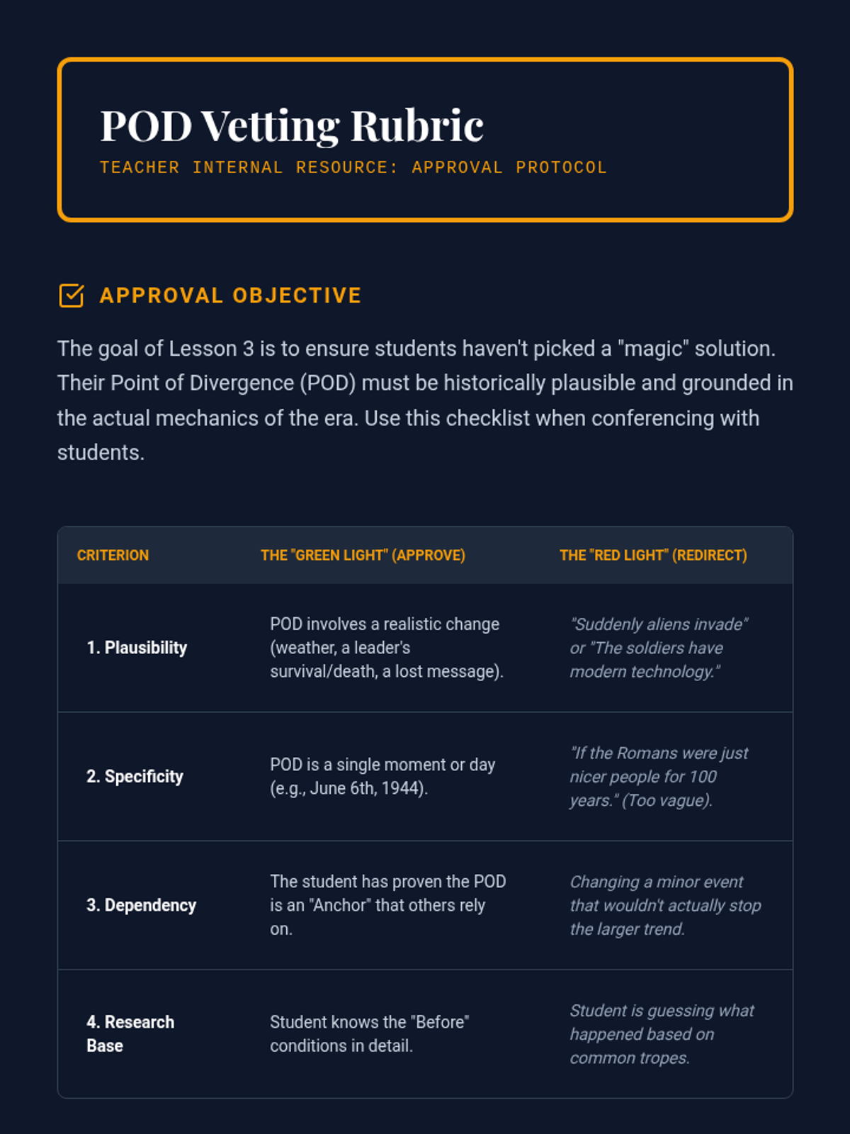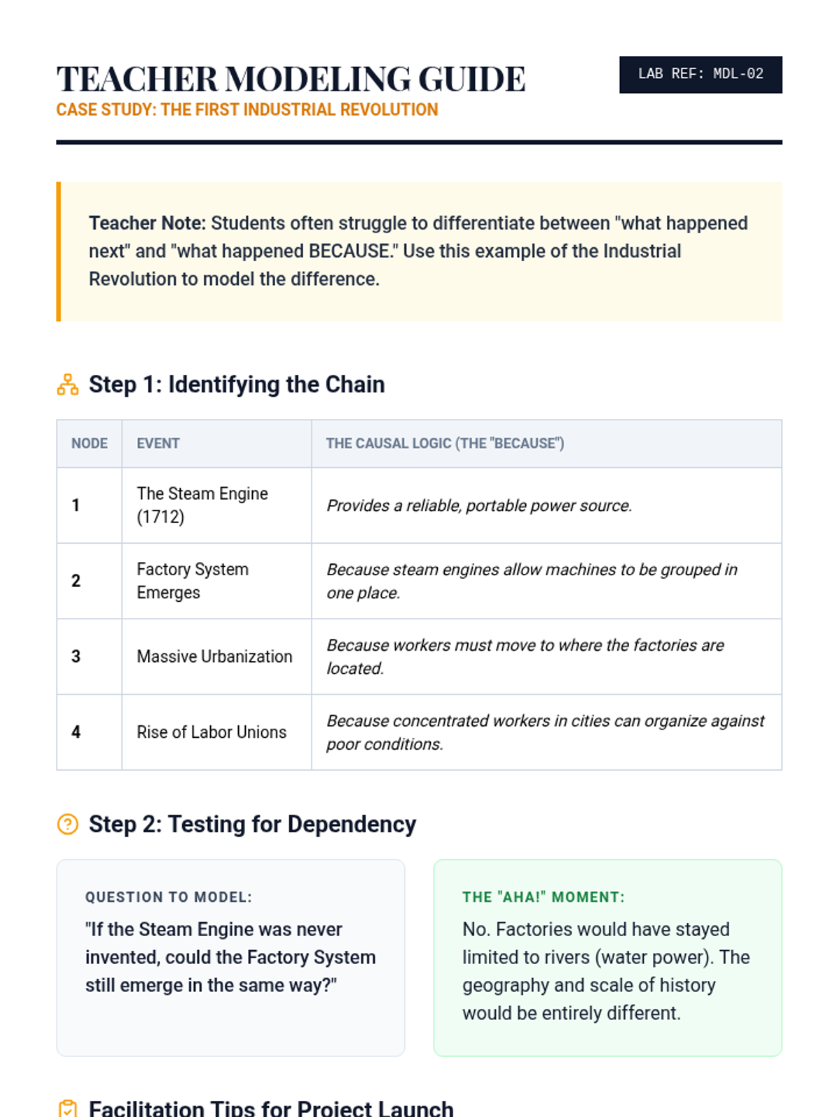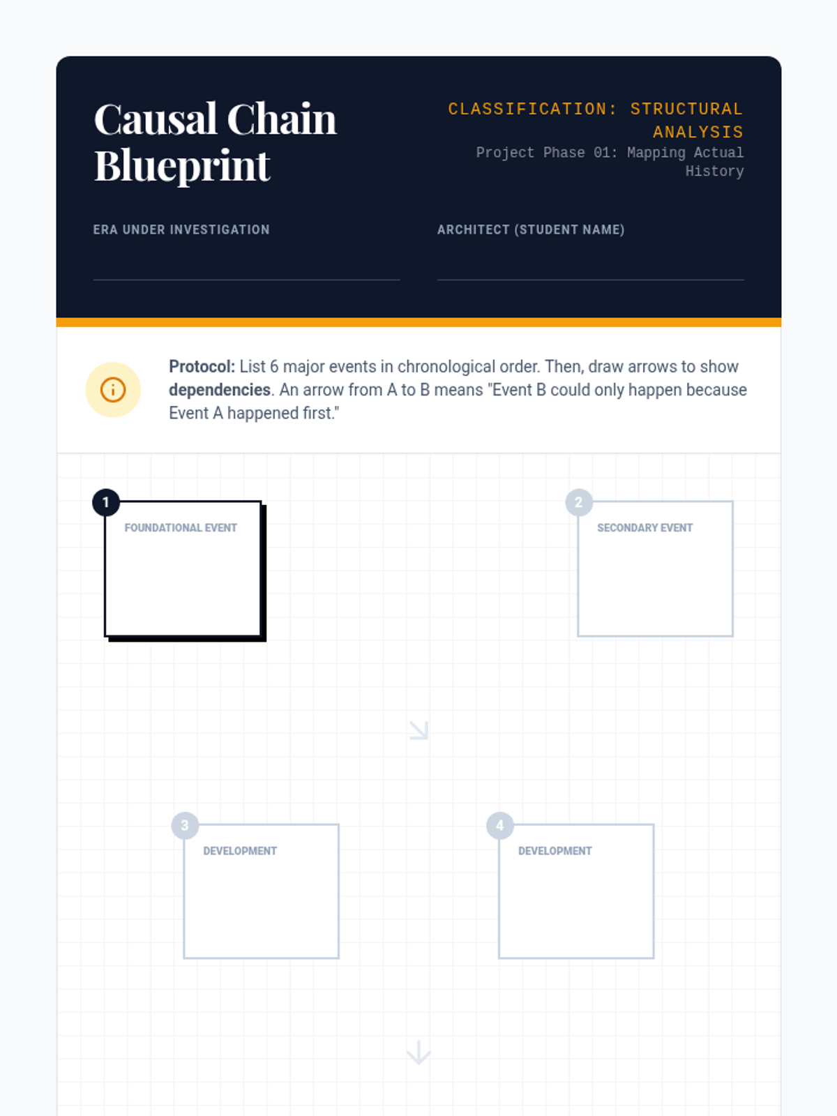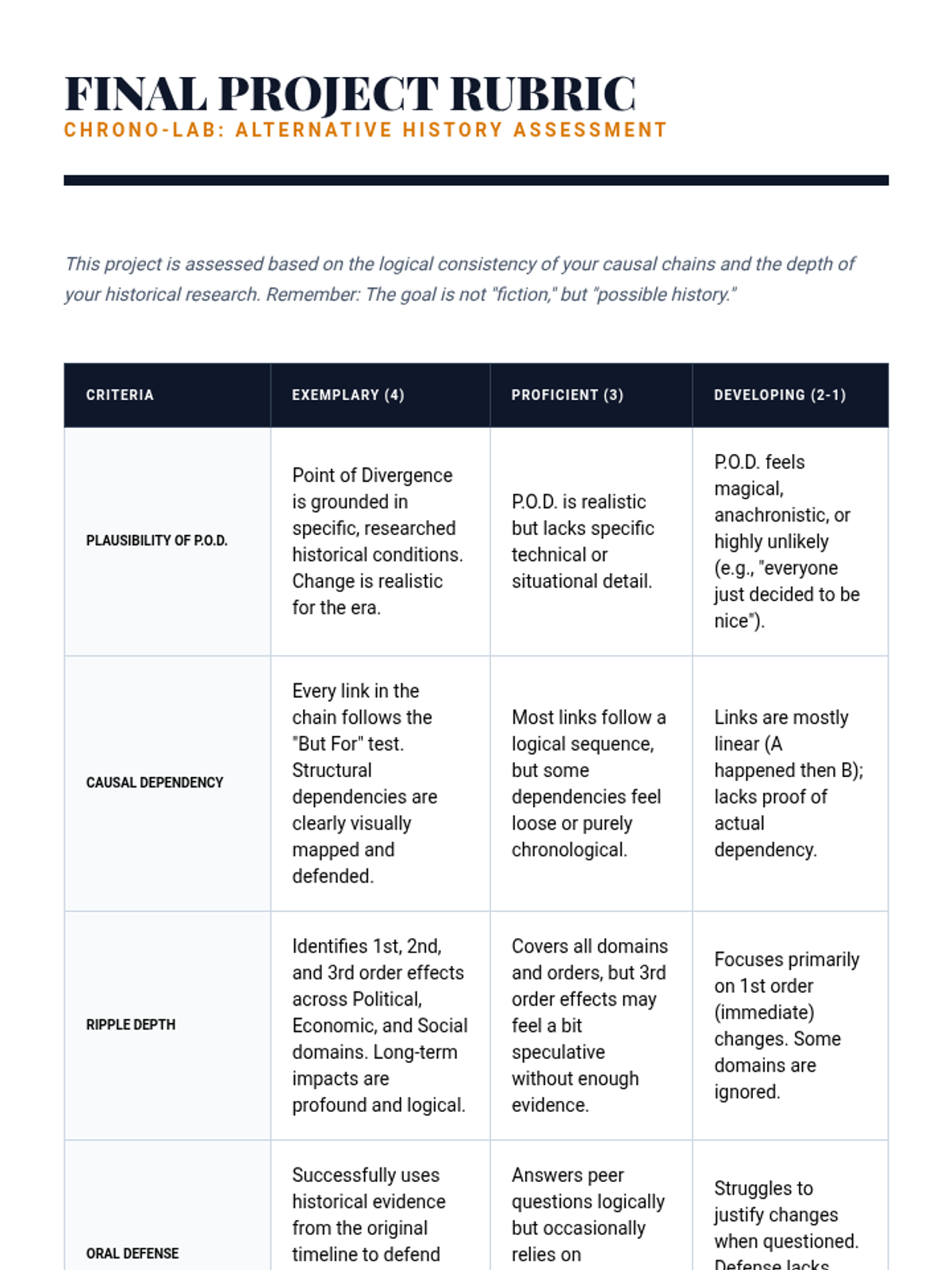 A project-based social studies sequence where 9th-grade students explore historical contingency by identifying critical turning points and constructing grounded counterfactual narratives to understand complex causal chains.