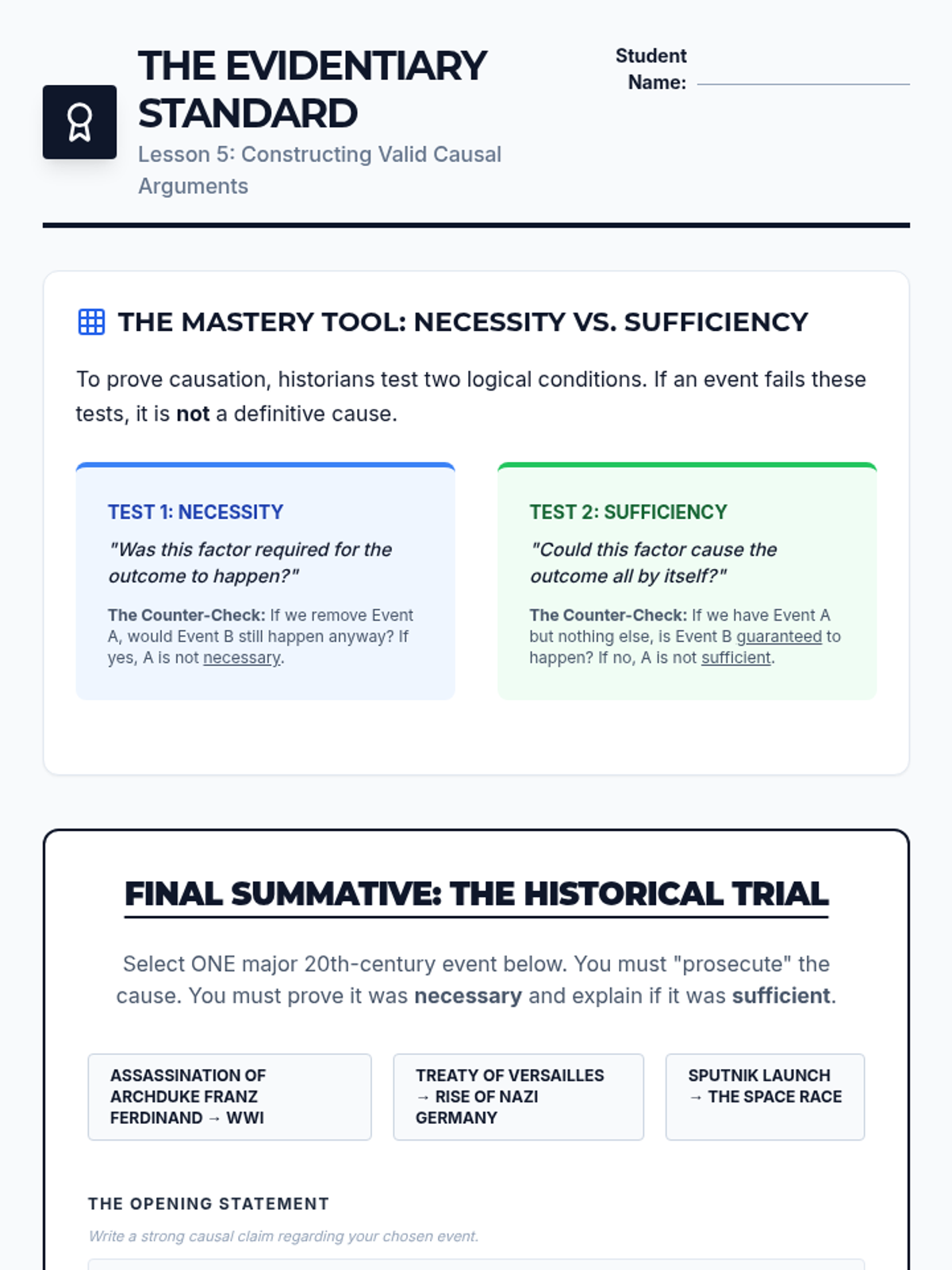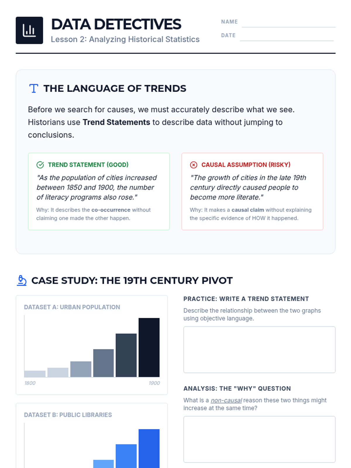 A deep dive into the logical fallacies of historical analysis, focusing on the critical distinction between correlation and causation. Students develop the skills to identify spurious correlations, recognize confounding variables, and construct evidence-based causal arguments.