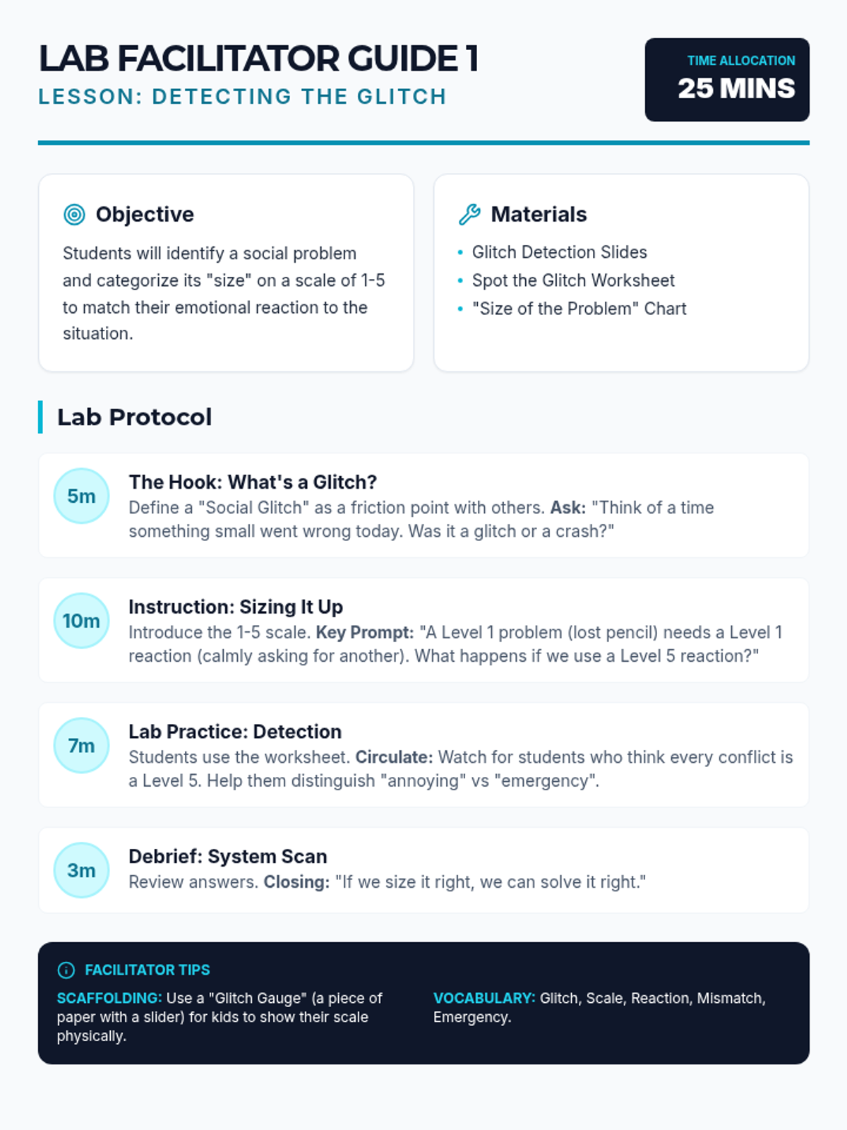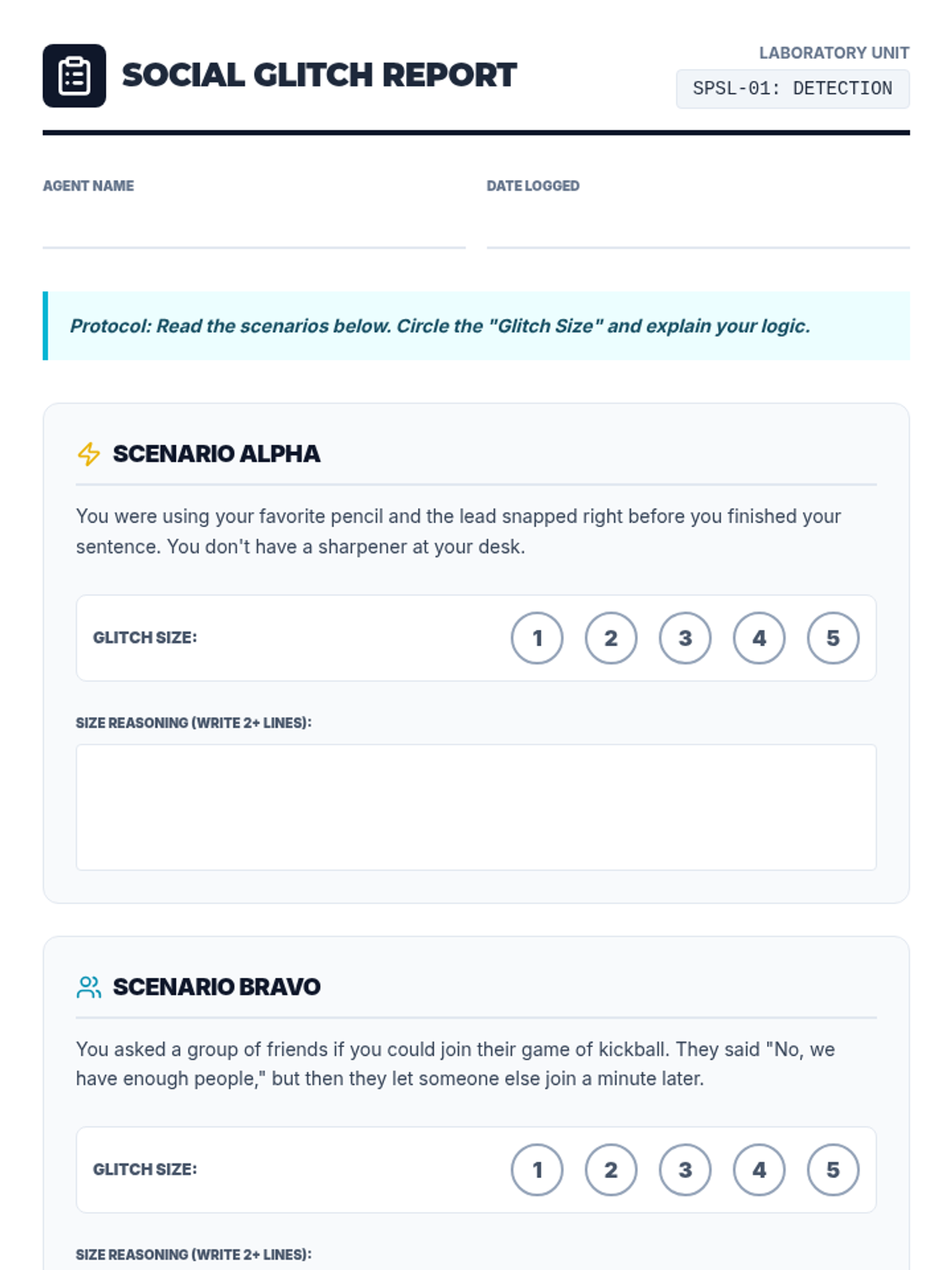 A comprehensive 5-lesson unit for 4th-5th graders to develop social problem-solving skills using a "Social Lab" theme. Students learn to identify problem sizes, brainstorm solutions, evaluate consequences, and consider perspectives.