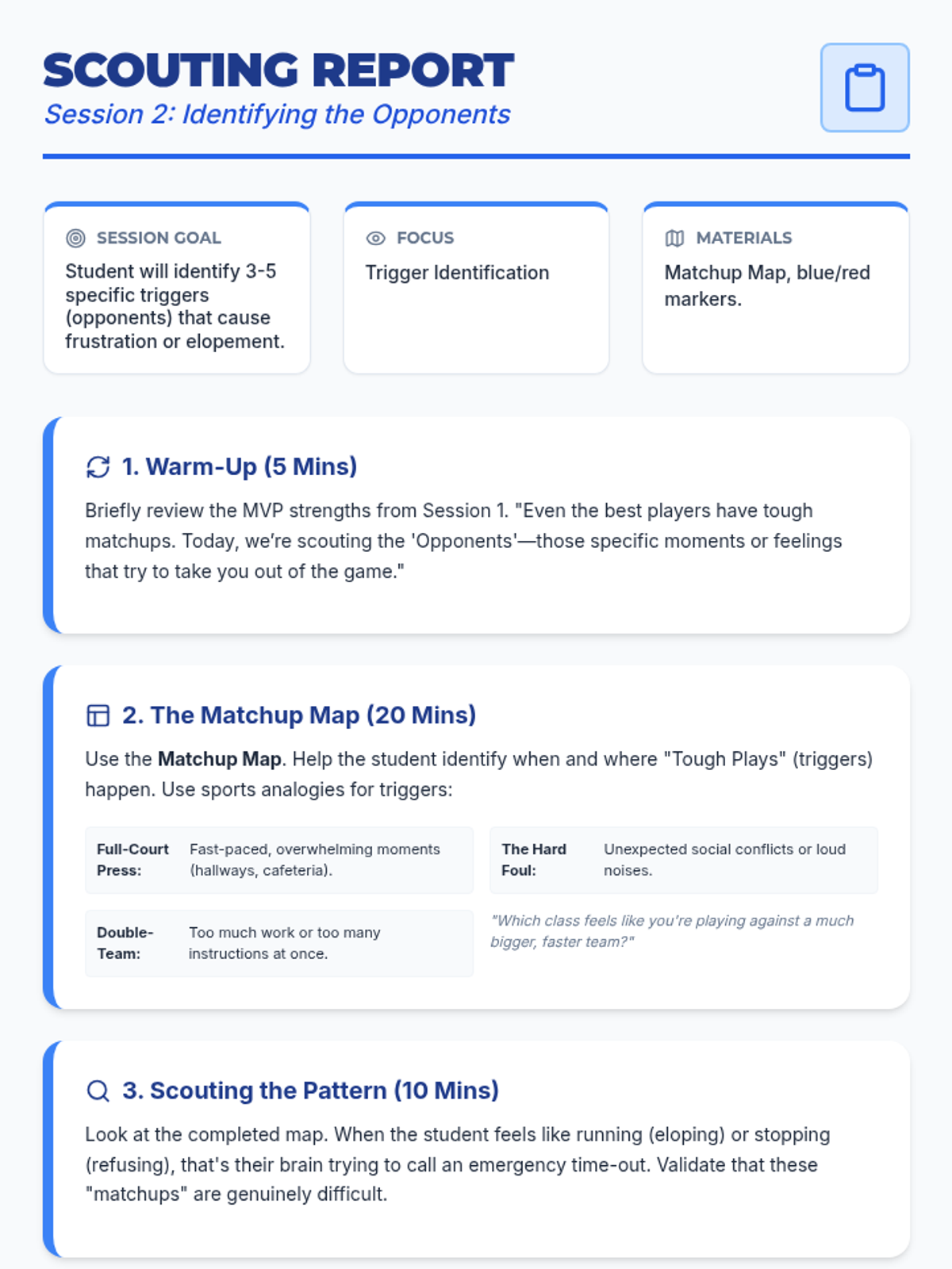 A counseling sequence for 6th grade students with ADHD, focusing on identifying emotional triggers and replacing elopement or refusal behaviors with safer coping strategies. The theme 'Circuit Breaker' uses a technology metaphor to help students understand their emotional 'overloads'.