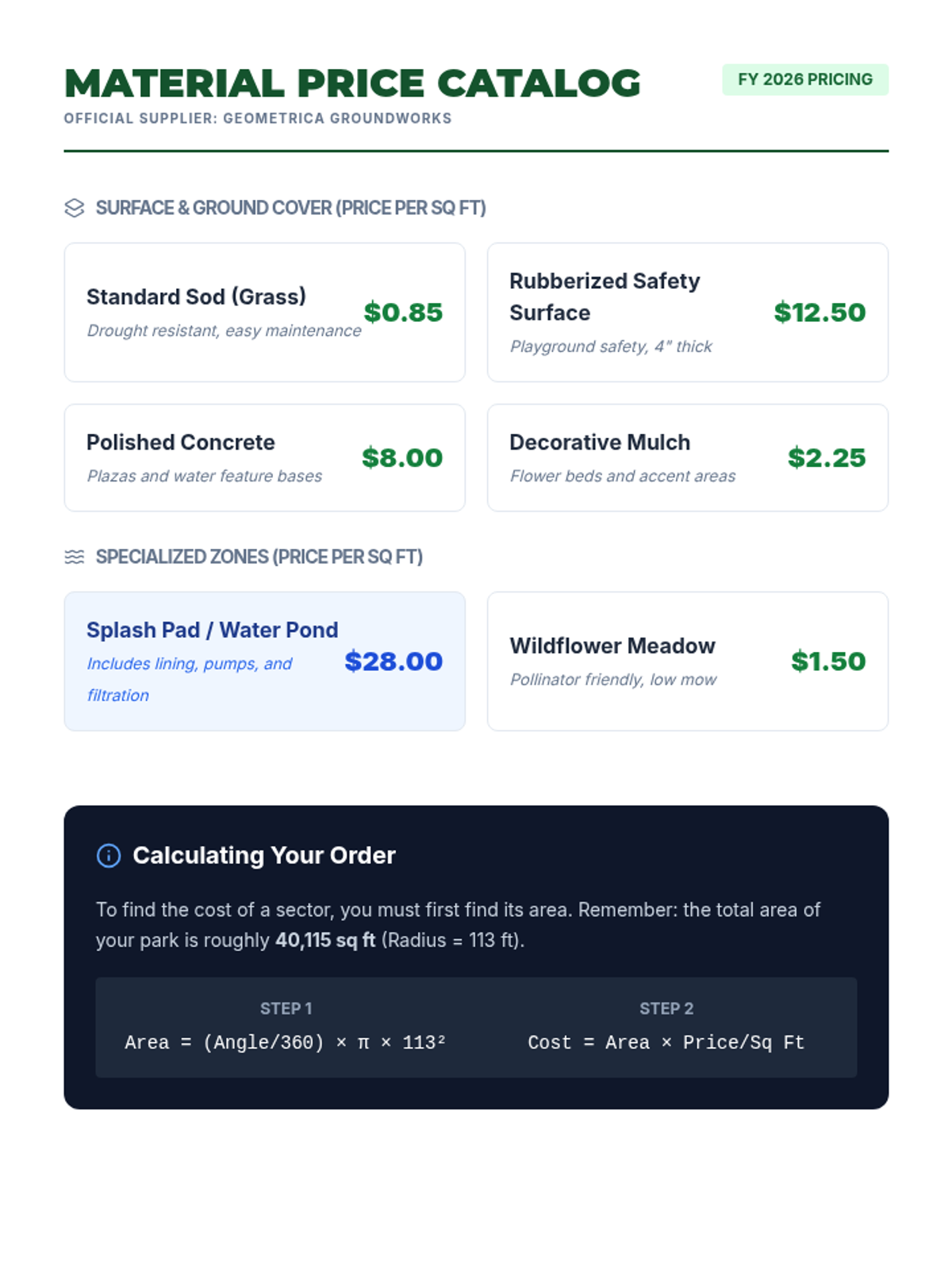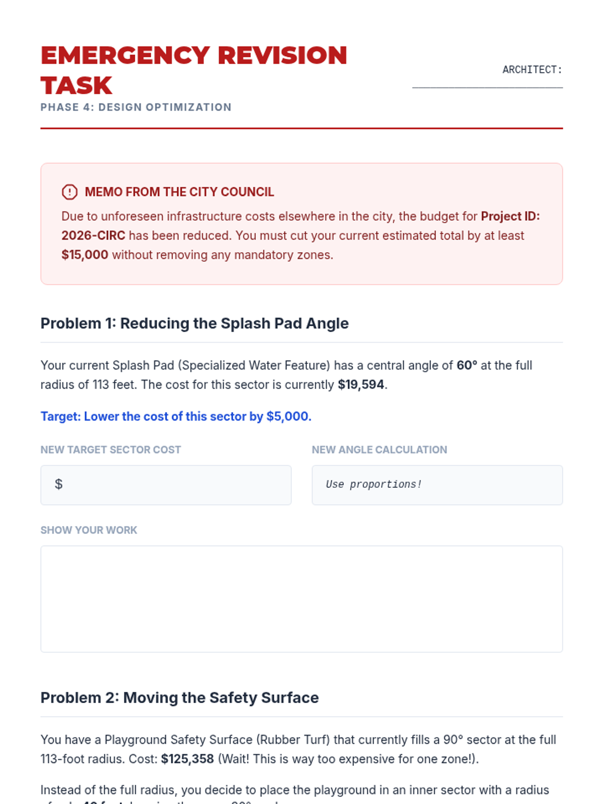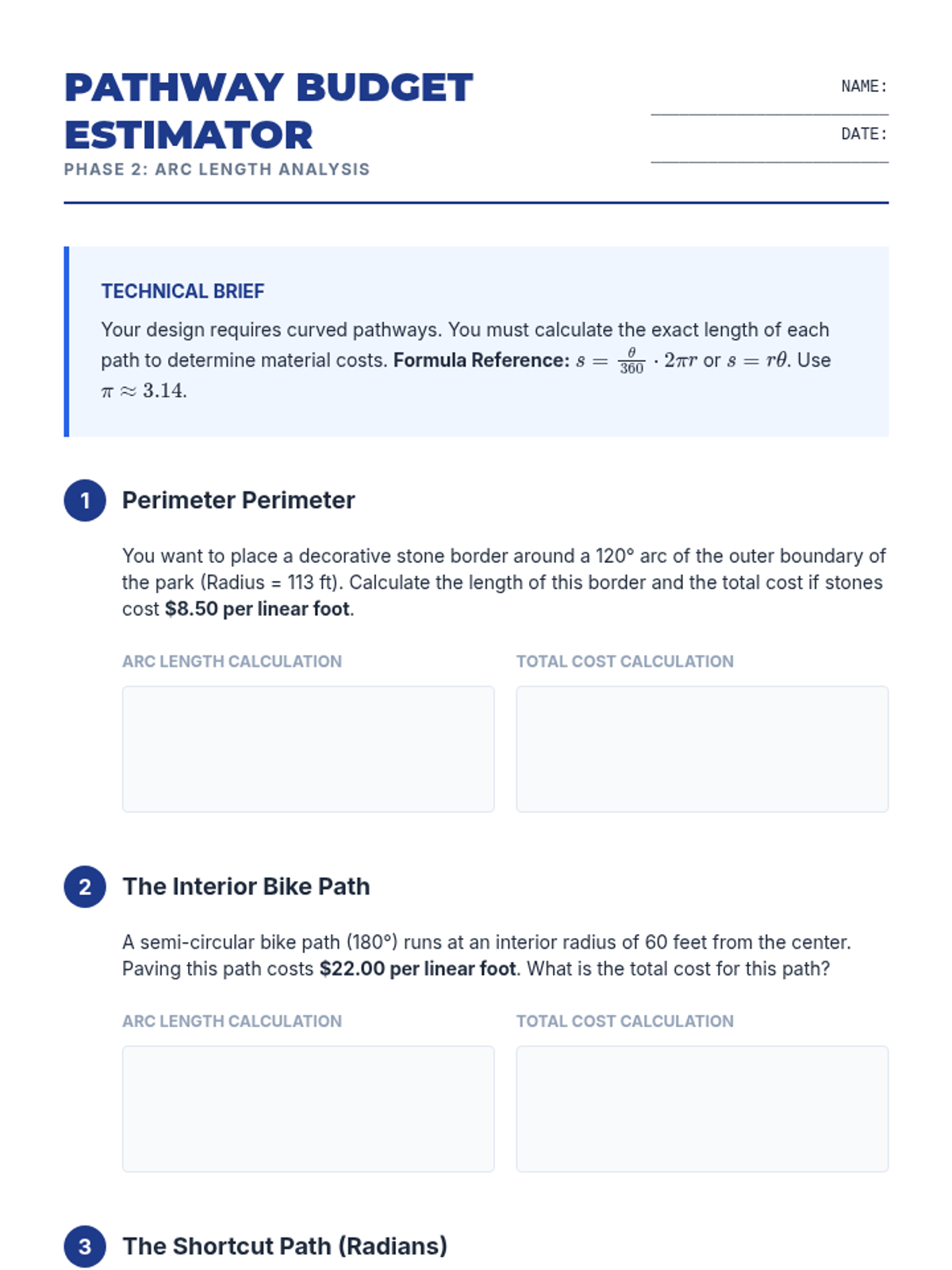 A project-based geometry unit where students act as landscape architects to design a circular park, using arc lengths for paths and sector areas for zones while managing a budget.