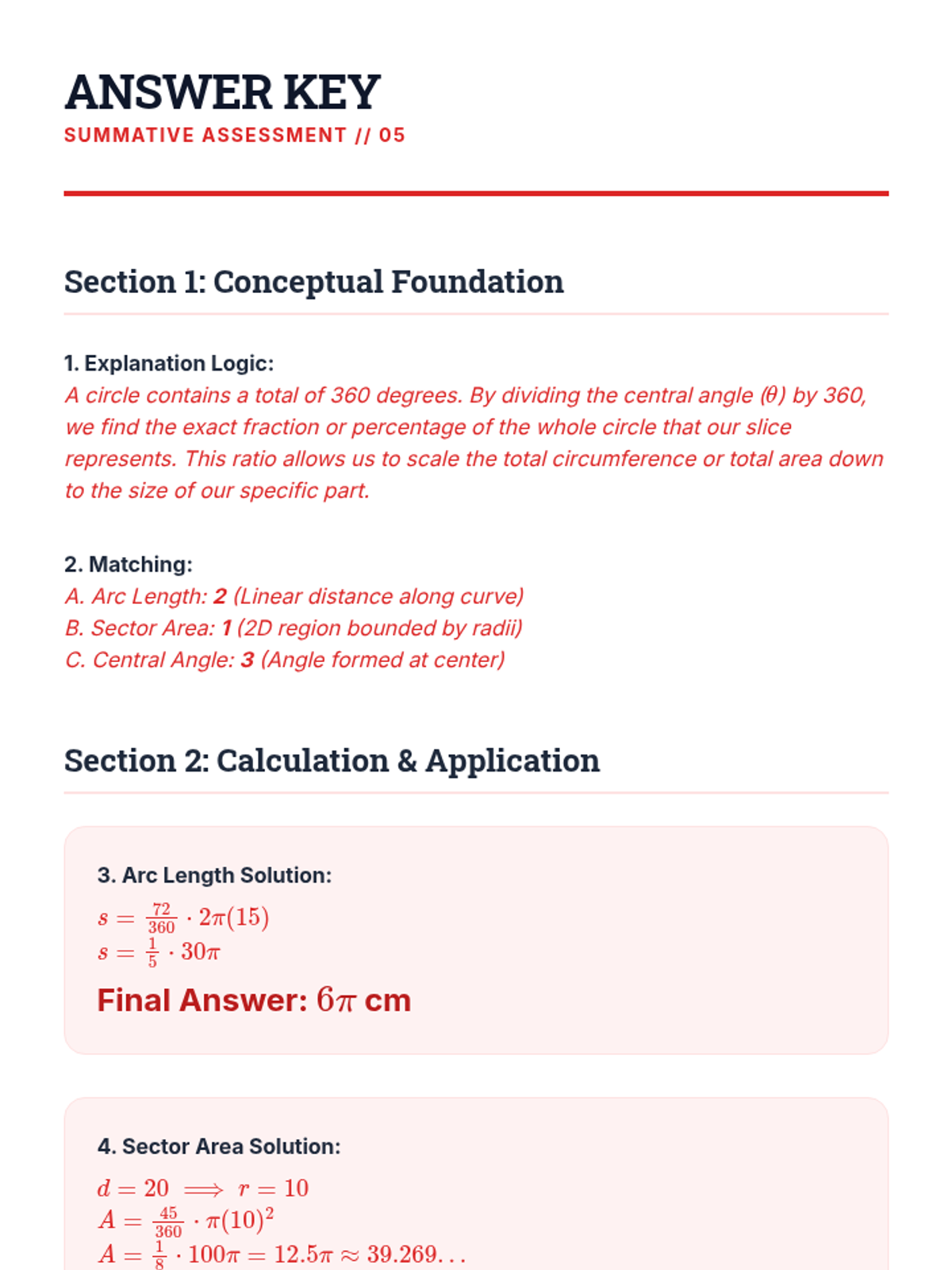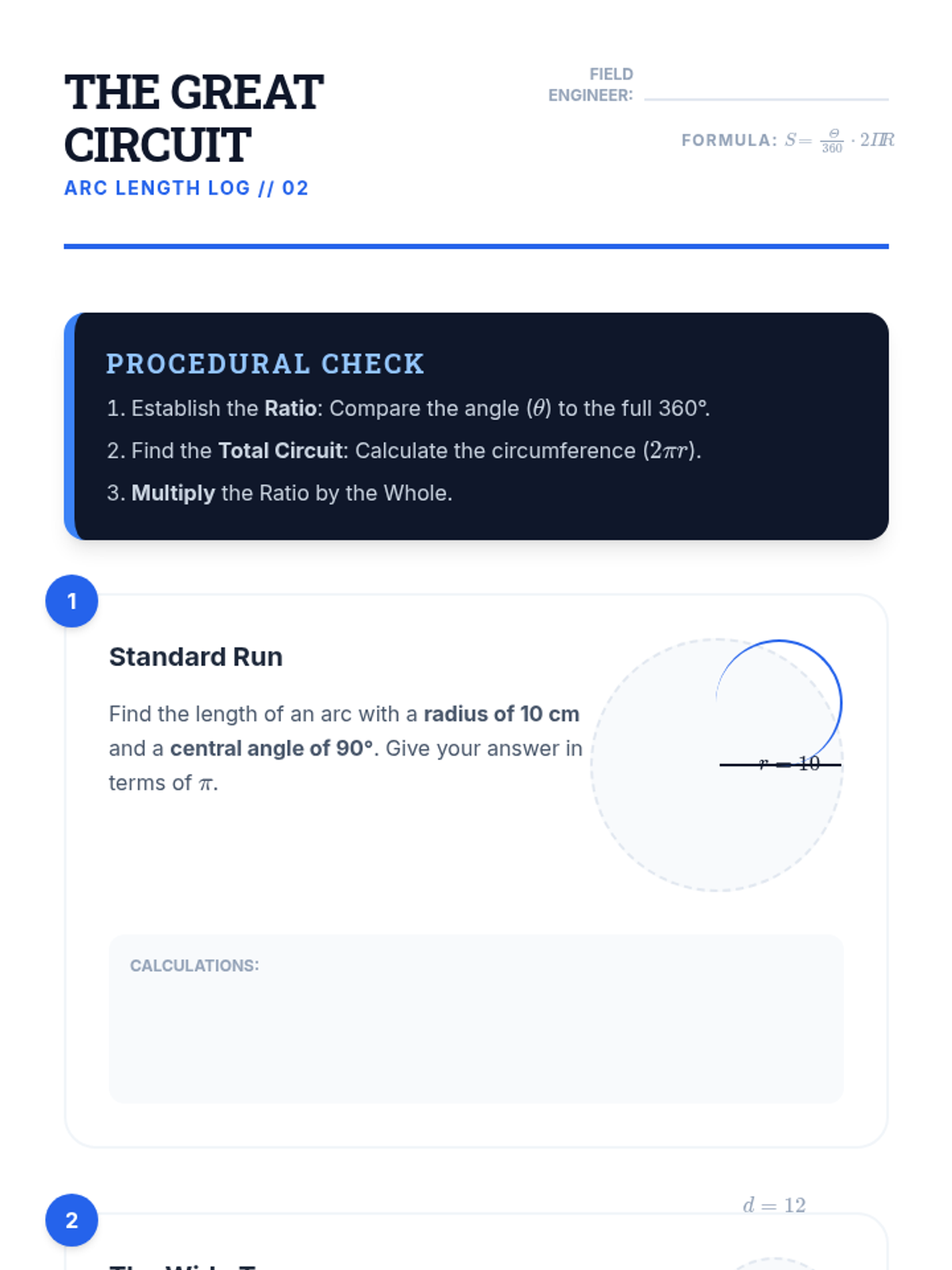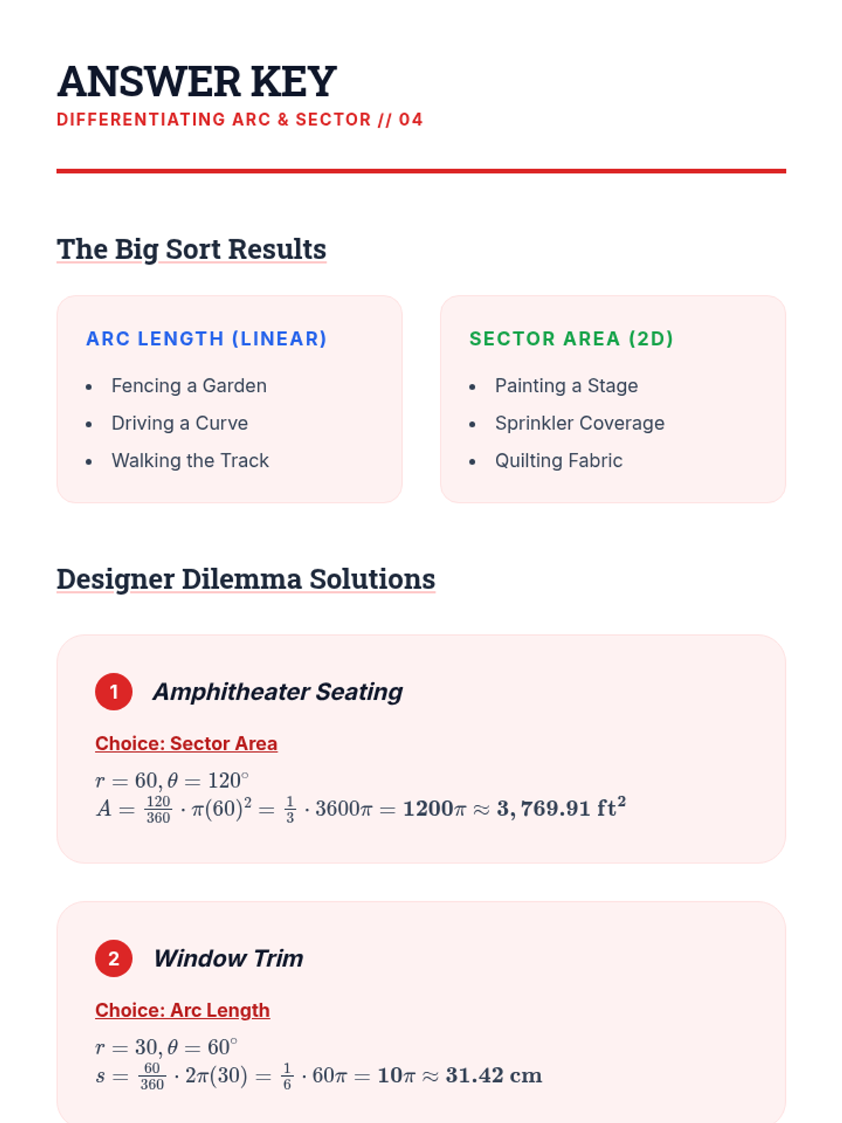 A logical, inquiry-based progression through the derivation and application of arc length and sector area formulas. Students use proportional reasoning to move from 'parts of a whole' to formal geometric expressions.