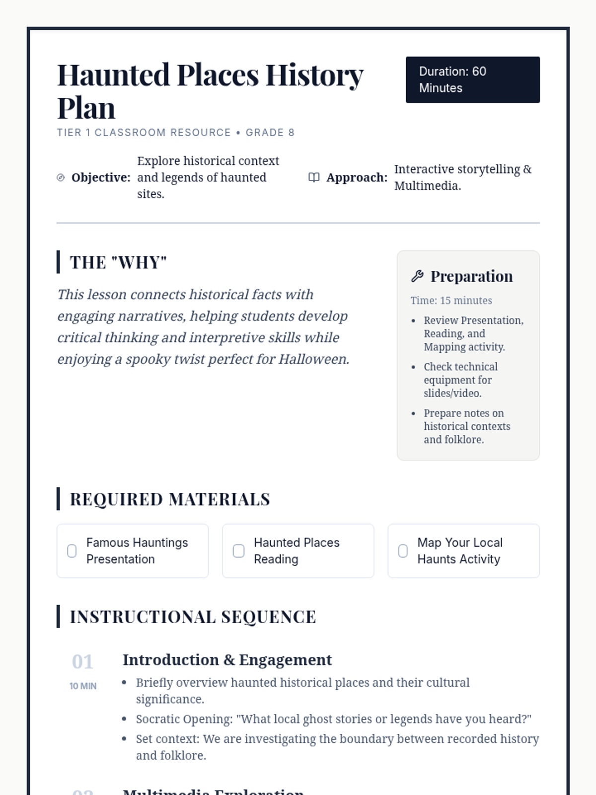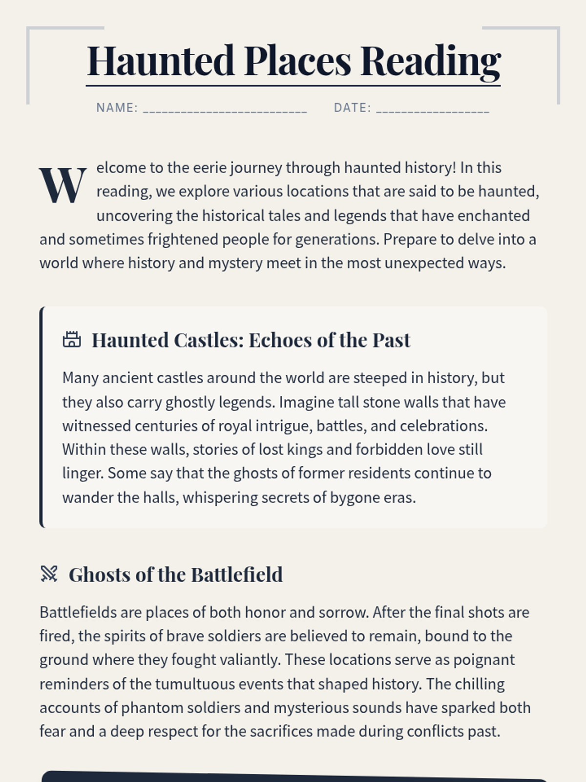A dual-level exploration of the supernatural, featuring historical analysis for 8th graders and gentle, imaginative storytelling activities for preschoolers. Students will delve into famous legends and local folklore while younger learners enjoy sensory-rich spooky fun.