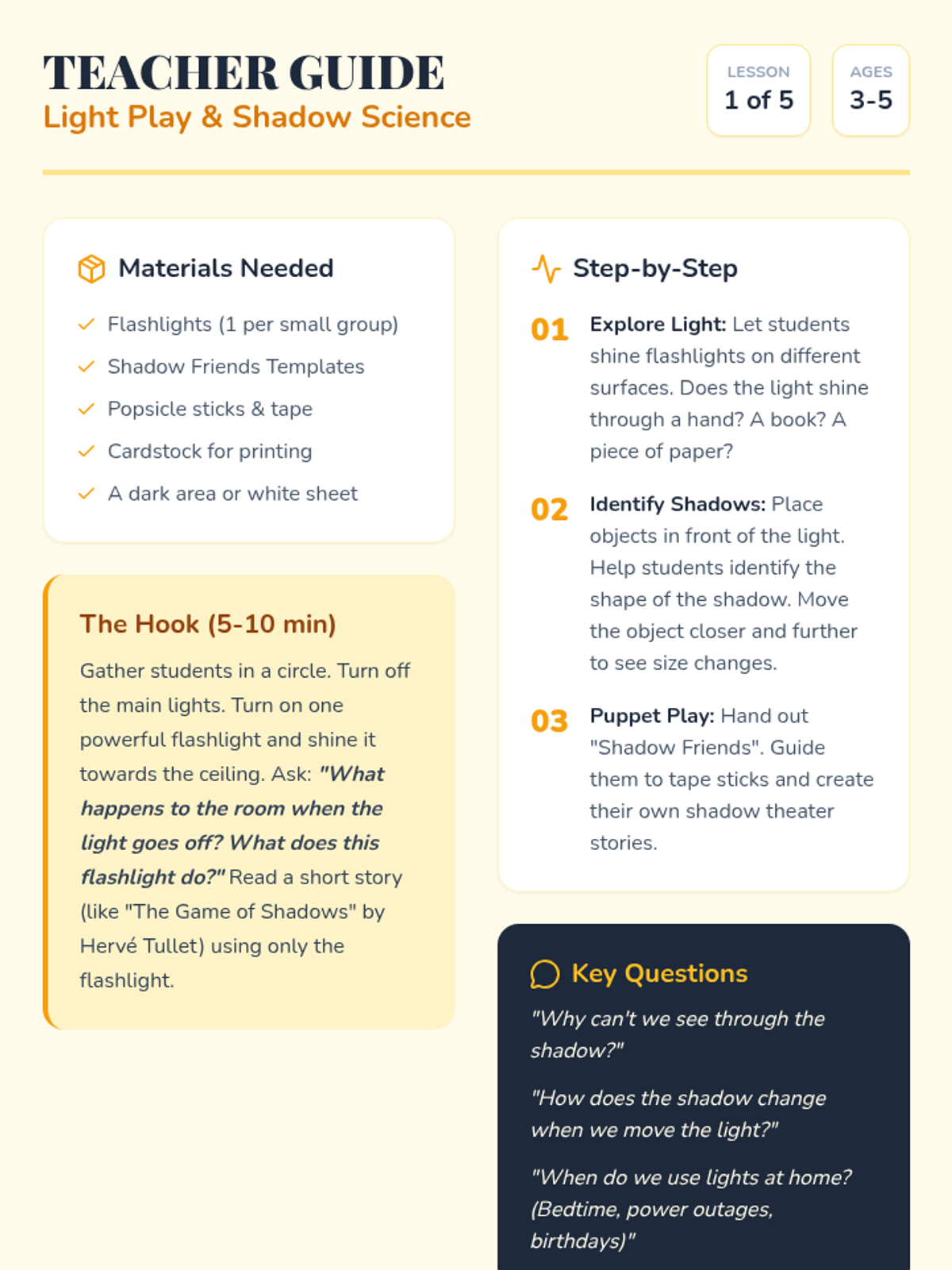 A Pre-K history and social studies sequence exploring the universal theme of light in global celebrations. Students learn about the physical properties of light and shadow before diving into cultural traditions like Diwali, Hanukkah, Kwanzaa, and the Lantern Festival.