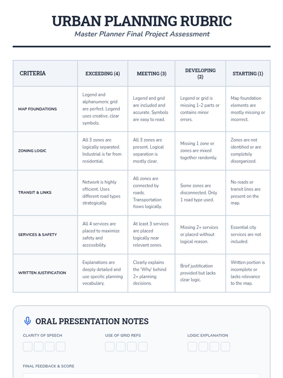Students become junior urban planners, learning to navigate and design cities. They master map skills, explore zoning, plan transportation, and integrate public services to create a functional city map.